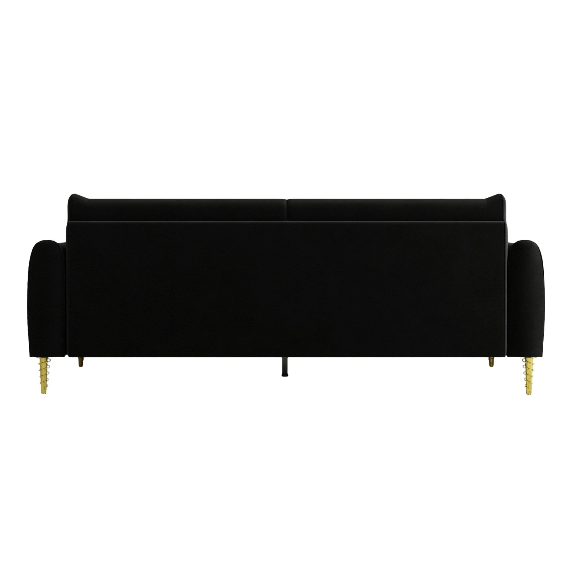 Le coussin d'assise, composé d'une éponge à haut rebond et de ressorts indépendants, assure un confort optimal et est facilement amovible et lavable pour l'entretien. Le pied doré de 15 cm de haut facilite le nettoyage sous le canapé, idéal pour les surfaces recouvertes de moquette.