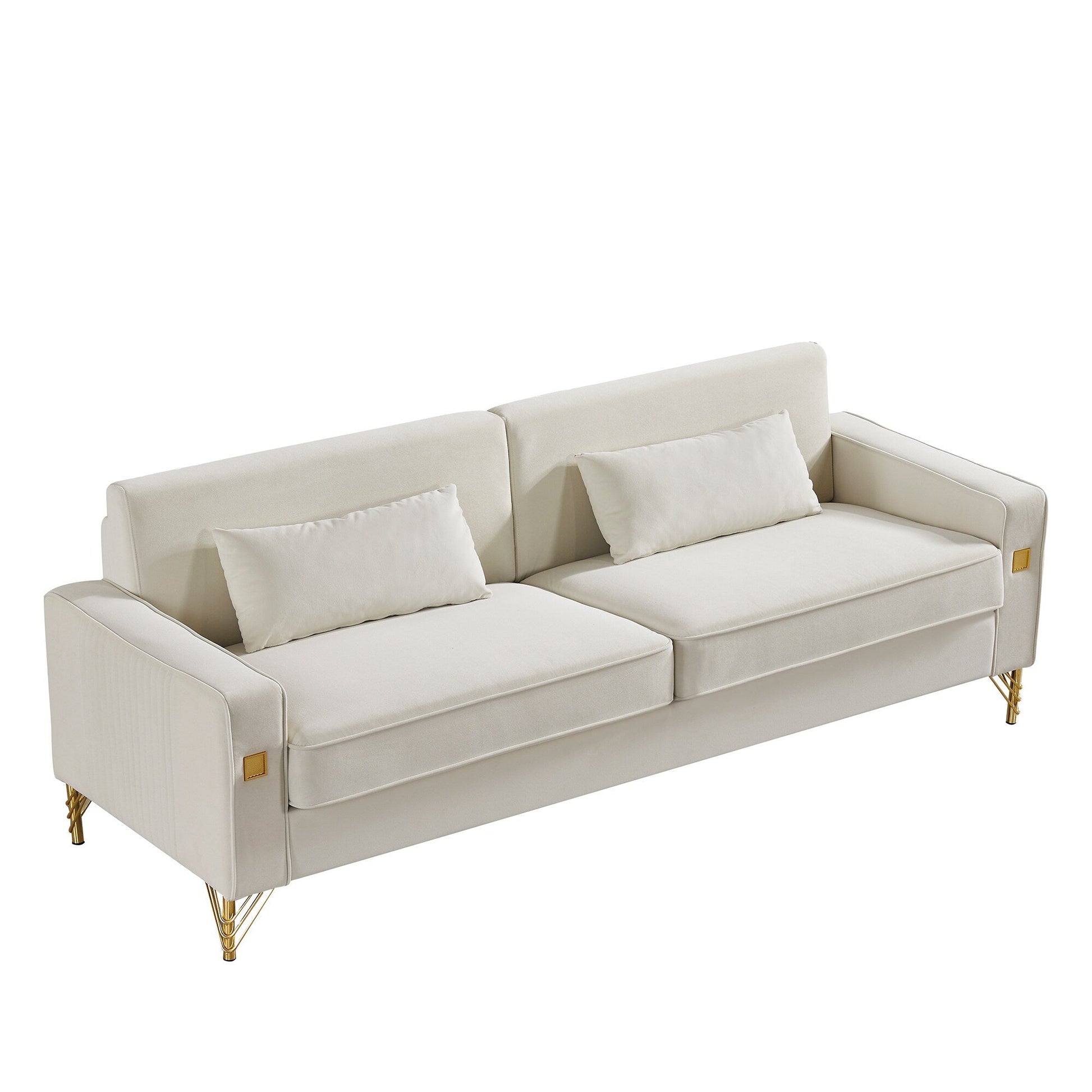 Canapé causeuse moderne rembourré en velours 85,44 avec pieds et coussins dorés pour le salon