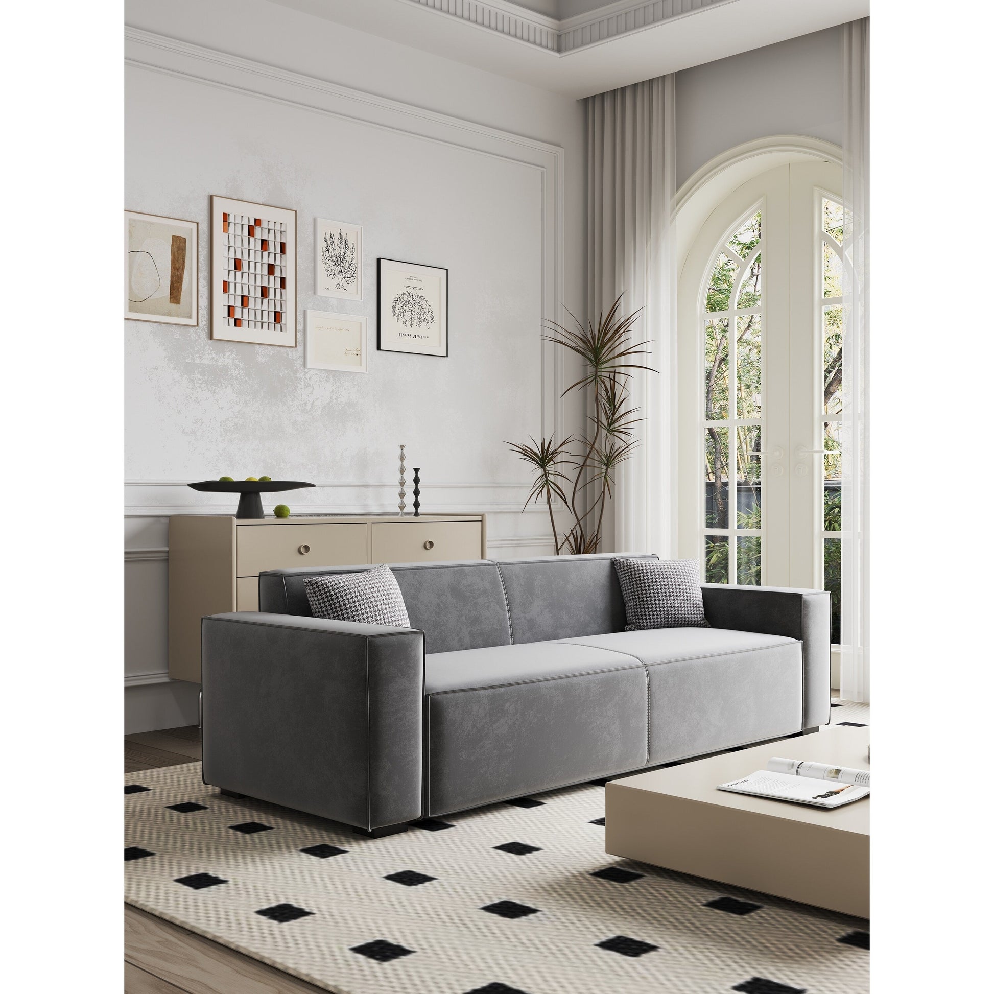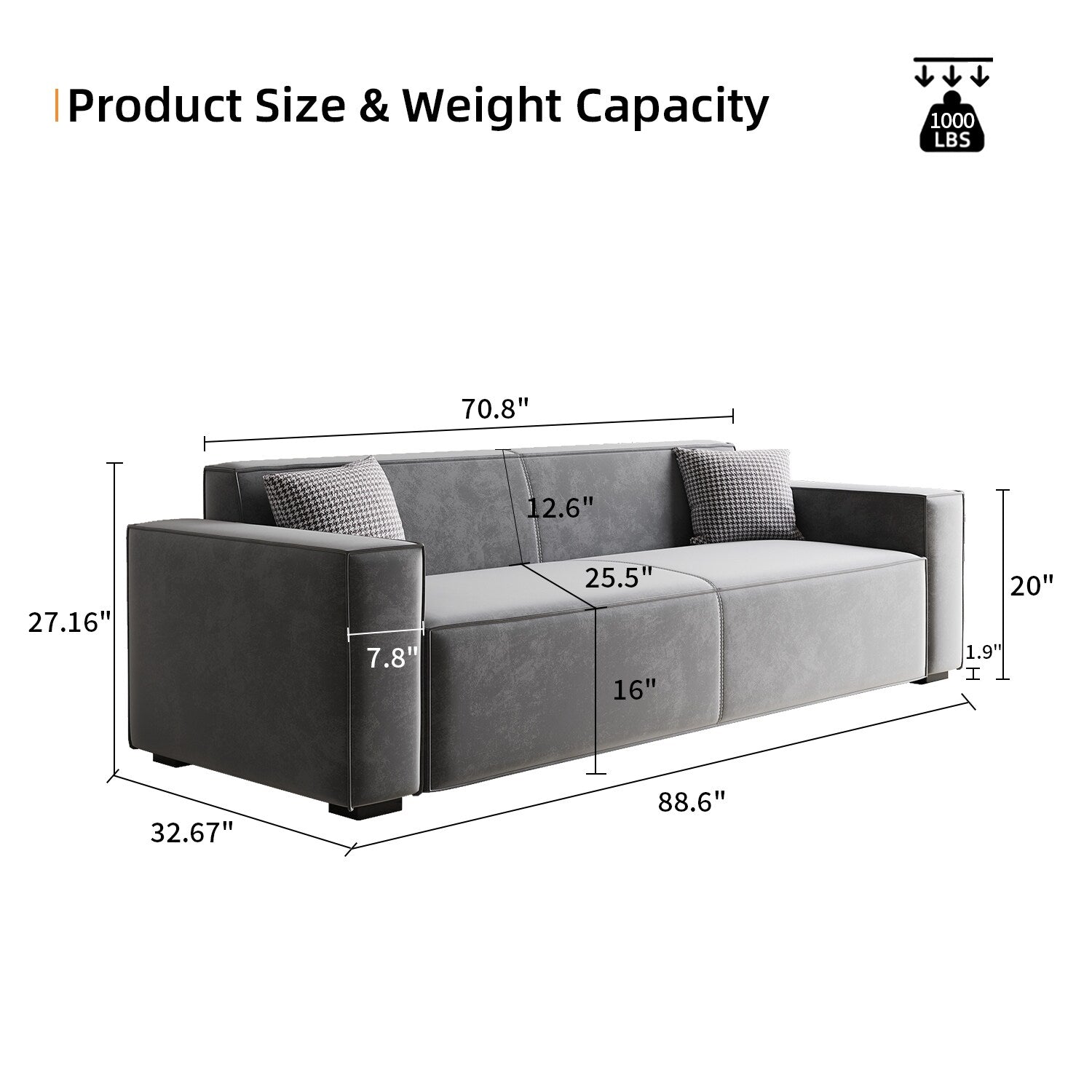 - Cadre robuste et durable : ce canapé 6 places de 88 pieds est composé d'un cadre en acier robuste et de bois, capable de supporter jusqu'à 1 000 lb. Les coussins en mousse à ressorts haute densité offrent un confort ultime.
