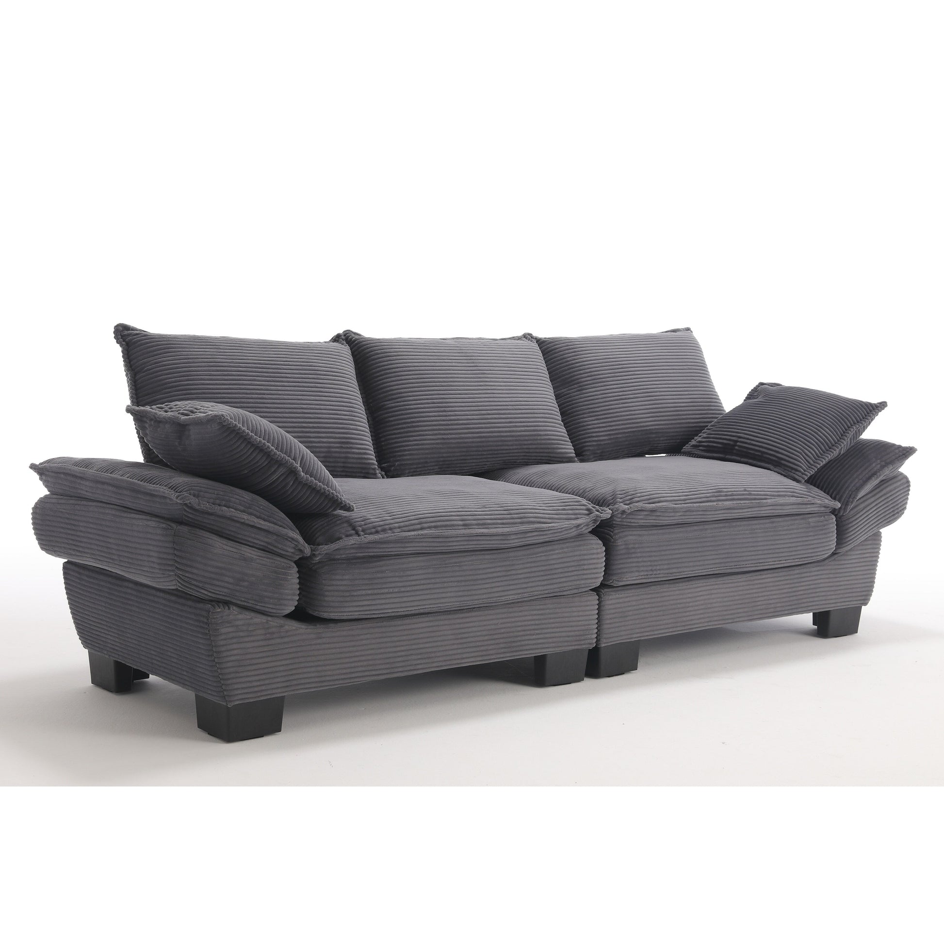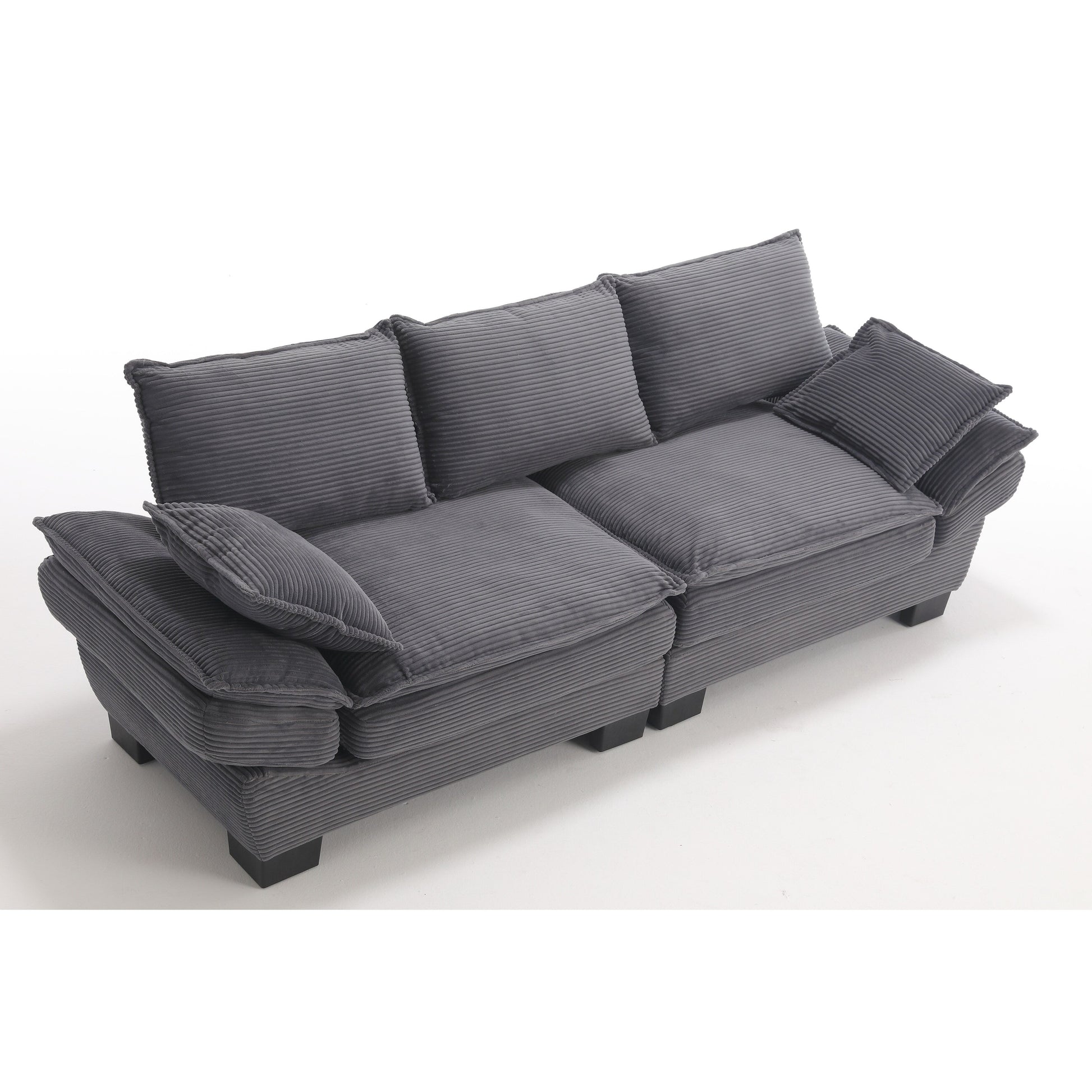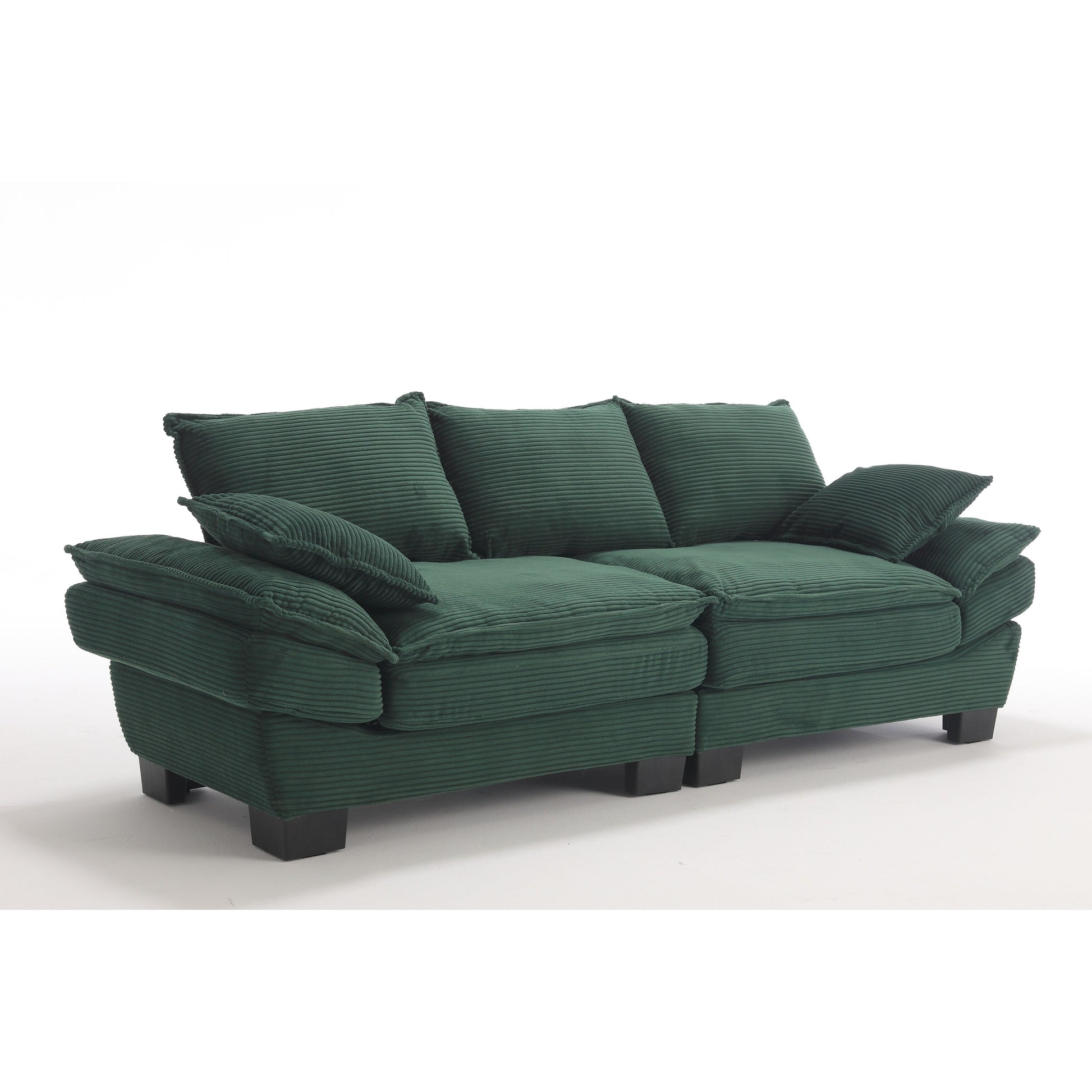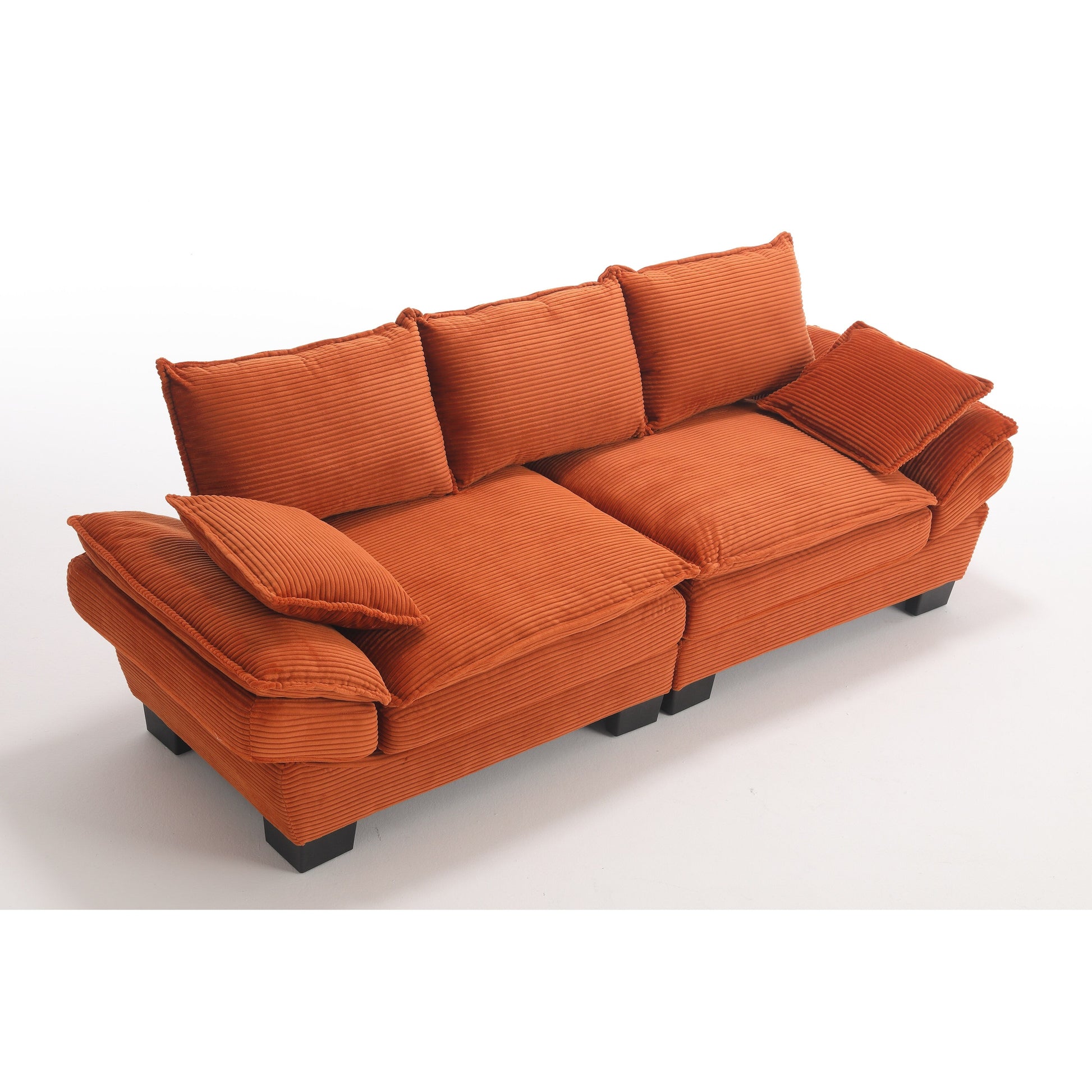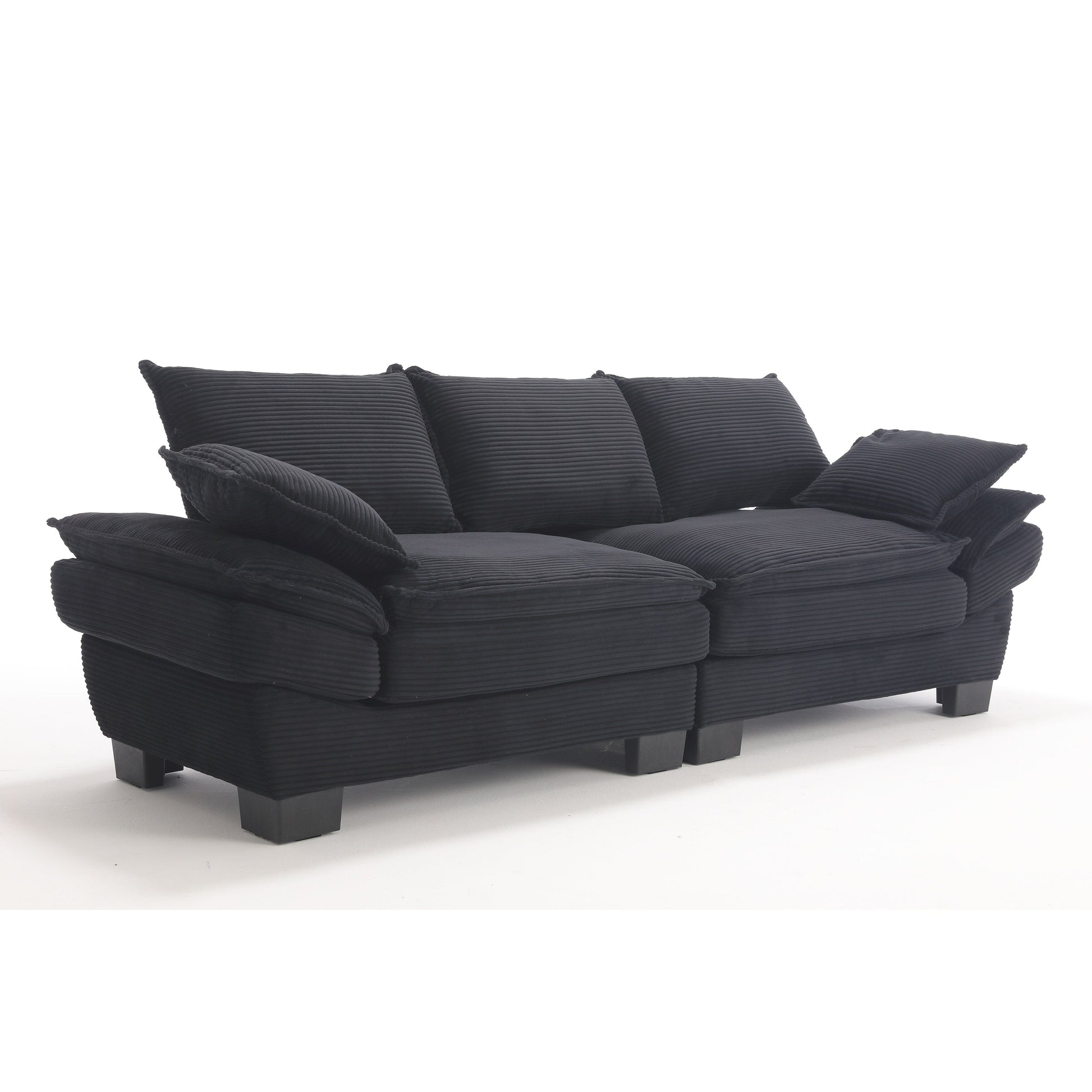 Canapé 3 places en velours côtelé 88,6 moderne avec deux coussins et pieds larges en plastique pour le salon