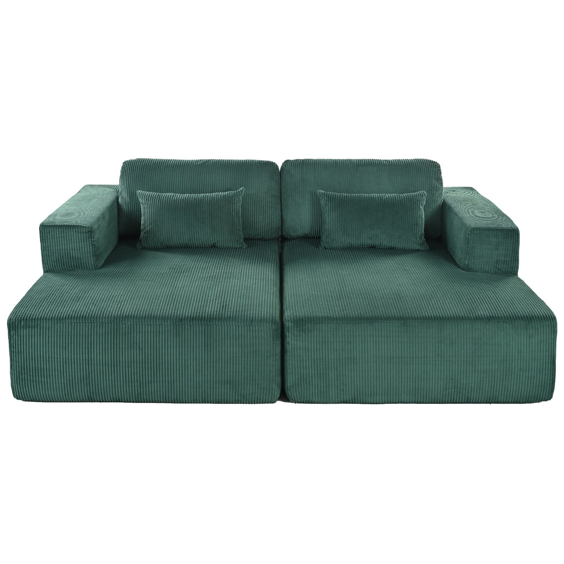 Canapé-lit convertible moderne en velours côtelé avec accoudoirs larges et 2 oreillers pour salon et appartement