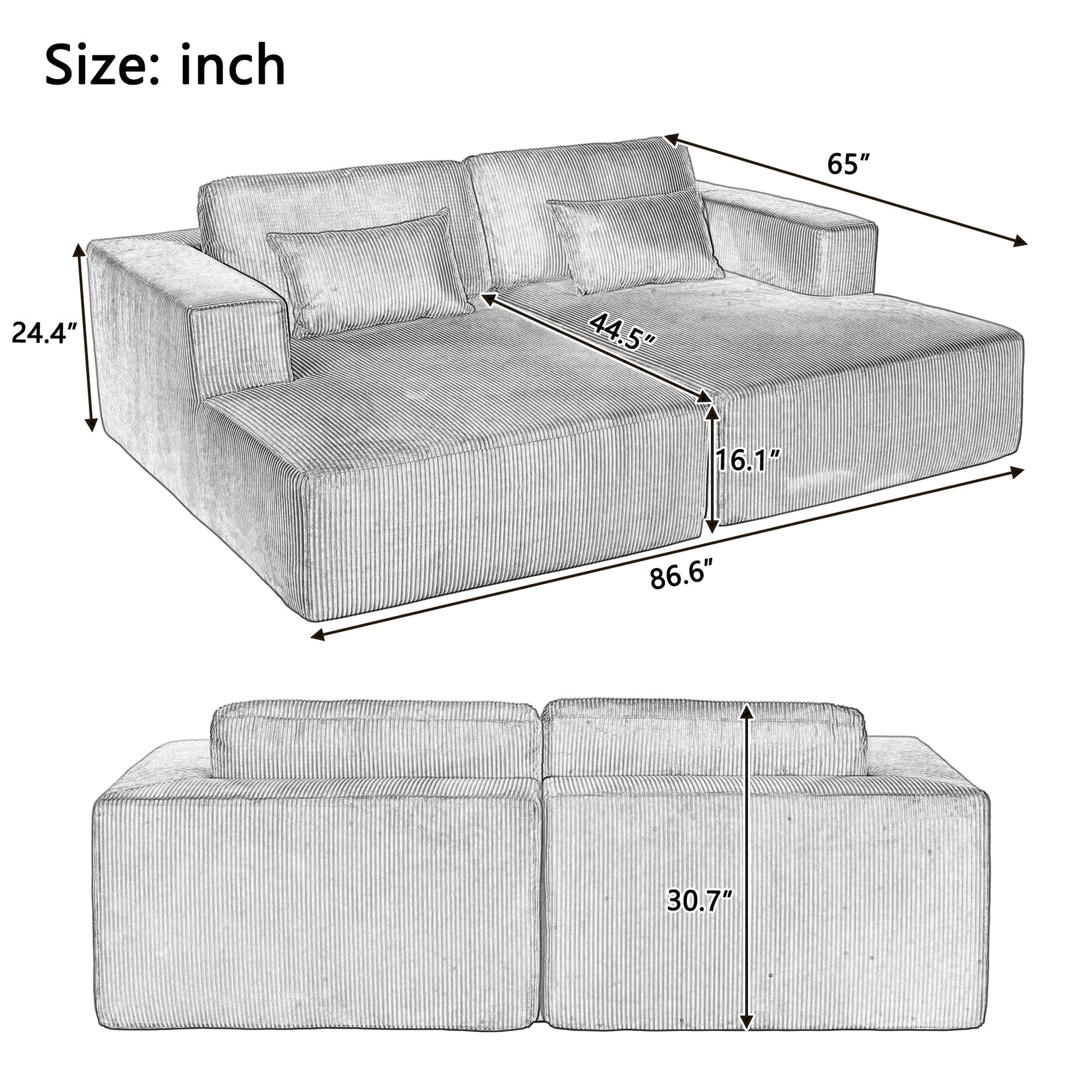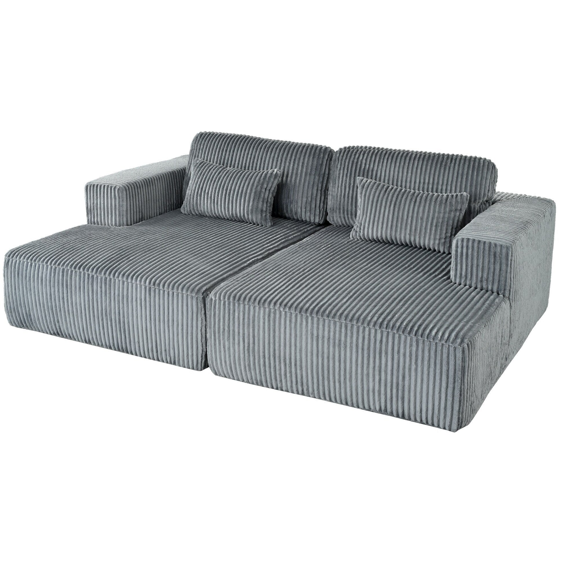 Canapé-lit convertible moderne en velours côtelé avec accoudoirs larges et 2 oreillers pour salon et appartement