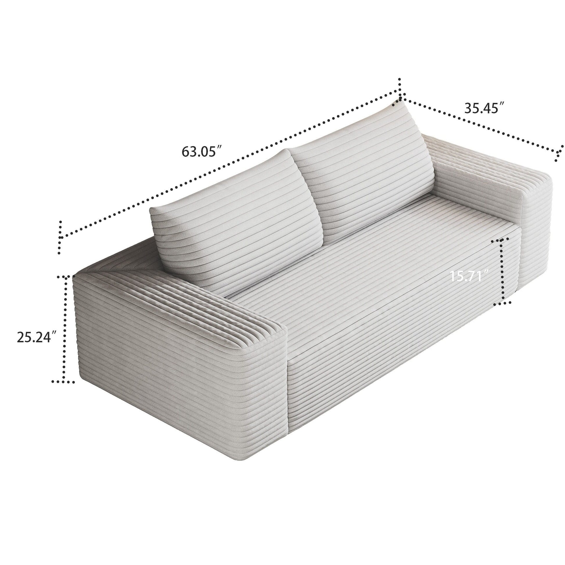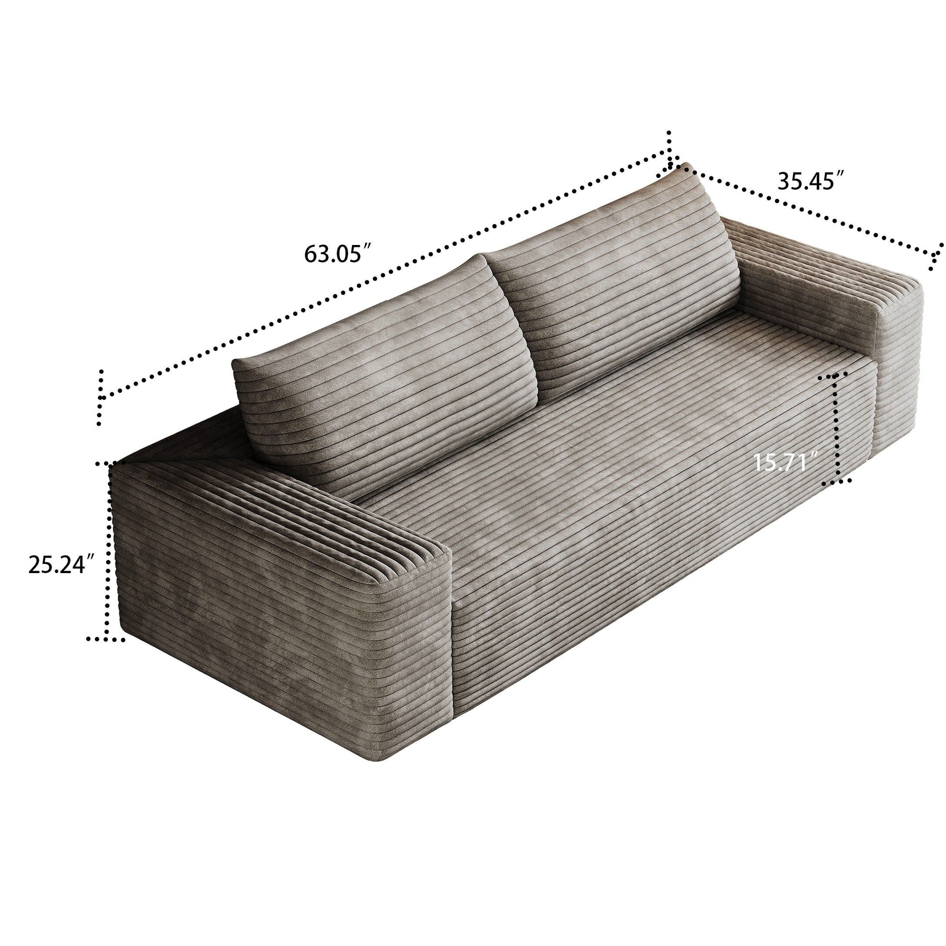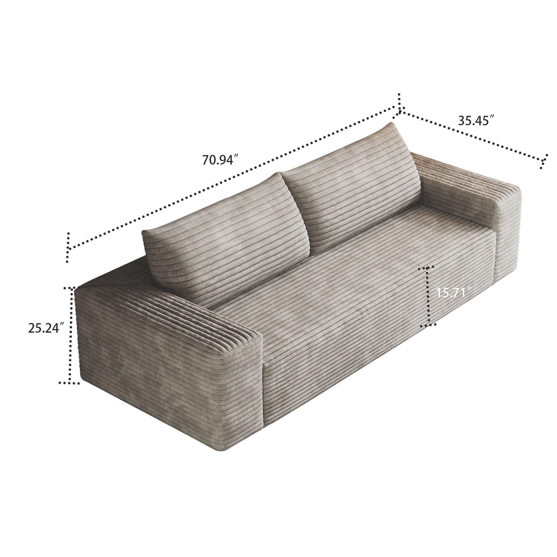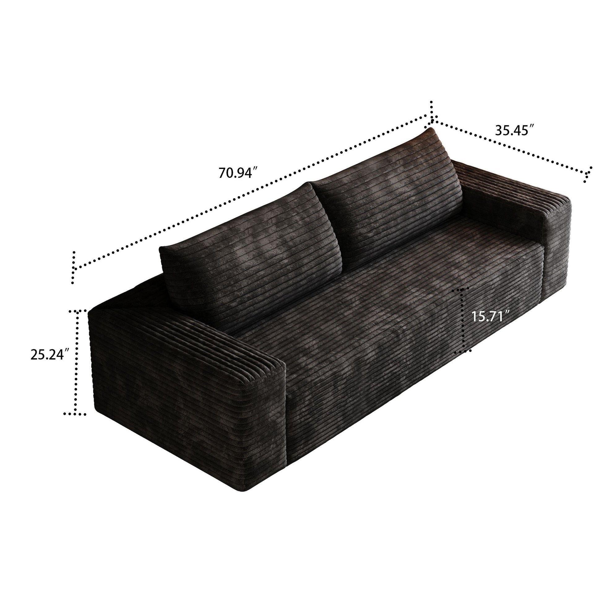 Sublimez votre espace de vie grâce au confort douillet et au style épuré de ce canapé moderne sans cadre, recouvert d'un velours côtelé. Conçu dans un design minimaliste et enveloppé d'un velours côtelé d'une douceur luxueuse, ce canapé apporte une élégance chaleureuse à tout appartement, bureau ou salle de divertissement. Sa forme ergonomique et ses coussins moelleux assurent un confort optimal tout au long de la journée, tandis que sa construction sans cadre et son installation sans outil lui permettent de s'intégrer facilement à tous les intérieurs. Que vous vous prélassiez seul ou que vous organisiez des soirées cinéma, ce meuble polyvalent allie à la perfection simplicité, fonctionnalité et texture chaleureuse.