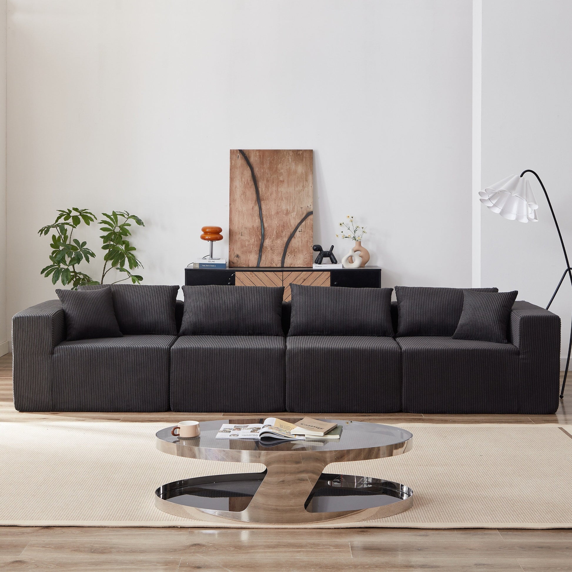 - Cet ensemble de canapés modulaires en L de 264 cm présente un design minimaliste avec un tissu doux en velours côtelé et un rembourrage en mousse intégrale. Sa configuration en 4 pièces permet des aménagements flexibles pour s'adapter à tous les espaces, tandis que son installation sans assemblage et sa structure légère facilitent son déplacement et son installation dans n'importe quelle pièce.