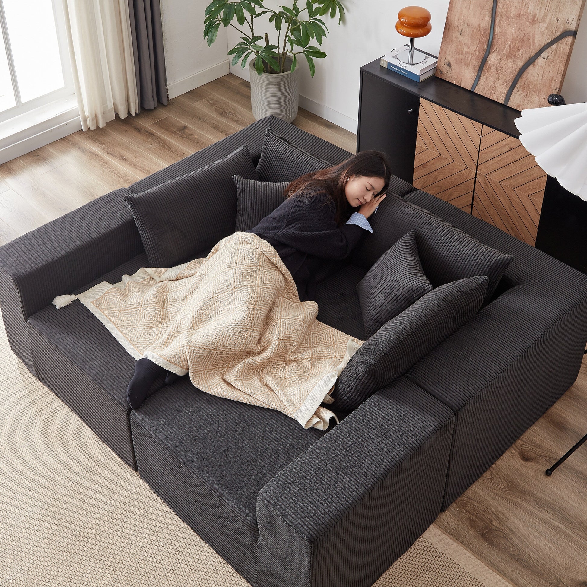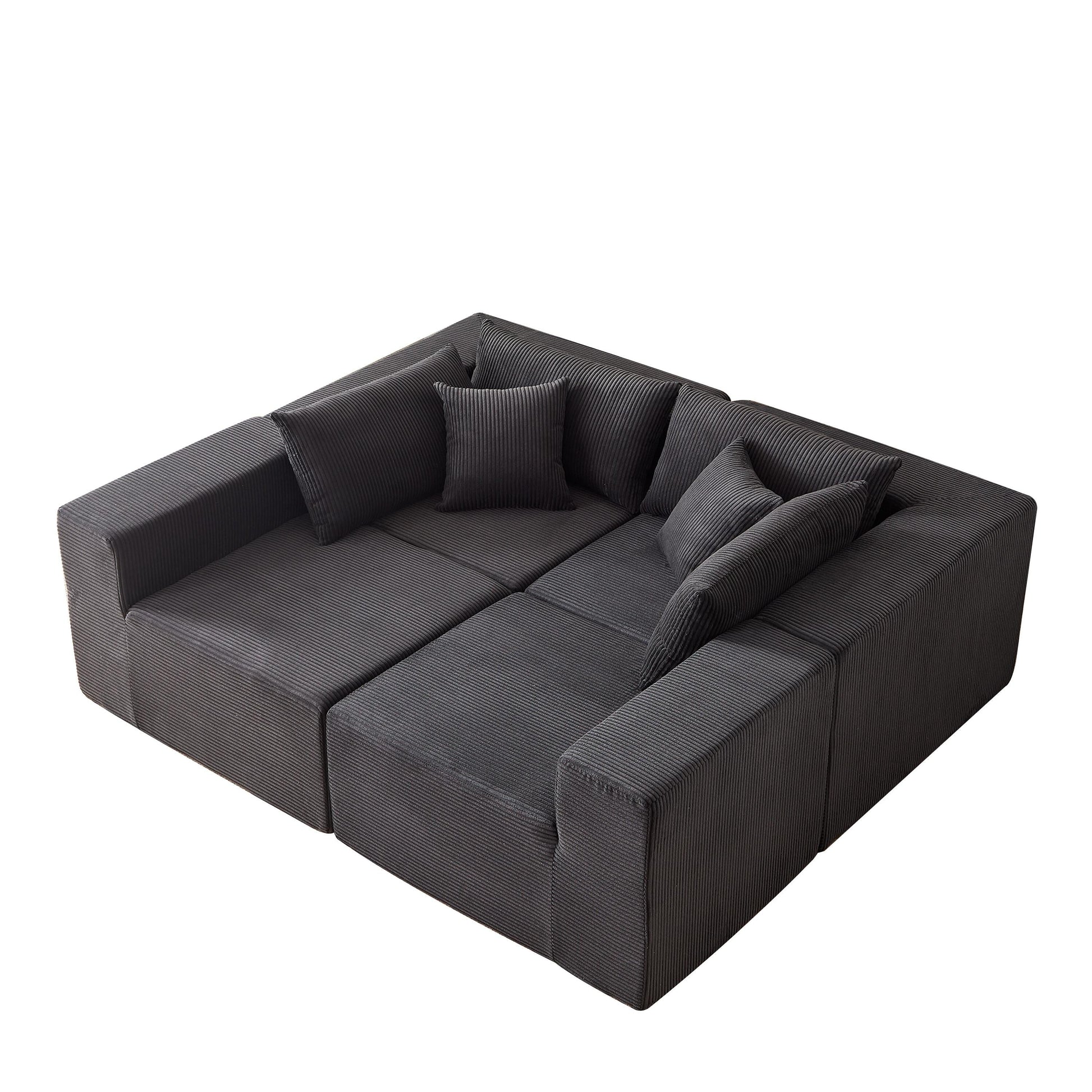 Ensemble de canapés modulaires en L en velours côtelé moderne, 4 pièces, pour salon et chambre à coucher