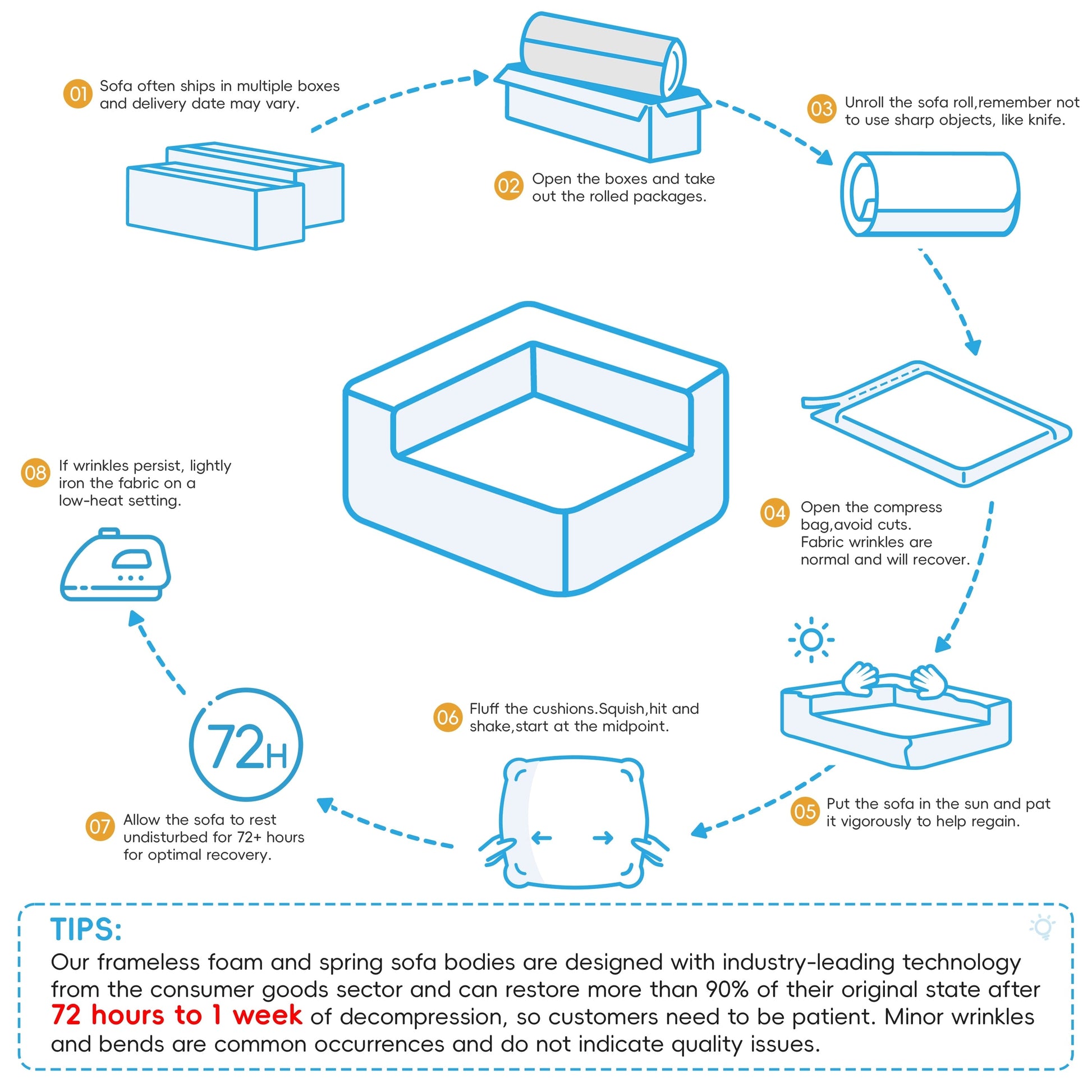 - Ce canapé d'angle modulaire en U offre un confort moelleux grâce à sa structure entièrement en éponge qui épouse les formes du corps. Son design compact et sans cadre le rend léger, facile à déplacer et sûr pour les familles. Aucun assemblage requis, il est utilisable immédiatement après le déballage et le retour à la normale.