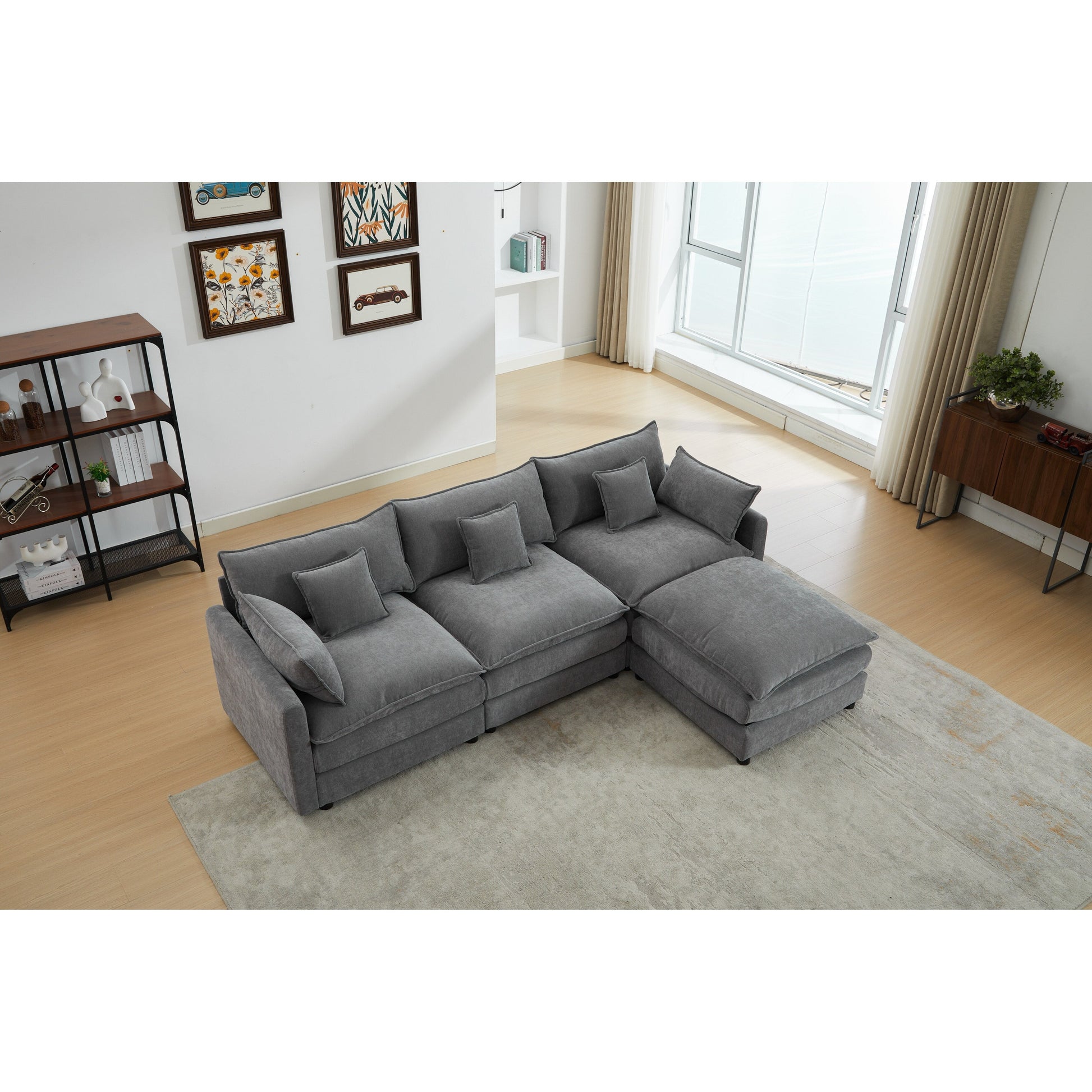 Canapé modulable 3 places en L moderne avec pouf amovible pour salon et appartement