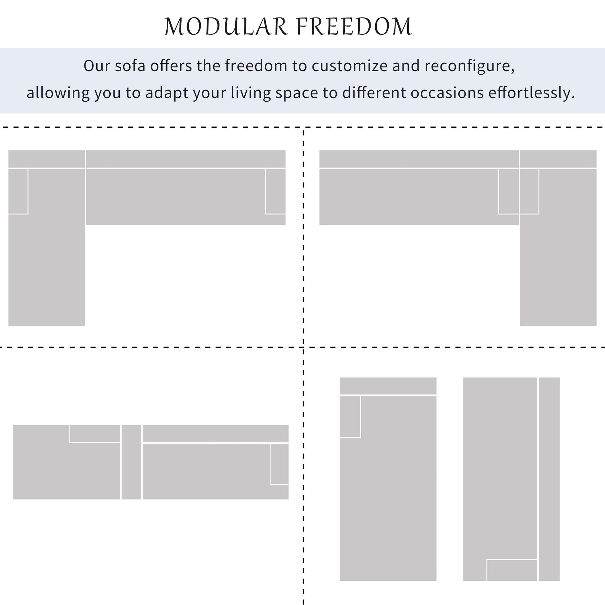 - Profitez d'un confort optimal grâce à ce canapé modulable moderne en L, fabriqué en mousse haute densité pour un soutien et un confort optimal. Doté d'une assise profonde et d'une silhouette discrète, il offre un style décontracté et contemporain qui convient parfaitement aux salons, chambres ou salons. Son tissu texturé infroissable lui confère durabilité et style, tandis que son aménagement spacieux invite à la détente et à la polyvalence.