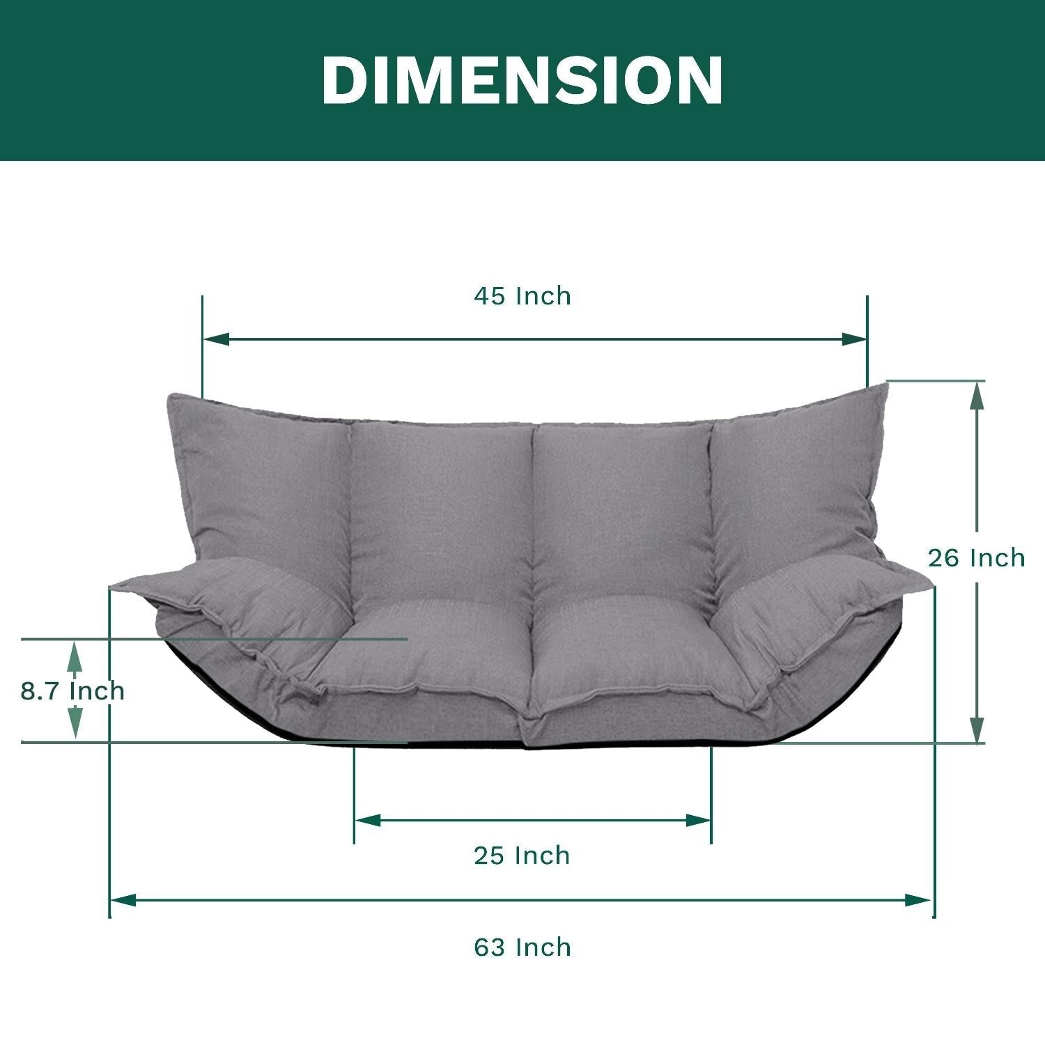 - Dimensions : Extension plate de 44' x 63' et taille du siège de 26' x 63', offrant un grand espace pour la détente et une utilisation polyvalente.