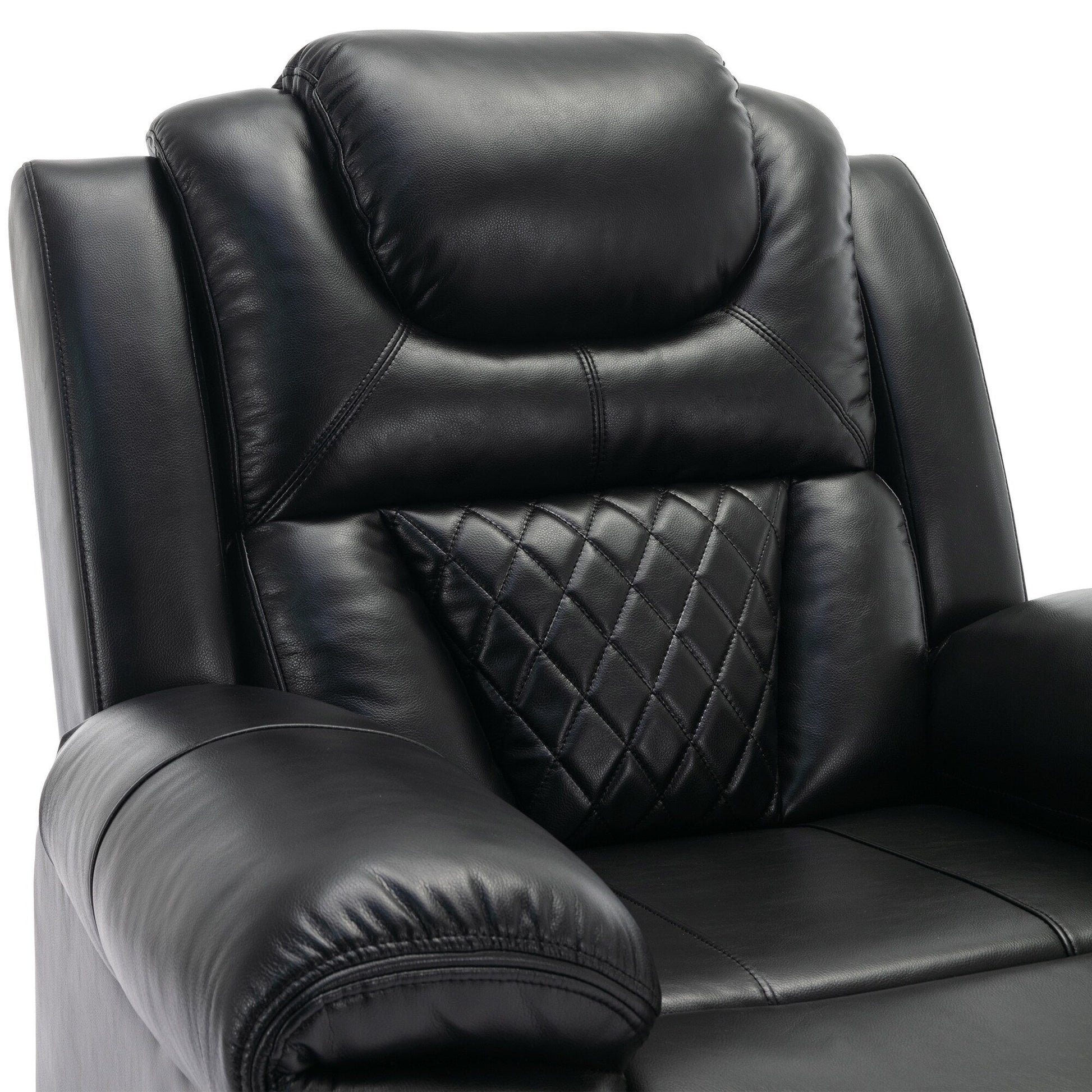 - Détendez-vous dans ce fauteuil inclinable à réglage manuel, conçu pour le confort et le divertissement à domicile. Revêtu de similicuir respirant et doté d'un éclairage LED intégré, ce fauteuil sublimera vos soirées cinéma en alliant soutien et ambiance. Sa structure robuste, son rembourrage moelleux et son mécanisme d'inclinaison fluide en font un ajout polyvalent à votre espace de vie.