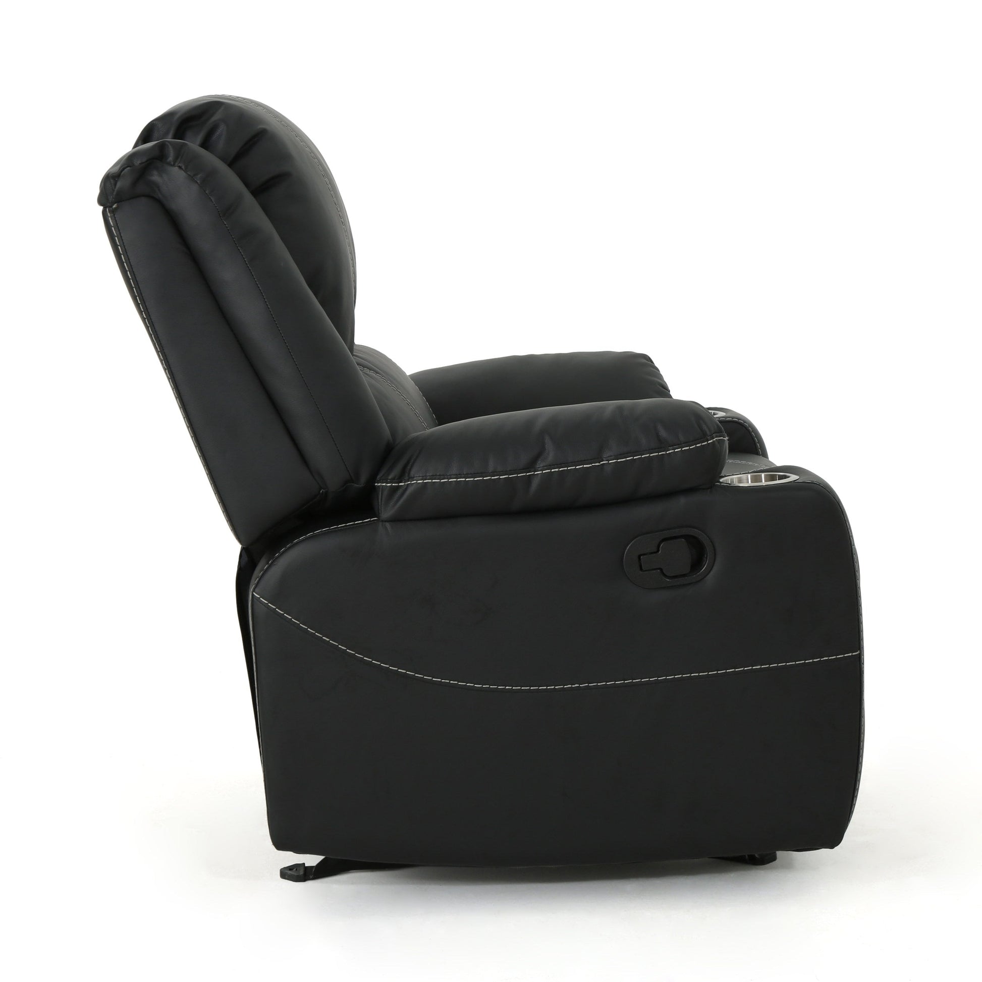 Fauteuil inclinable manuel moderne avec cuir synthétique moelleux, porte-gobelets en acier intégrés et inclinaison réglable