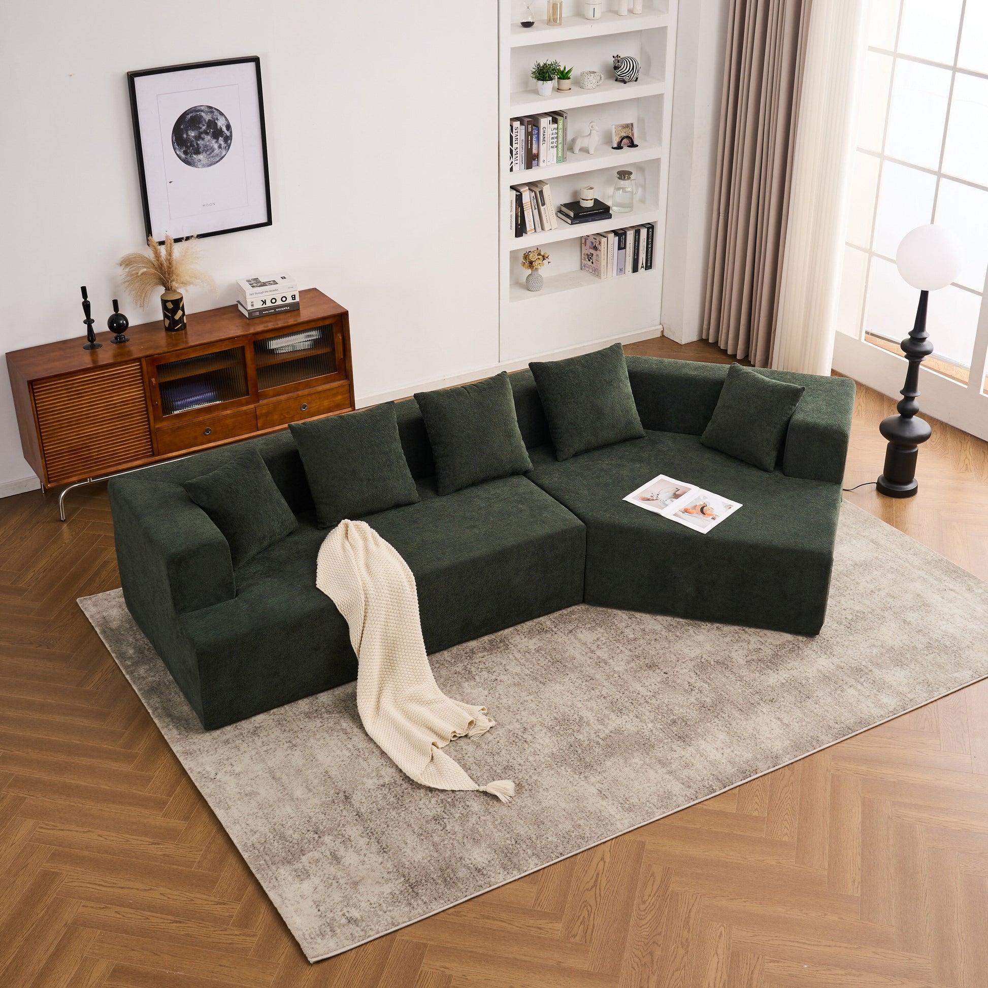 Mousse à rebond rapide : Nous avons renforcé la résilience de la mousse grâce à un rembourrage supplémentaire, permettant au canapé de retrouver sa forme initiale à 80 % dès le déballage. Il comprend trois coussins amovibles et lavables et deux appuie-têtes pour plus de confort et de praticité.