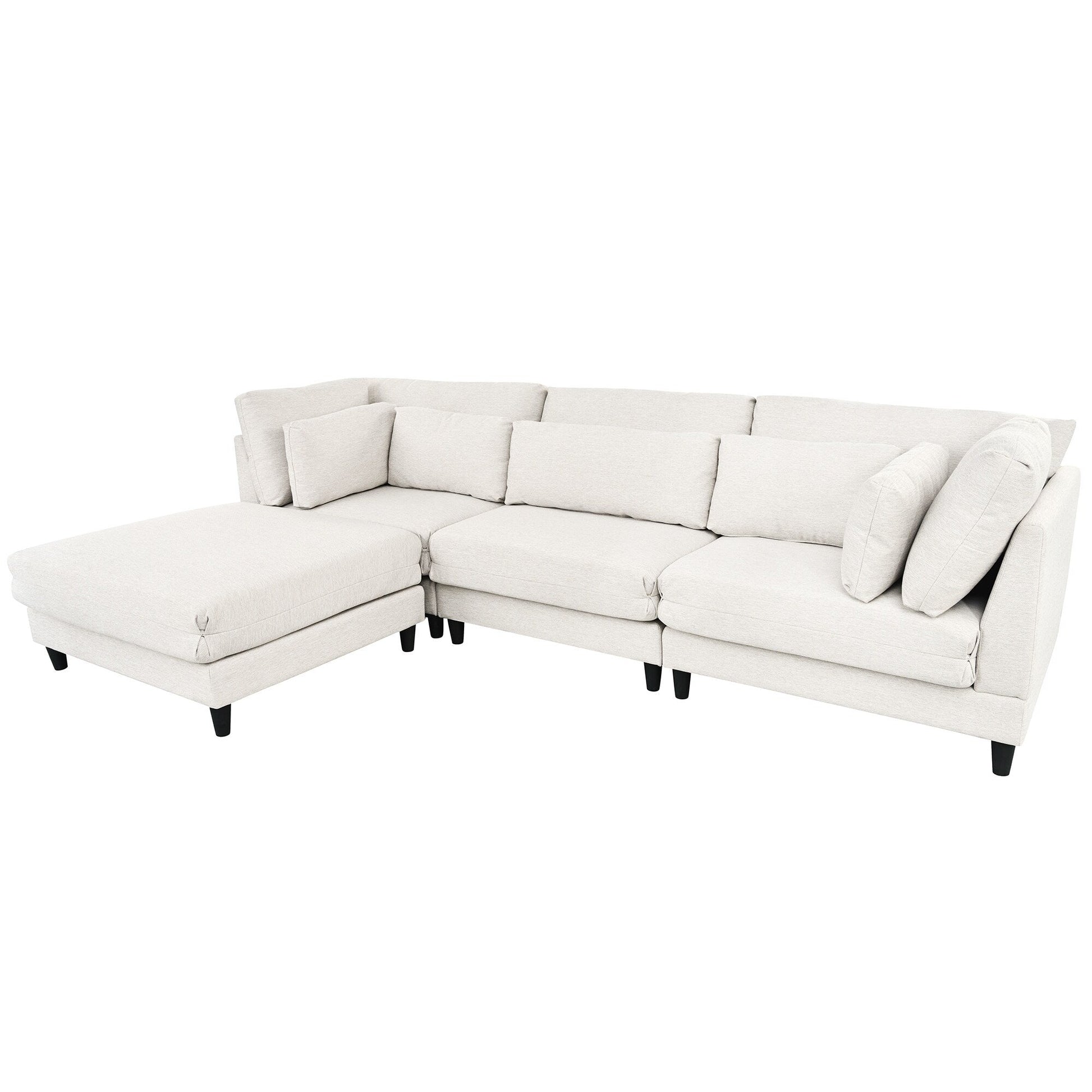 Canapé modulaire moderne en L 4 places avec 5 coussins et pouf amovible pour salon ou bureau