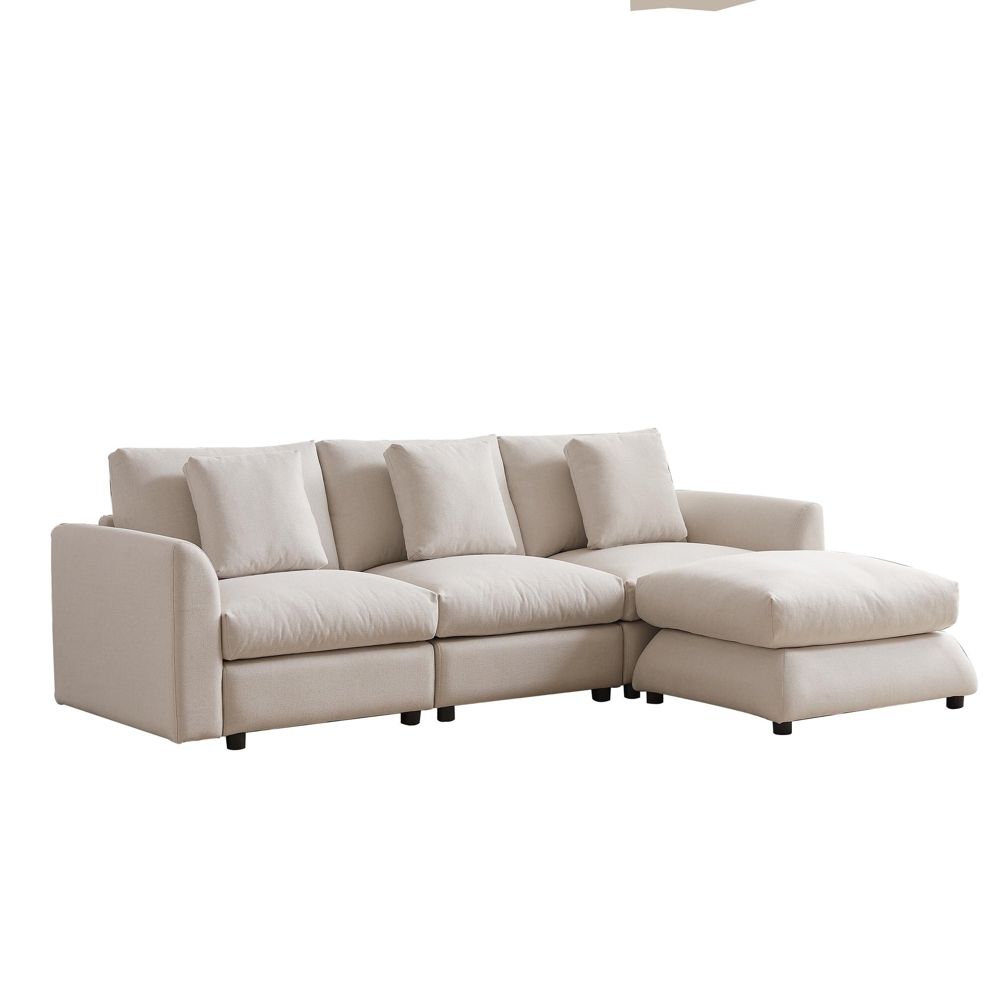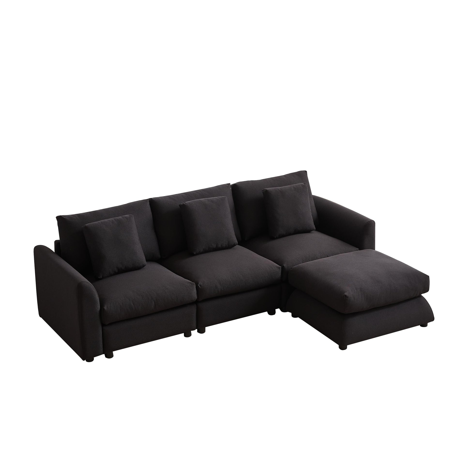 Canapé modulaire moderne en L avec pouf, 3 coussins et 3 oreillers pour le salon