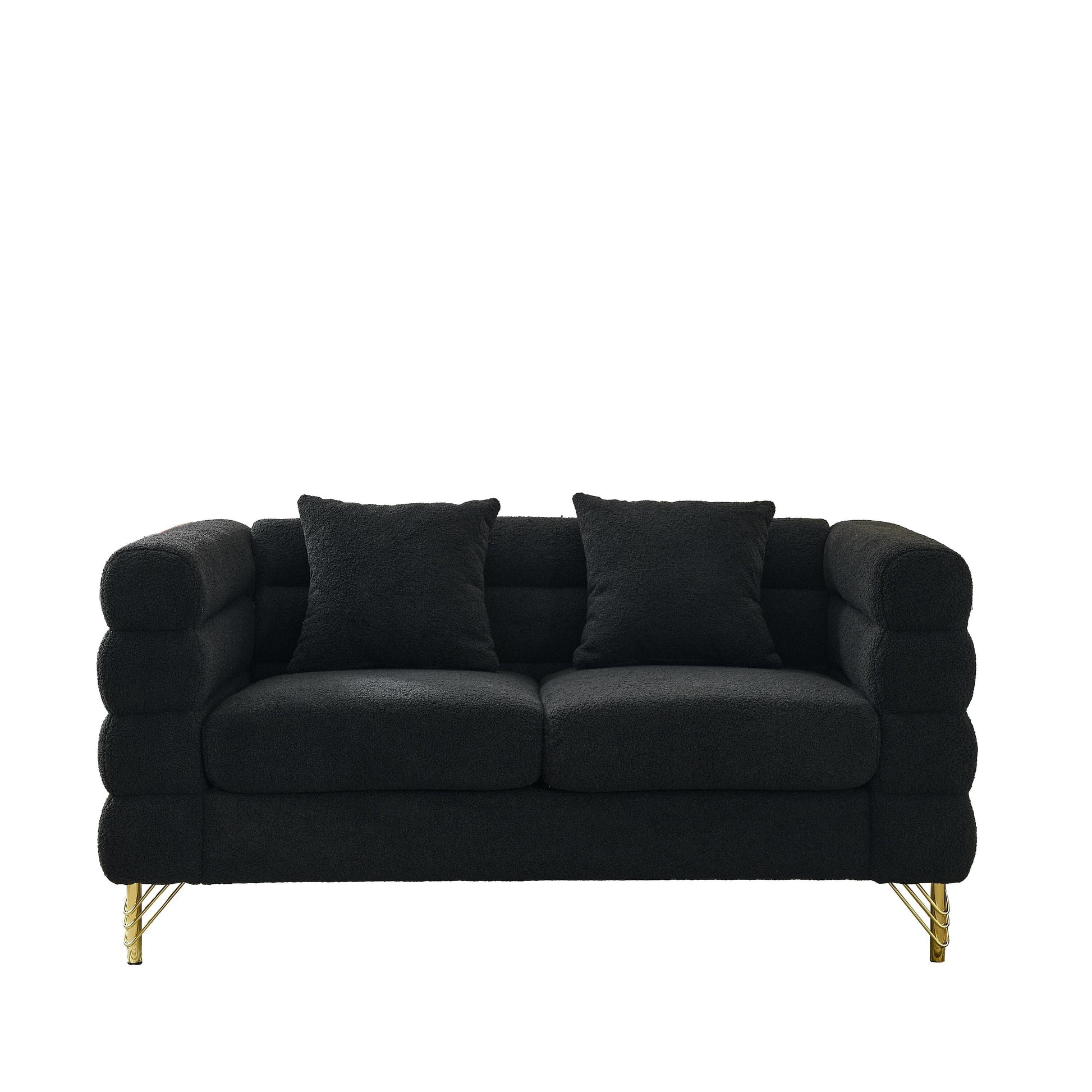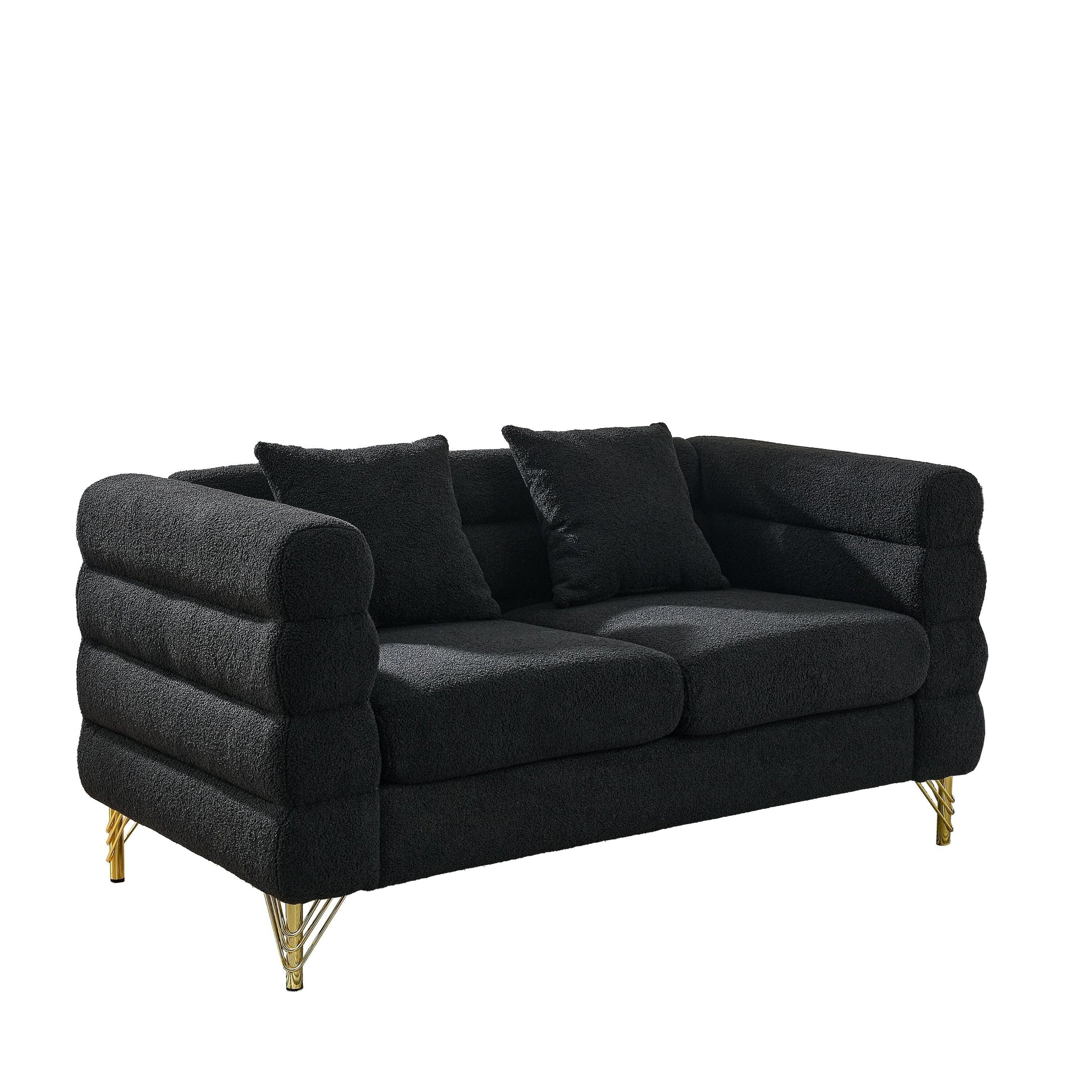 Canapé sectionnel moderne surdimensionné 2 places avec causeuse incurvée et 2 coussins, pieds en métal doré pour le salon