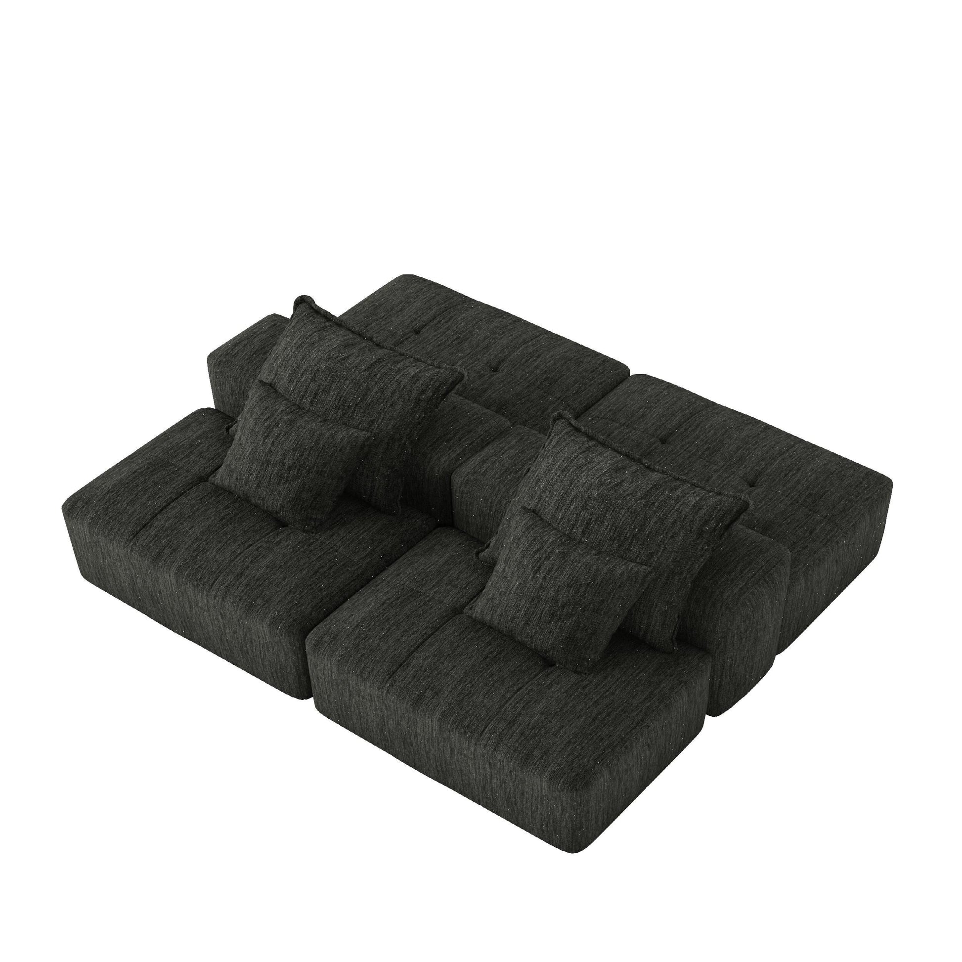 Canapé modulaire moderne surdimensionné en chenille avec 2 poufs, 2 places et 4 coussins pour le salon
