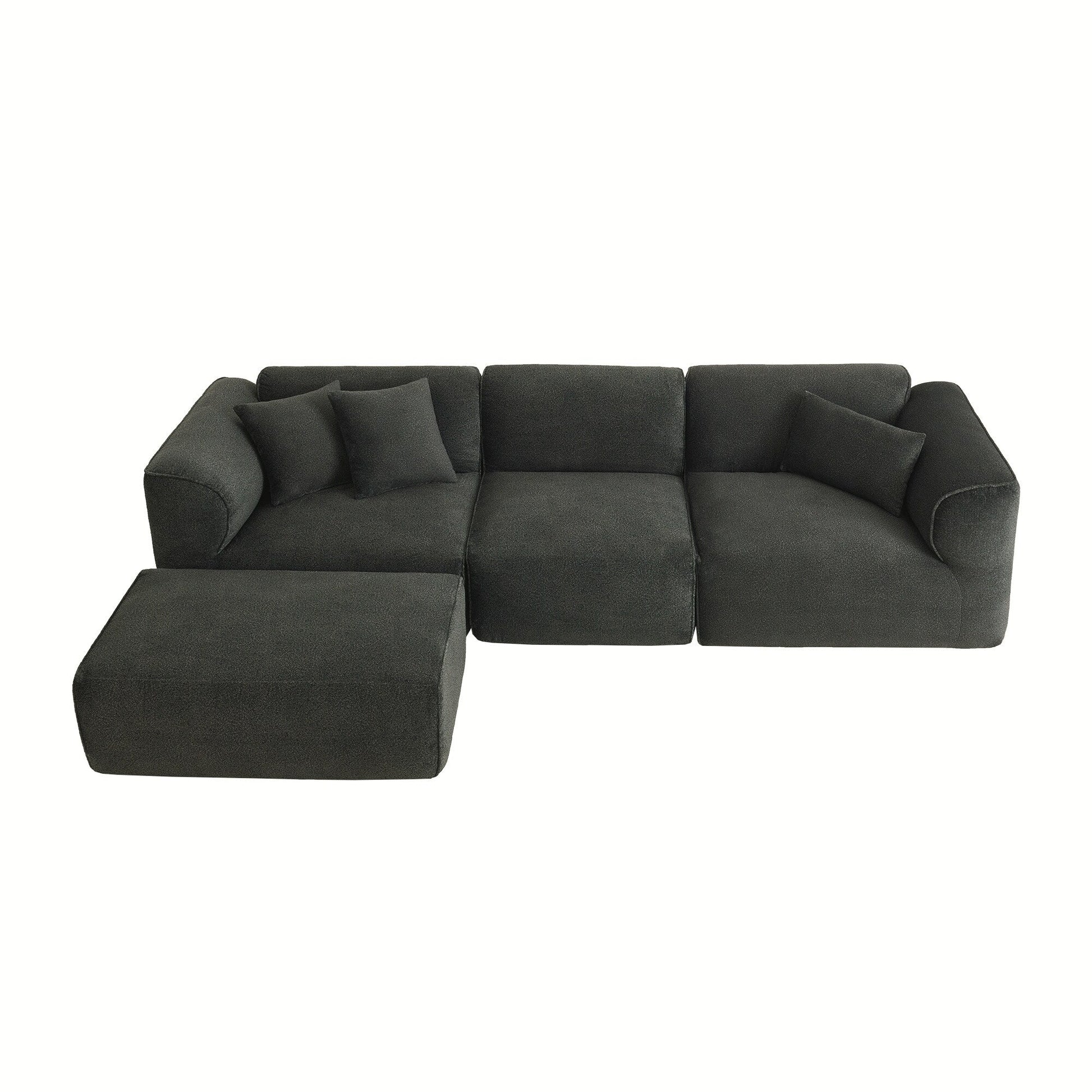Canapé sectionnel moderne de luxe en velours 4 places avec pouf amovible et oreillers pour salon appartement