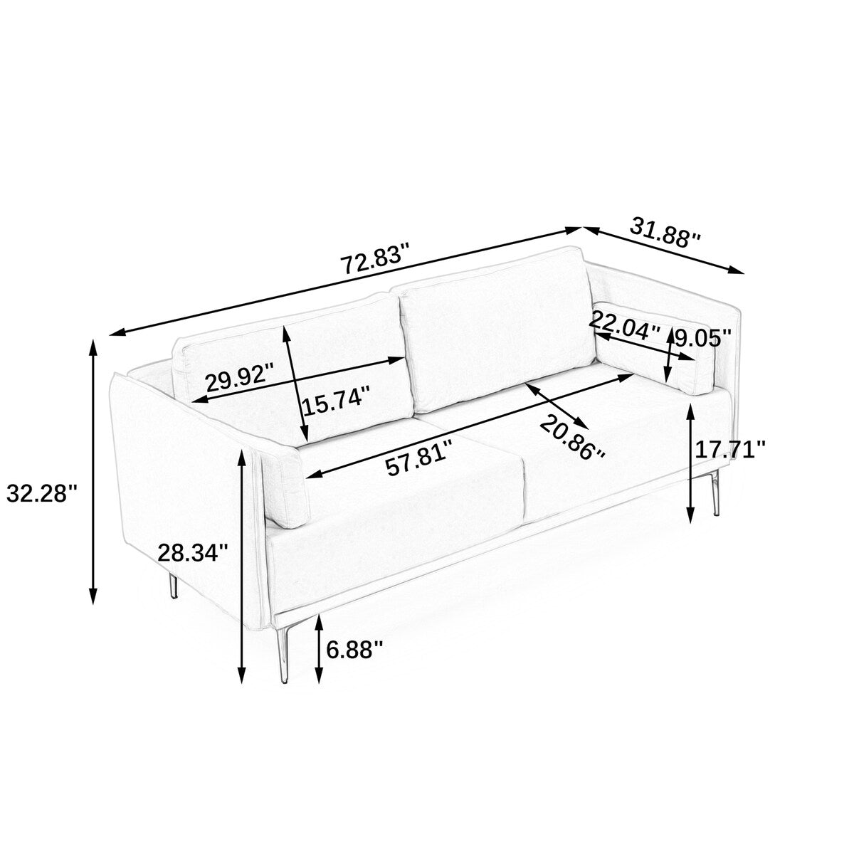 Canapé minimaliste moderne : des bords droits et épurés et des accoudoirs droits et élégants caractérisent le style moderne. Linéaires et minimalistes, les coussins d'assise s'intègrent harmonieusement aux accoudoirs, créant ainsi un style épuré. La garniture métallique à l'avant apporte une touche artistique.