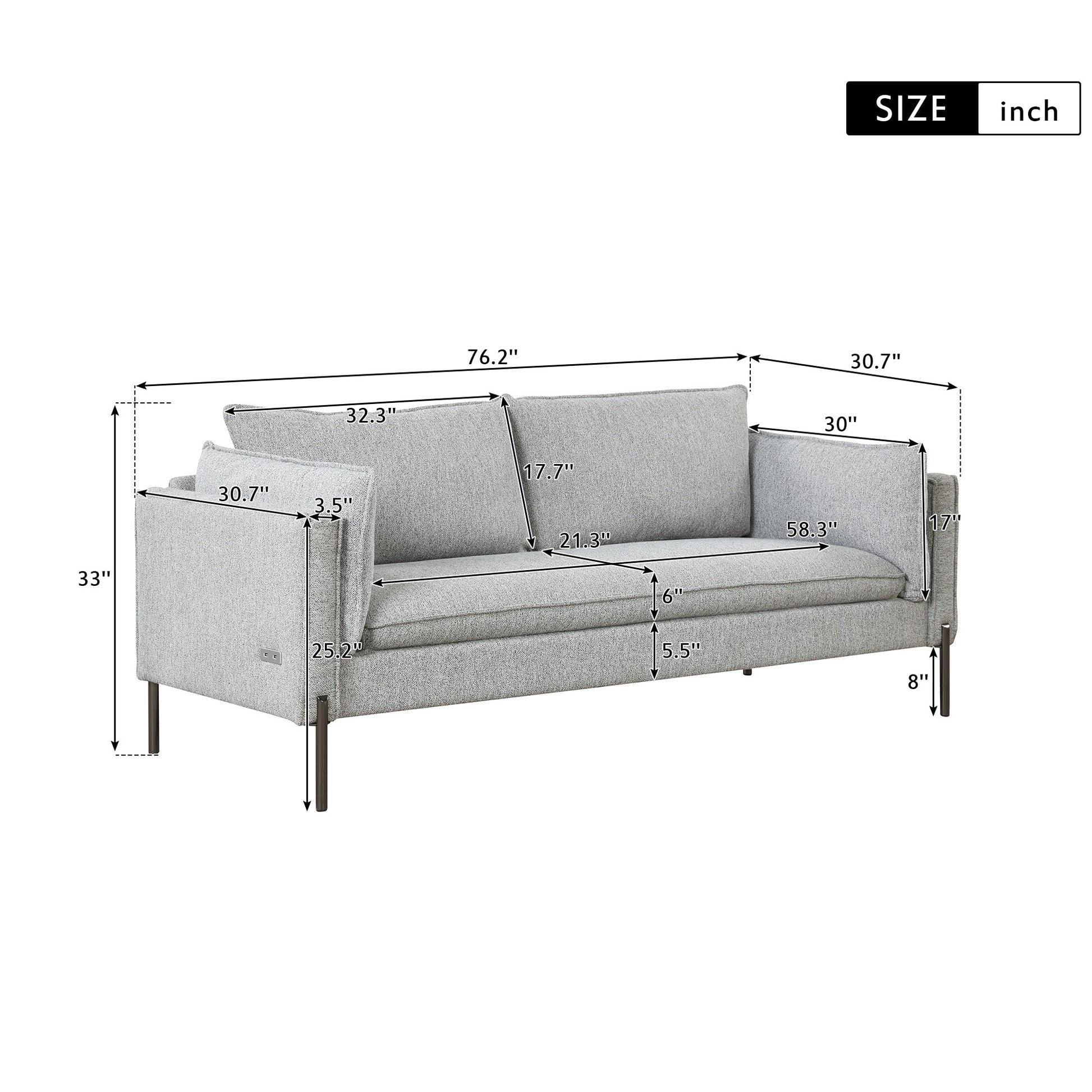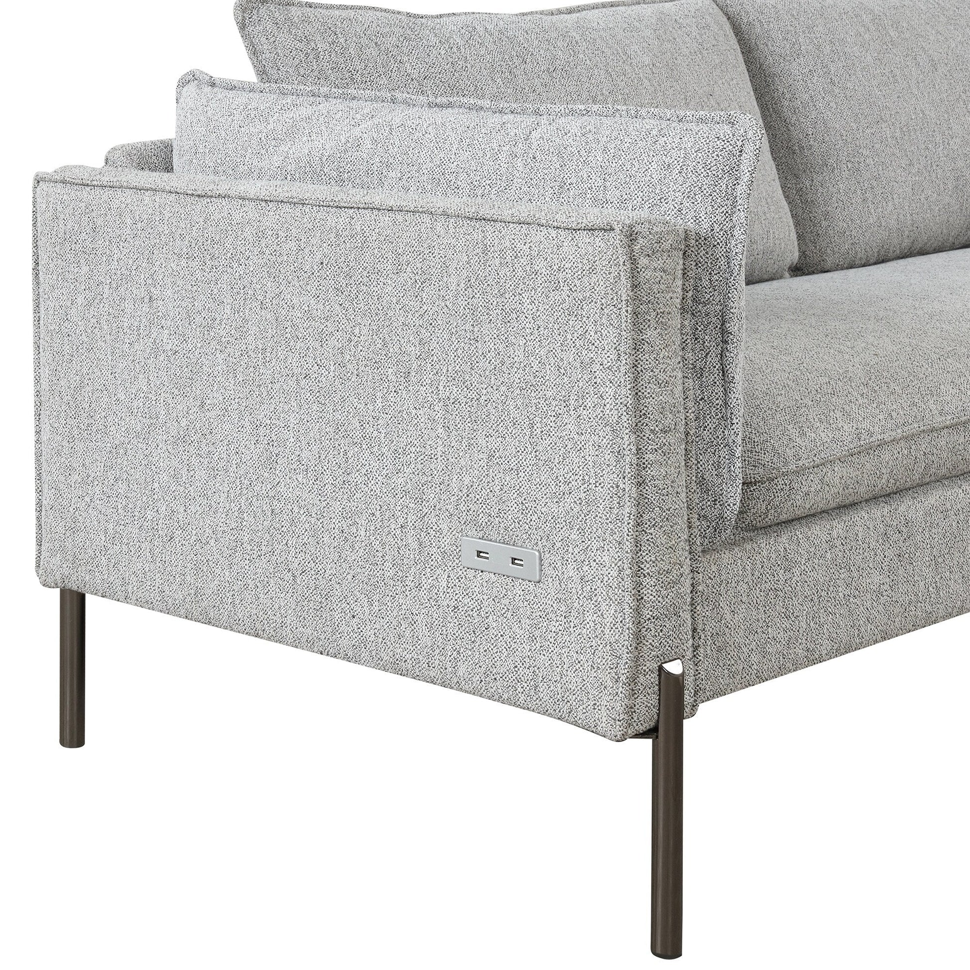 Deux ports de charge USB : 2 ports USB dans l'accoudoir peuvent charger vos appareils USB. Lorsque votre téléphone ou votre ordinateur portable est à court de batterie, vous n'avez pas à vous soucier de jouer à des jeux ou de travailler sur le canapé.