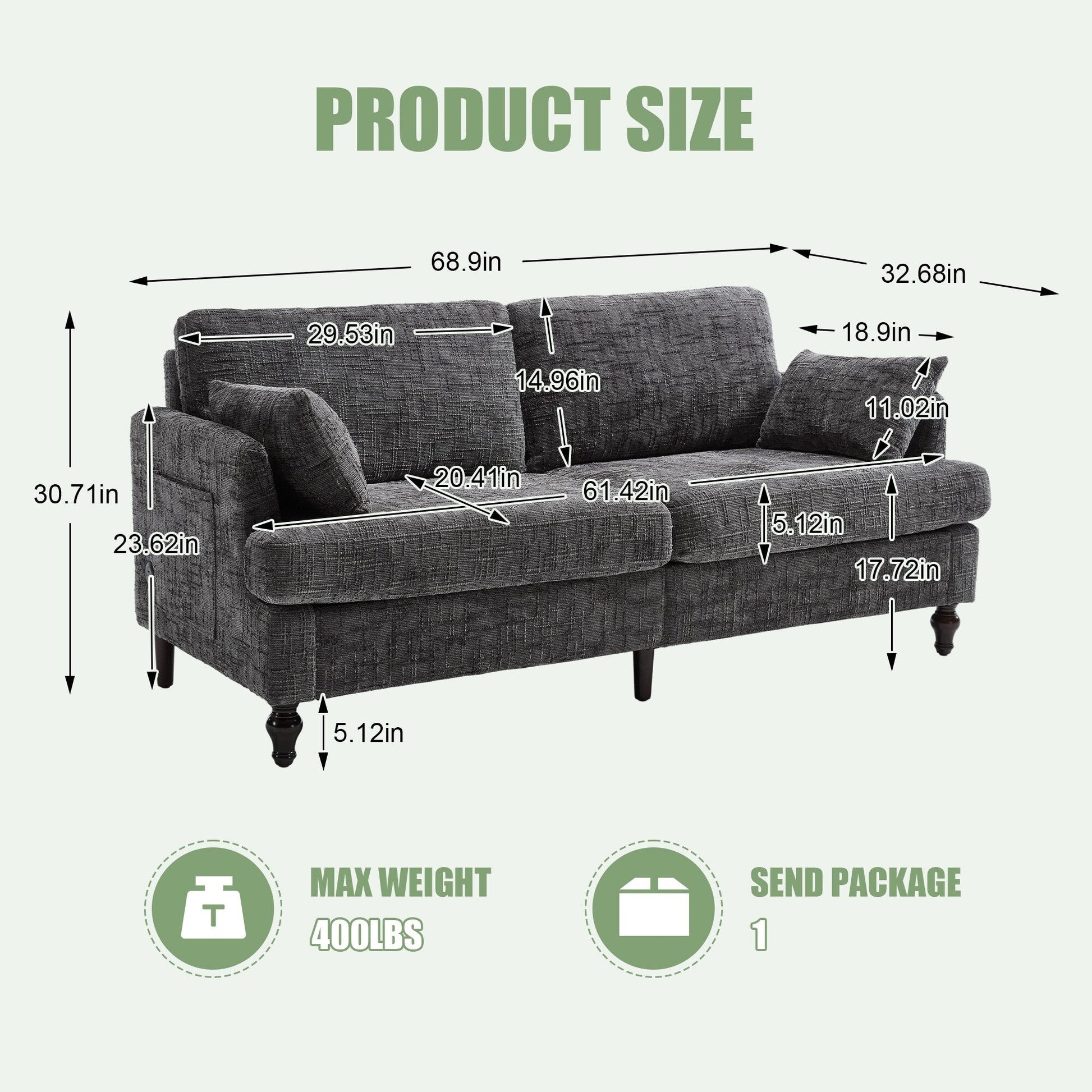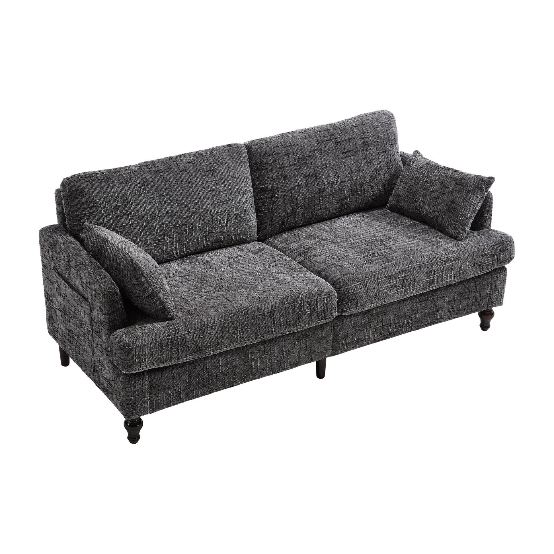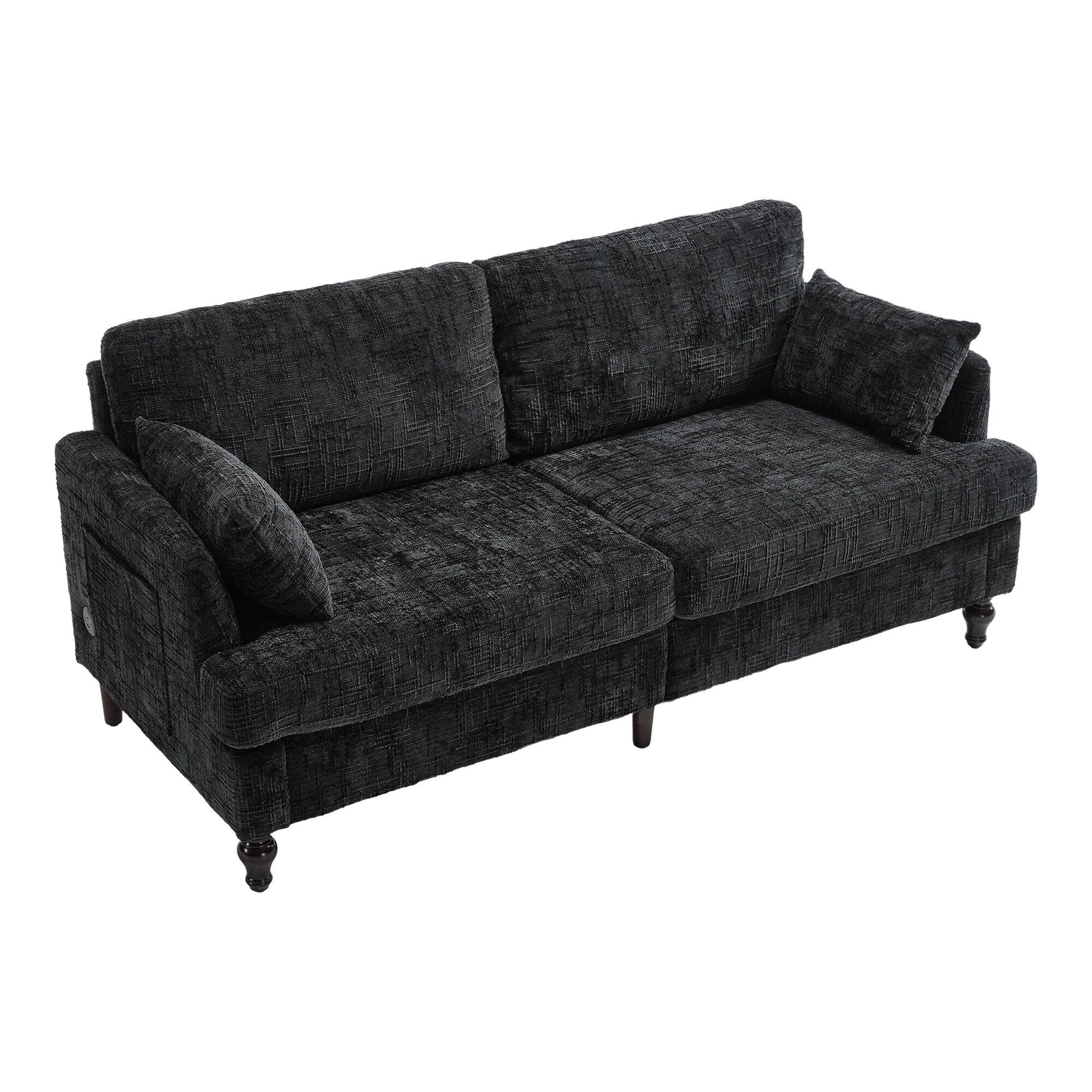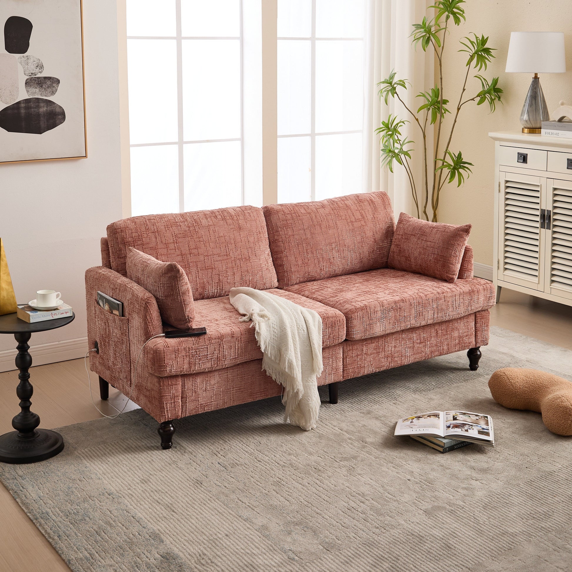 Canapé 2 places en chenille de style moderne avec pieds en bois, éclairage LED, port de chargement USB et sac de rangement, idéal pour le salon, la chambre à coucher ou le bureau.