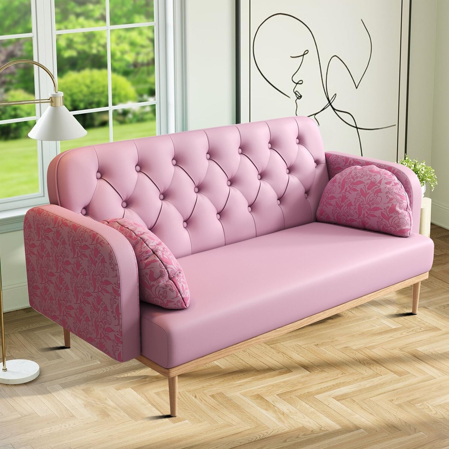 Ce canapé présente une palette de couleurs unies avec des dossiers classiques décorés de boutons à carreaux en losange, présentant un mélange parfait de romantisme français et de simplicité moderne qui convient à une large gamme de styles de maison.