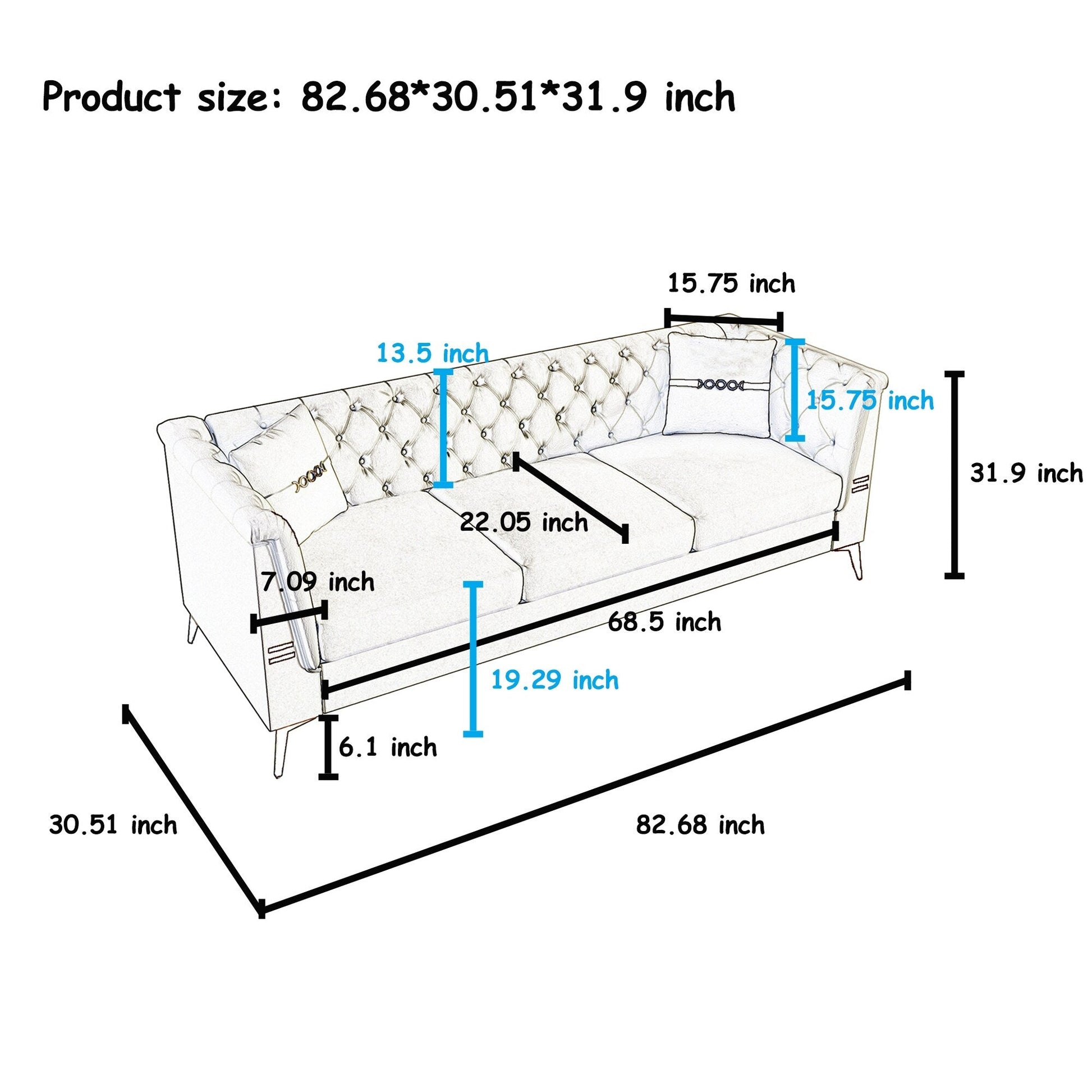- Combinant des accents métalliques avec des détails capitonnés classiques, ce canapé respire l'élégance moderne tout en conservant une atmosphère chaleureuse et accueillante, parfait pour une variété de styles d'intérieur.