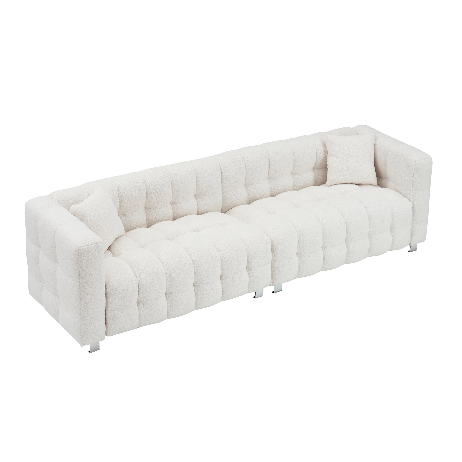 Canapé 4 places moderne rembourré, canapé en velours 102 avec 2 coussins décoratifs et support de pied pour salon et appartement