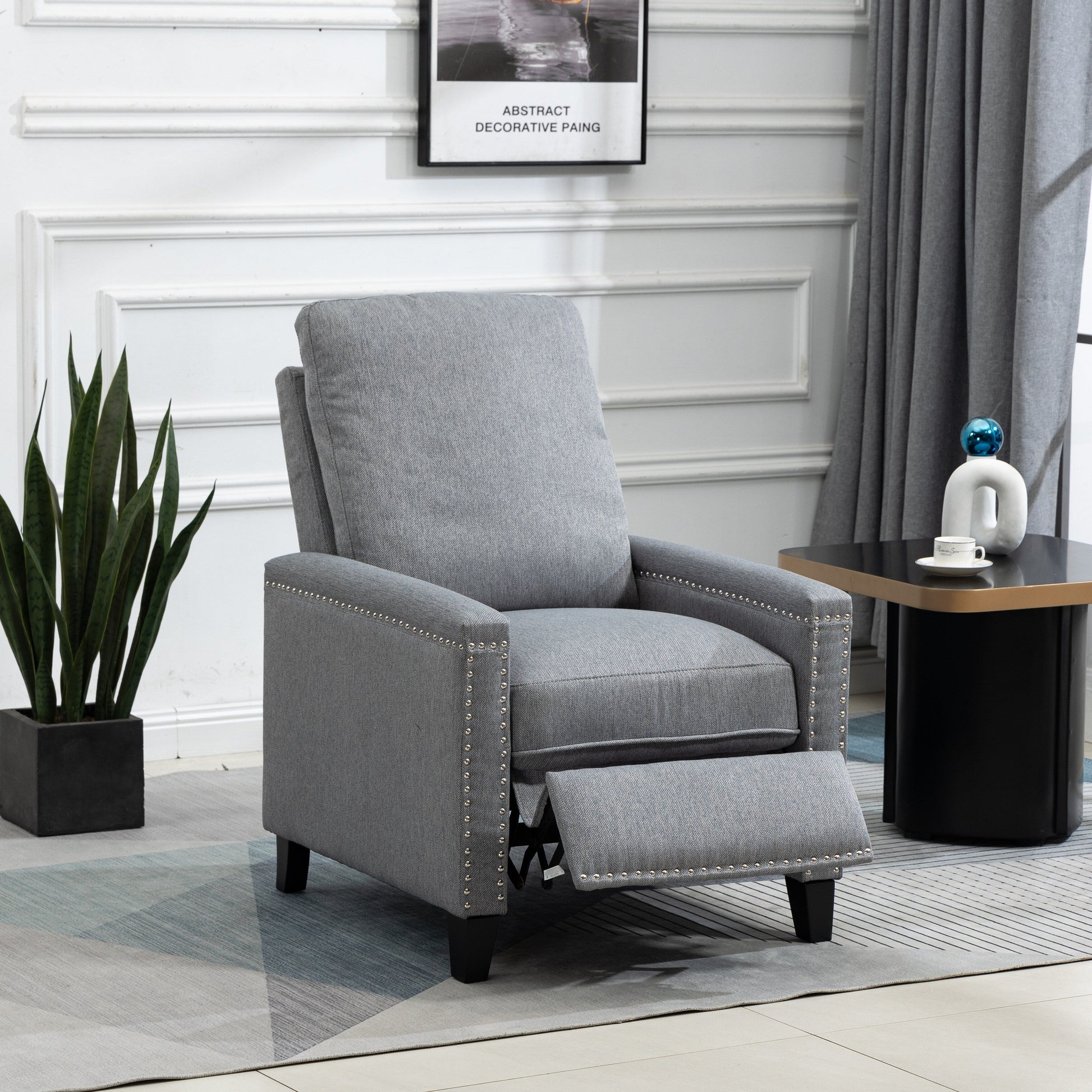 Fauteuil inclinable manuel moderne en velours avec coussins et décoration cloutée