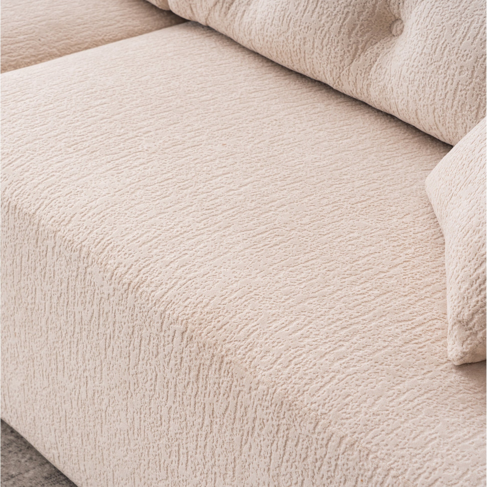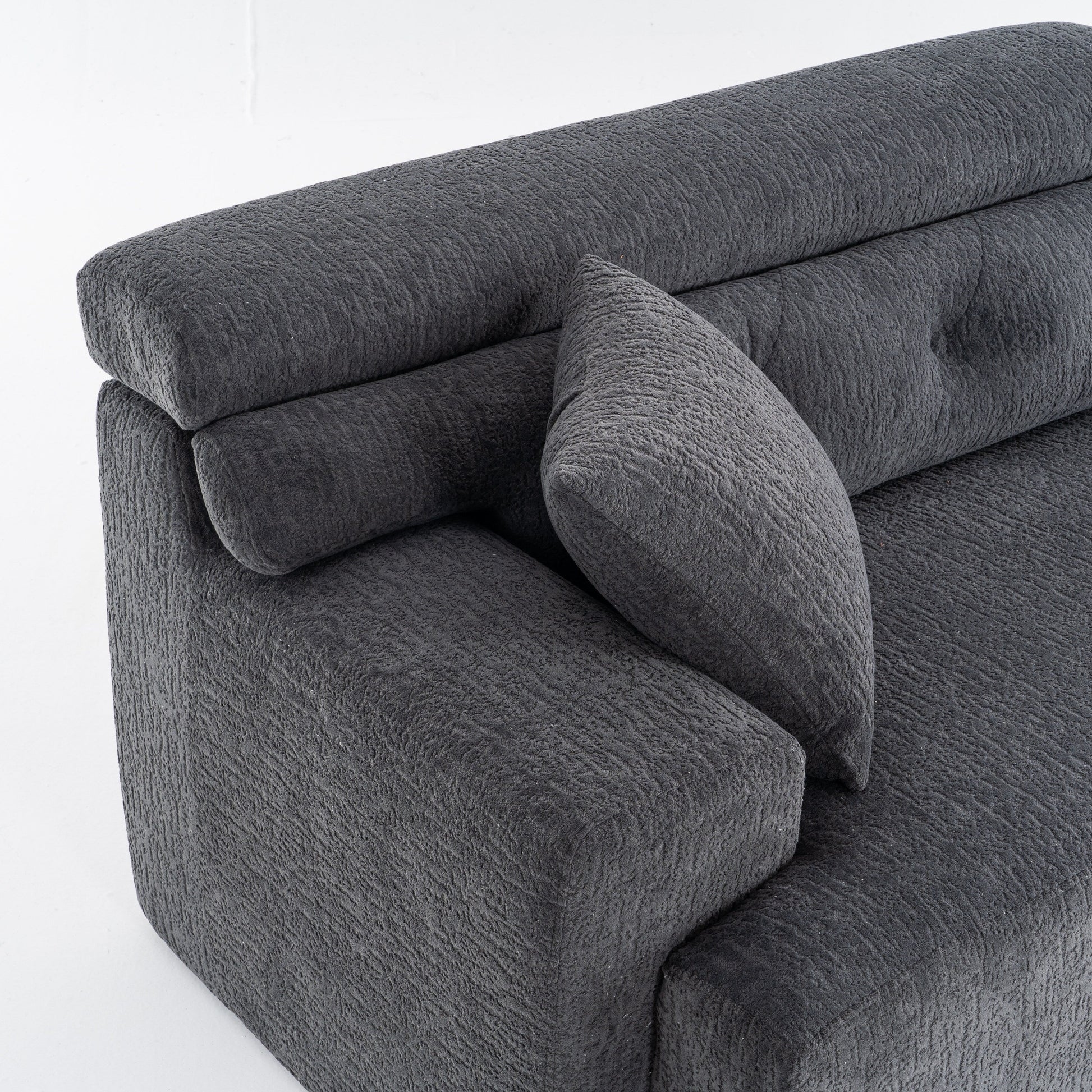 Canapé modulaire 4 places en chenille à grain de bois moderne avec 2 oreillers pour salon et appartement