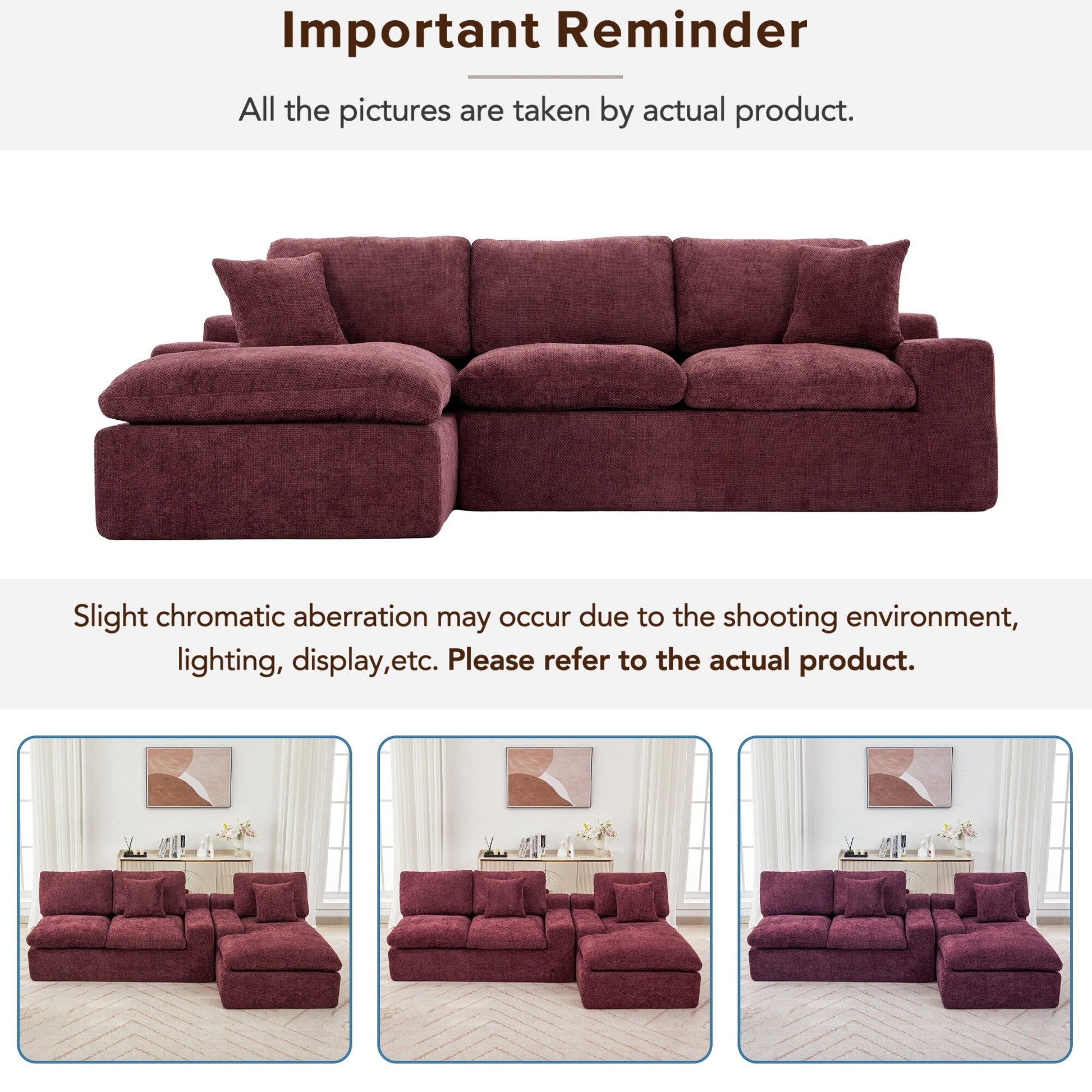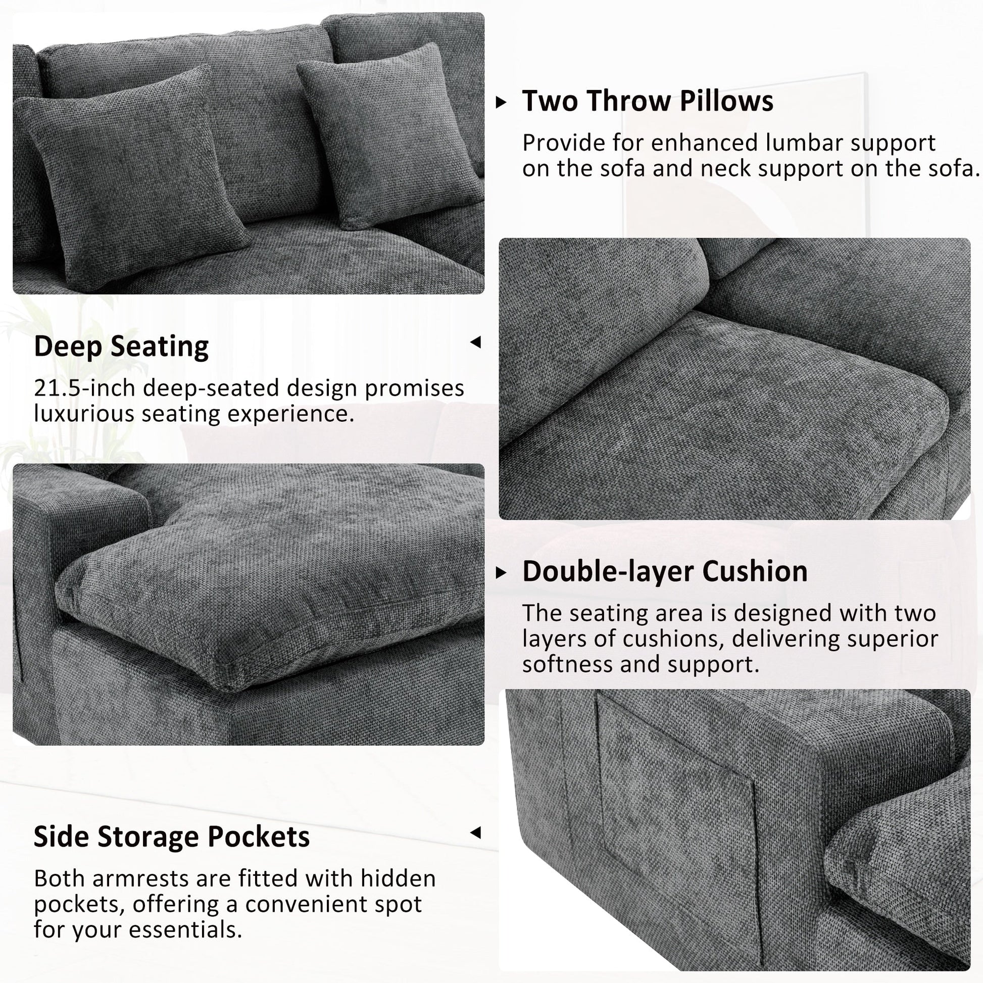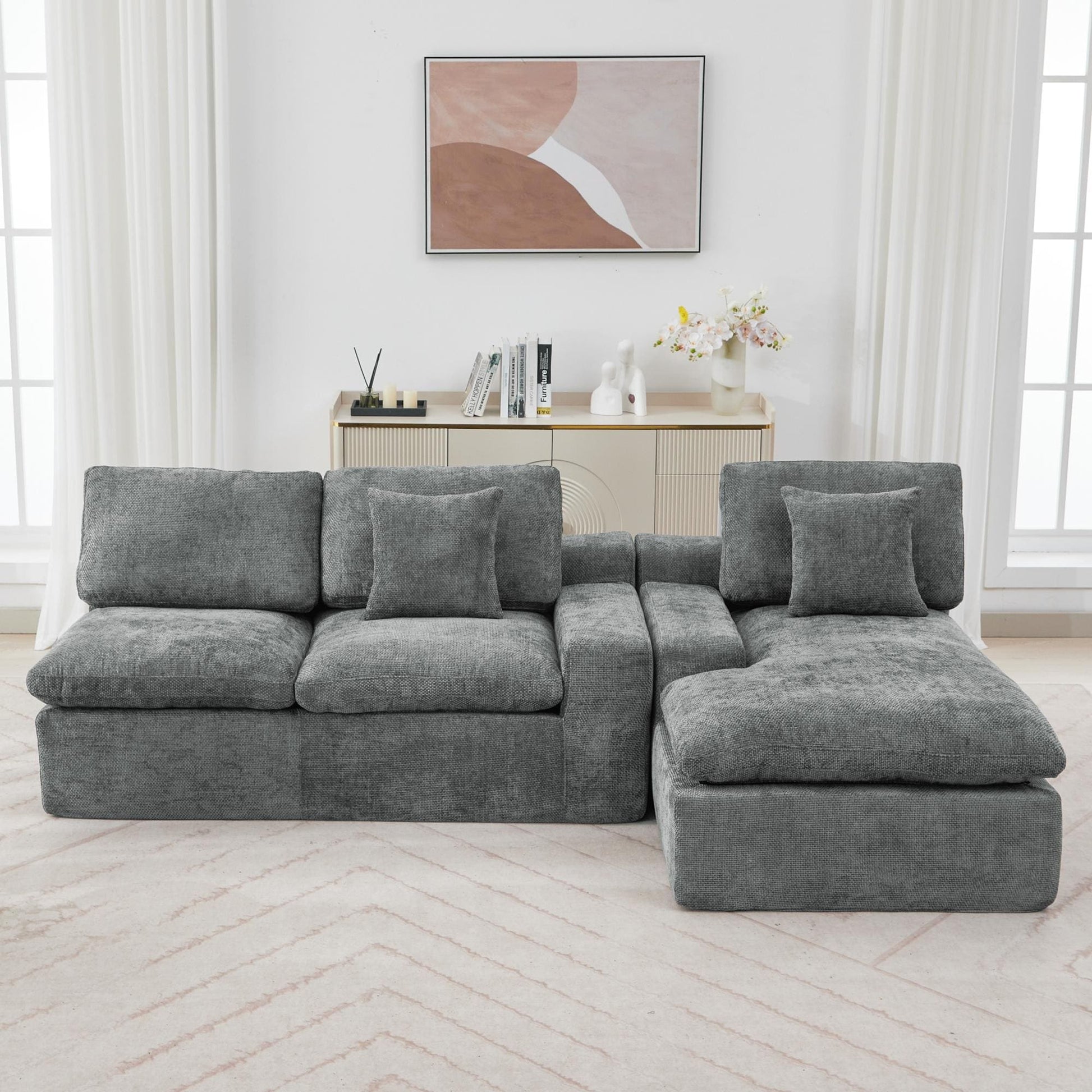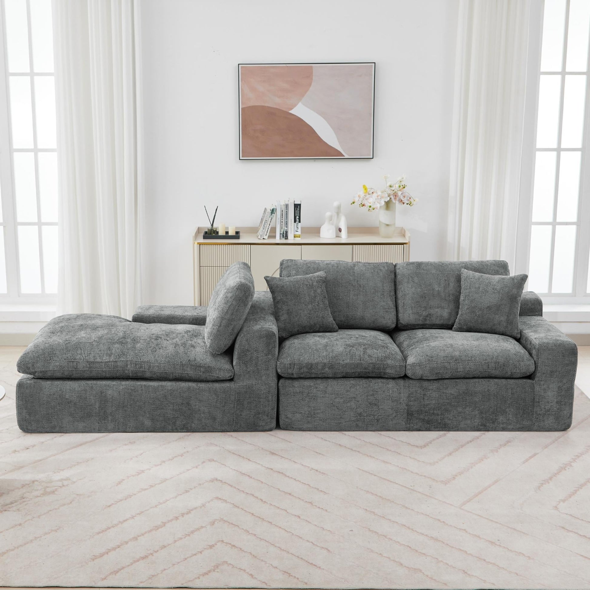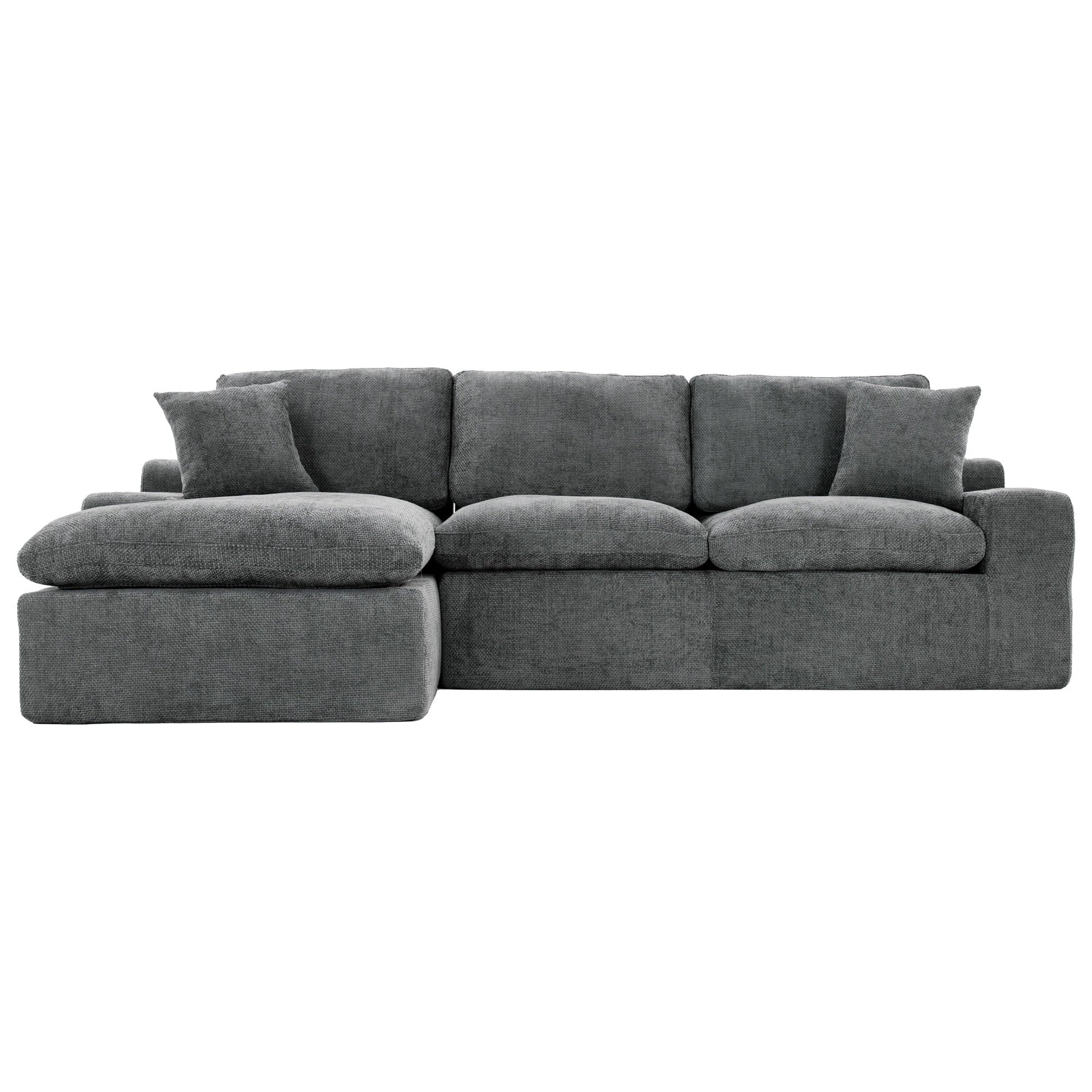 Canapé modulaire Cloud en chenille avec coussins double épaisseur, rangement latéral et oreillers assortis pour le salon