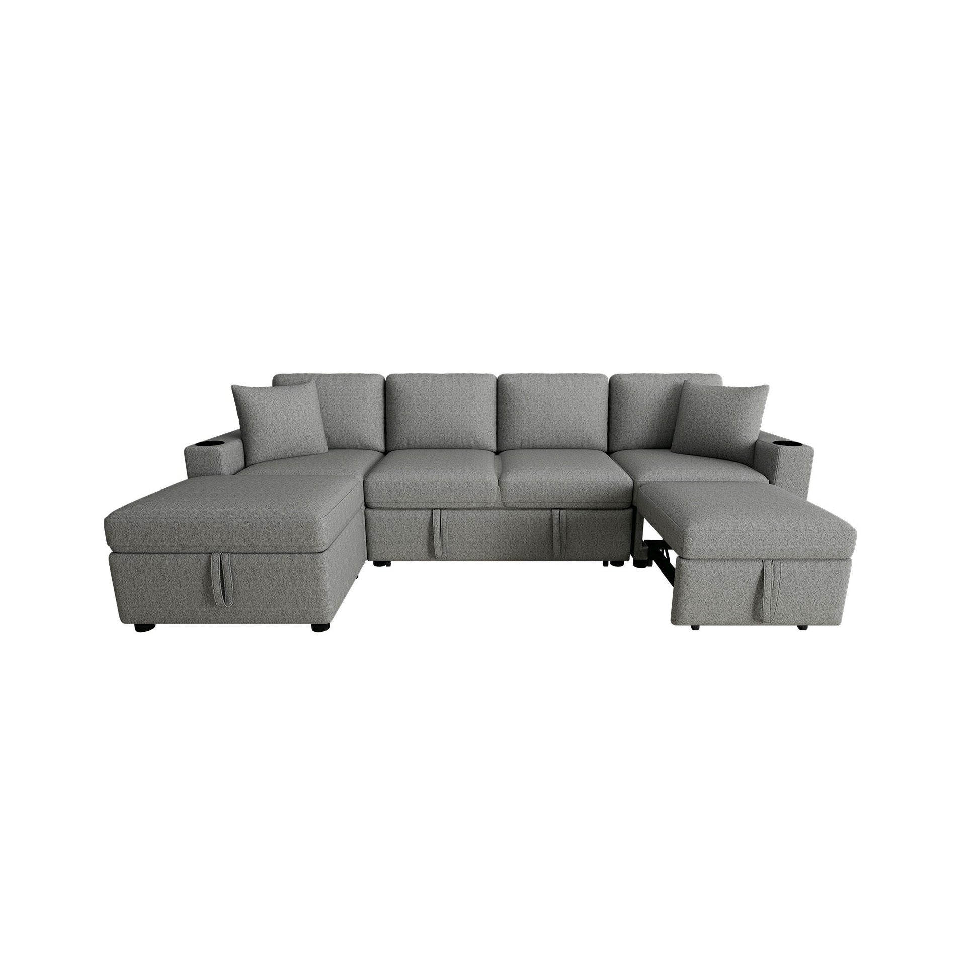 - Ce canapé-lit modulable allie une assise flexible, un couchage convertible et un rangement dissimulé dans un design épuré. Doté de ports USB intégrés, de deux porte-gobelets et d'un revêtement moelleux en chenille, il offre un confort adaptable aux espaces de vie modernes.