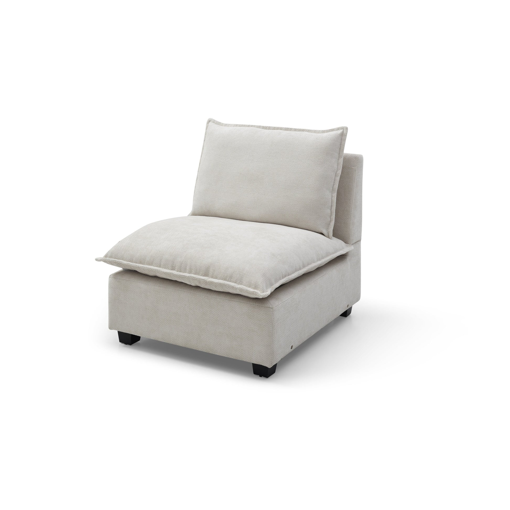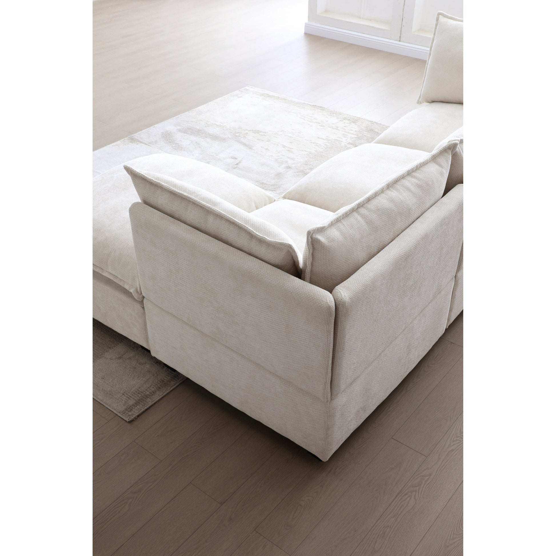 Canapé modulable en L en lin avec pouf réversible et coussins en duvet de canard moelleux, idéal pour le salon ou le bureau.