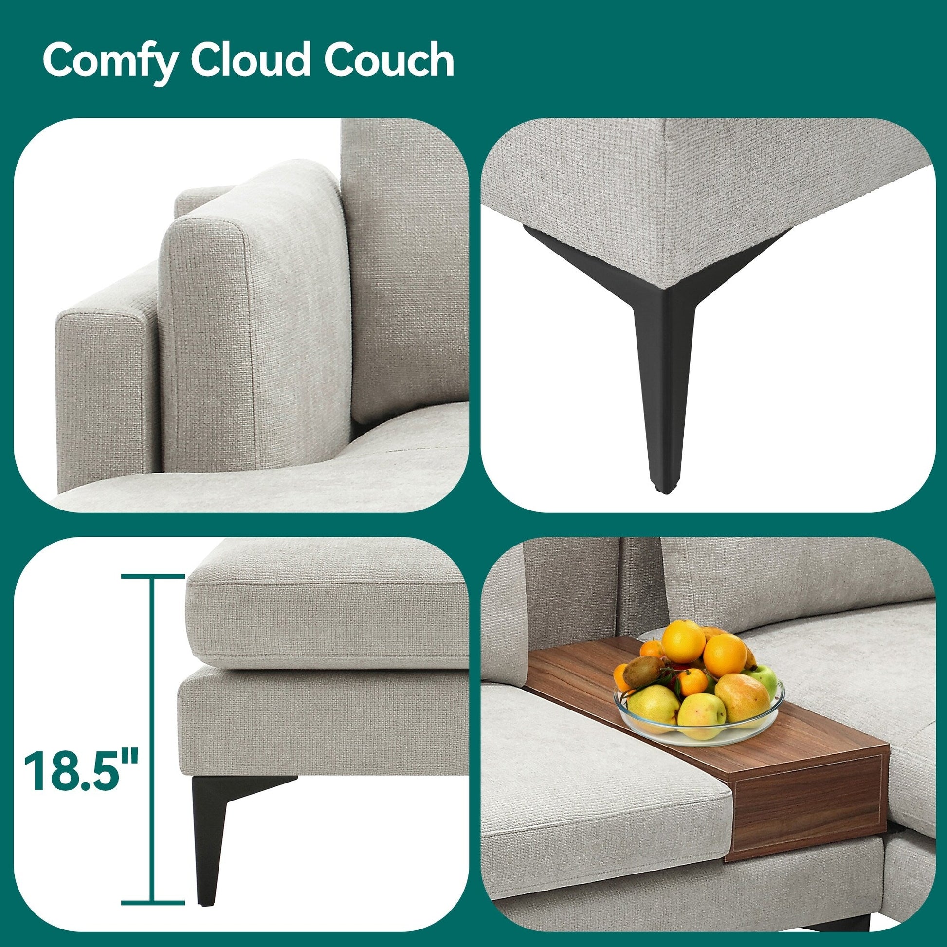 - Élégance contemporaine : Notre canapé modulable incarne le design moderne. Ses lignes épurées et son esthétique minimaliste s'intègrent parfaitement à tous les styles de décoration. Le petit coffre décoratif en bois à côté du canapé ajoute une touche de sophistication et en fait un meuble remarquable. Confectionné en lin de haute qualité, ce canapé offre une sensation de luxe et apporte une touche d'élégance à votre espace de vie.