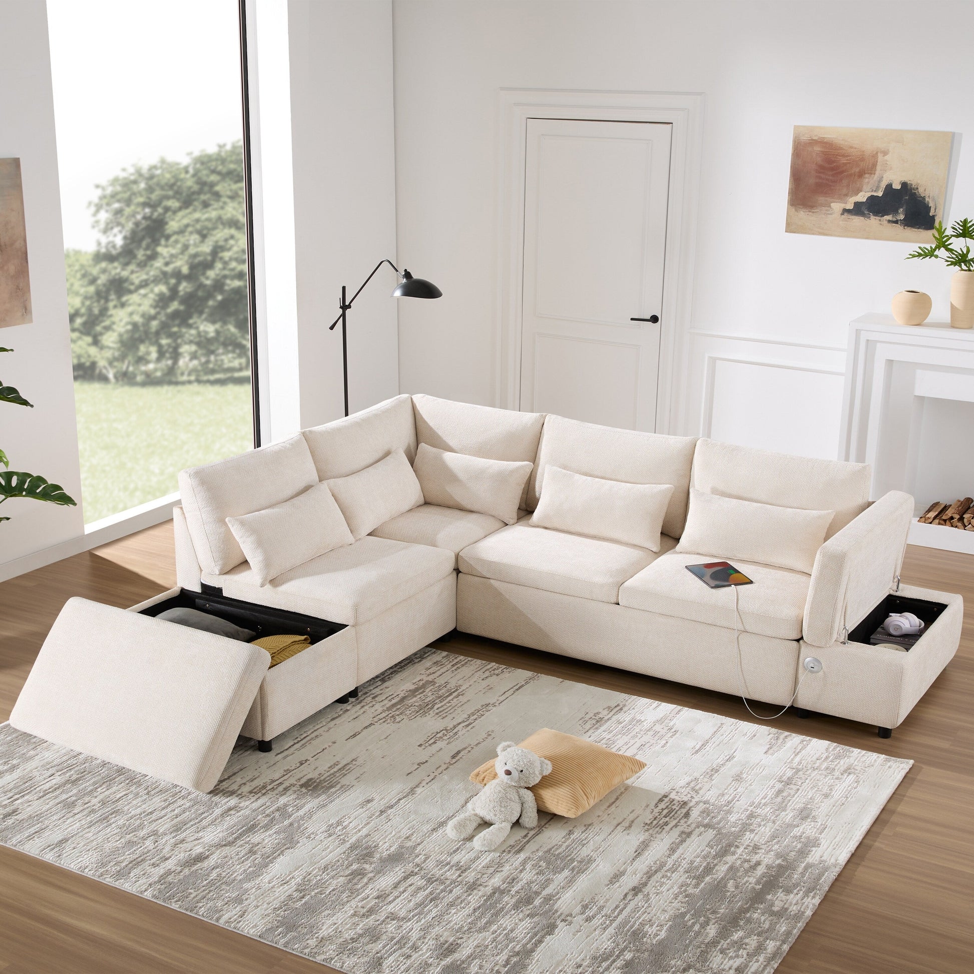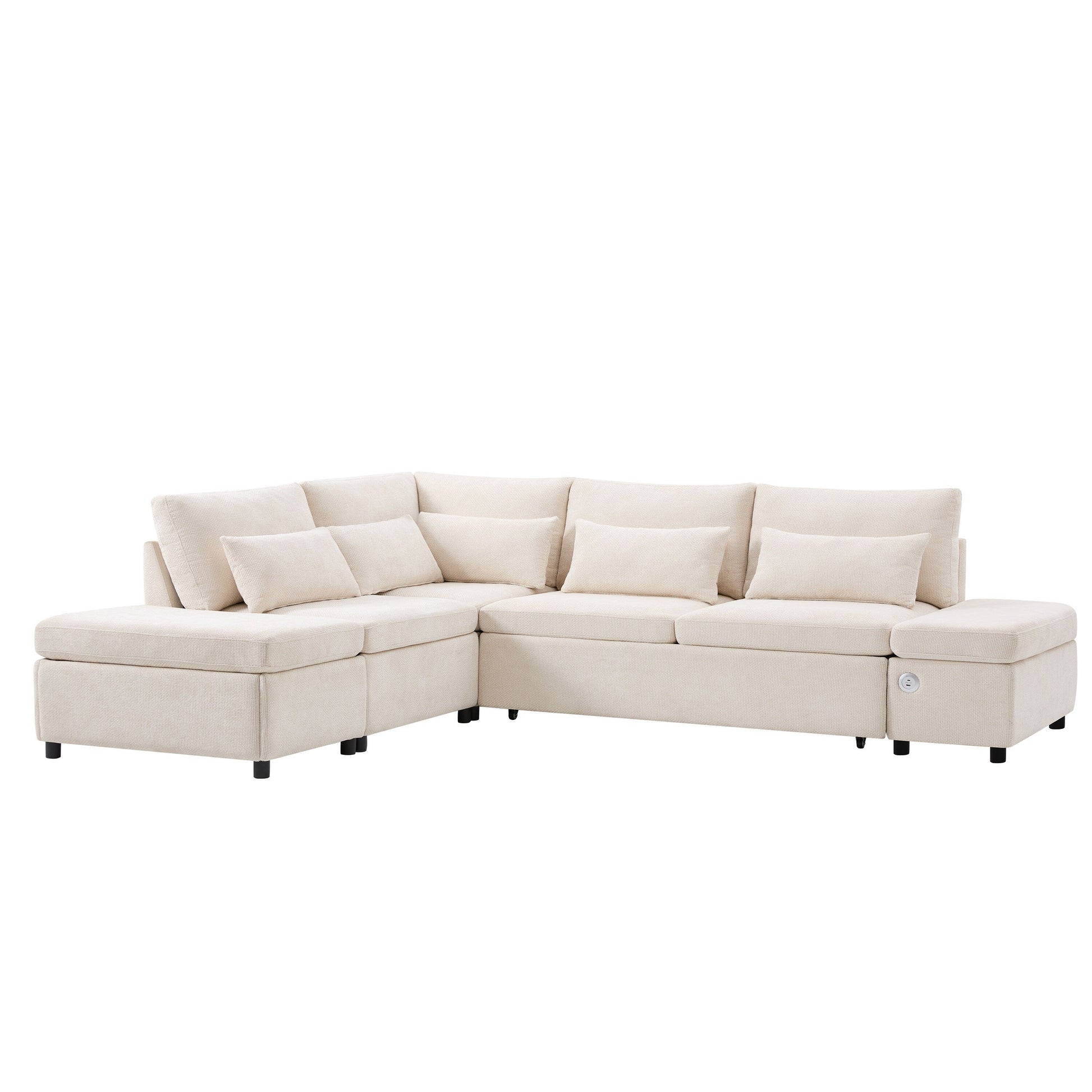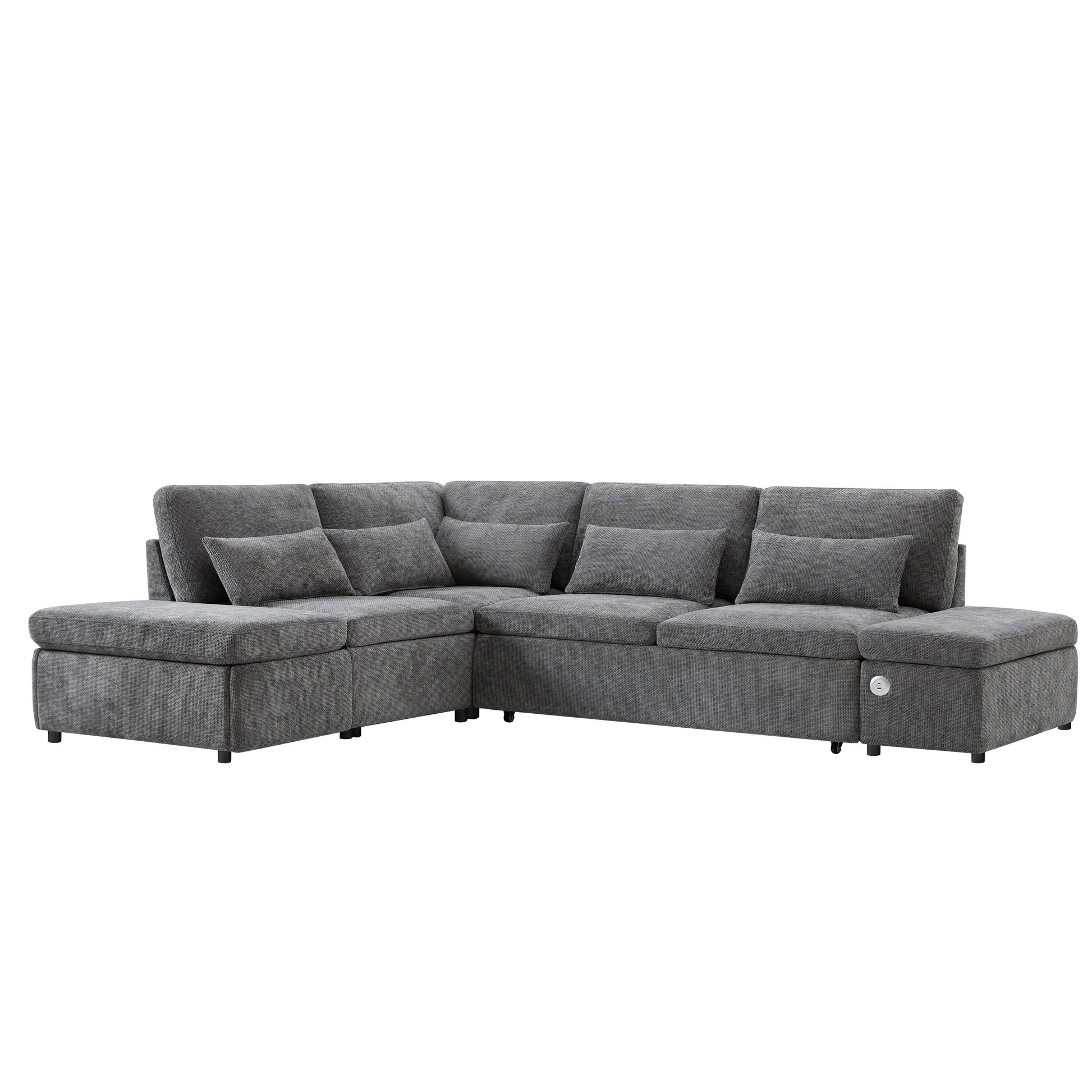 Canapé-lit sectionnel modulaire avec accoudoir de chargement réglable et pouf de rangement pour salon et appartement