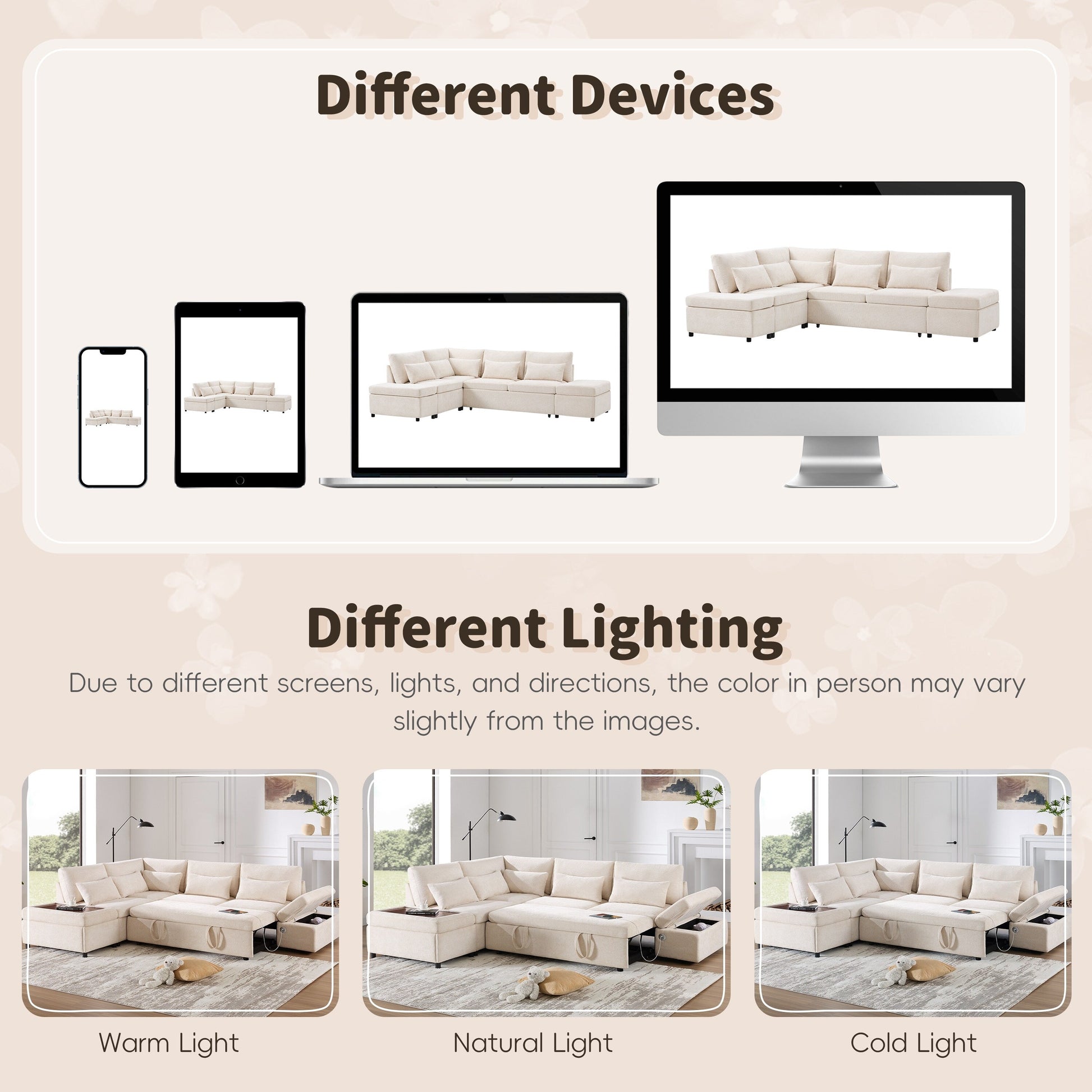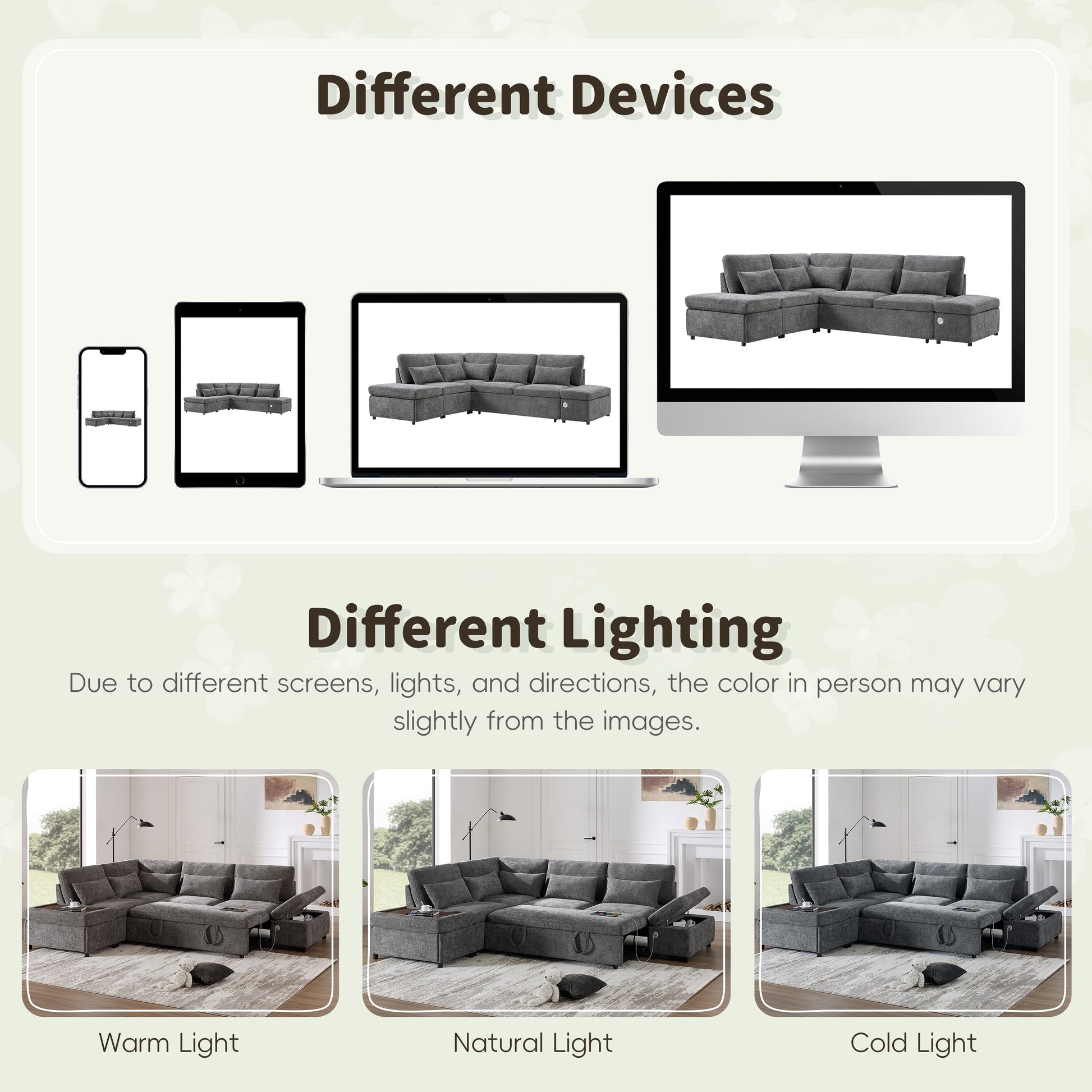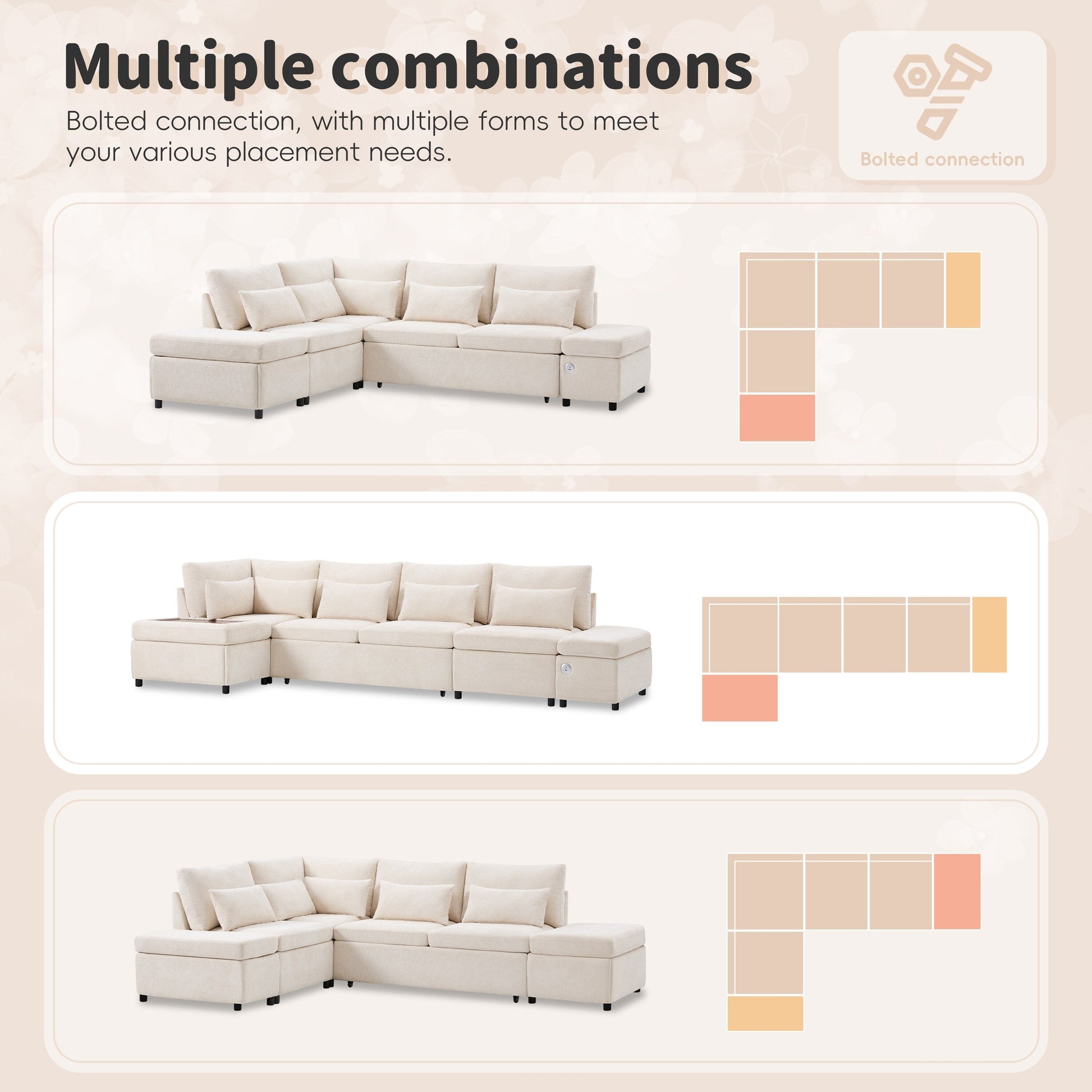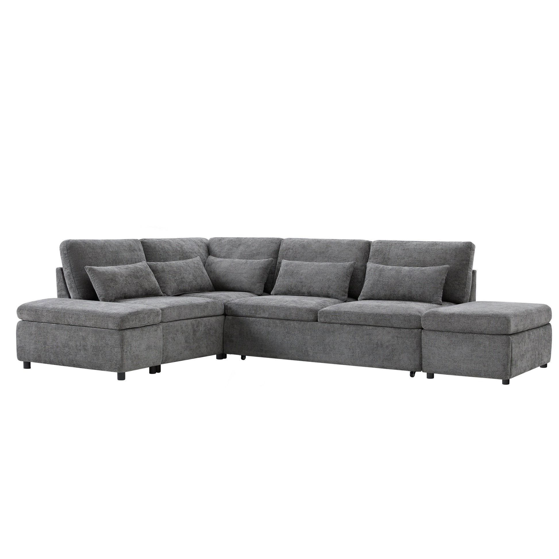 Canapé-lit sectionnel modulaire avec accoudoir de chargement réglable et pouf de rangement pour salon et appartement