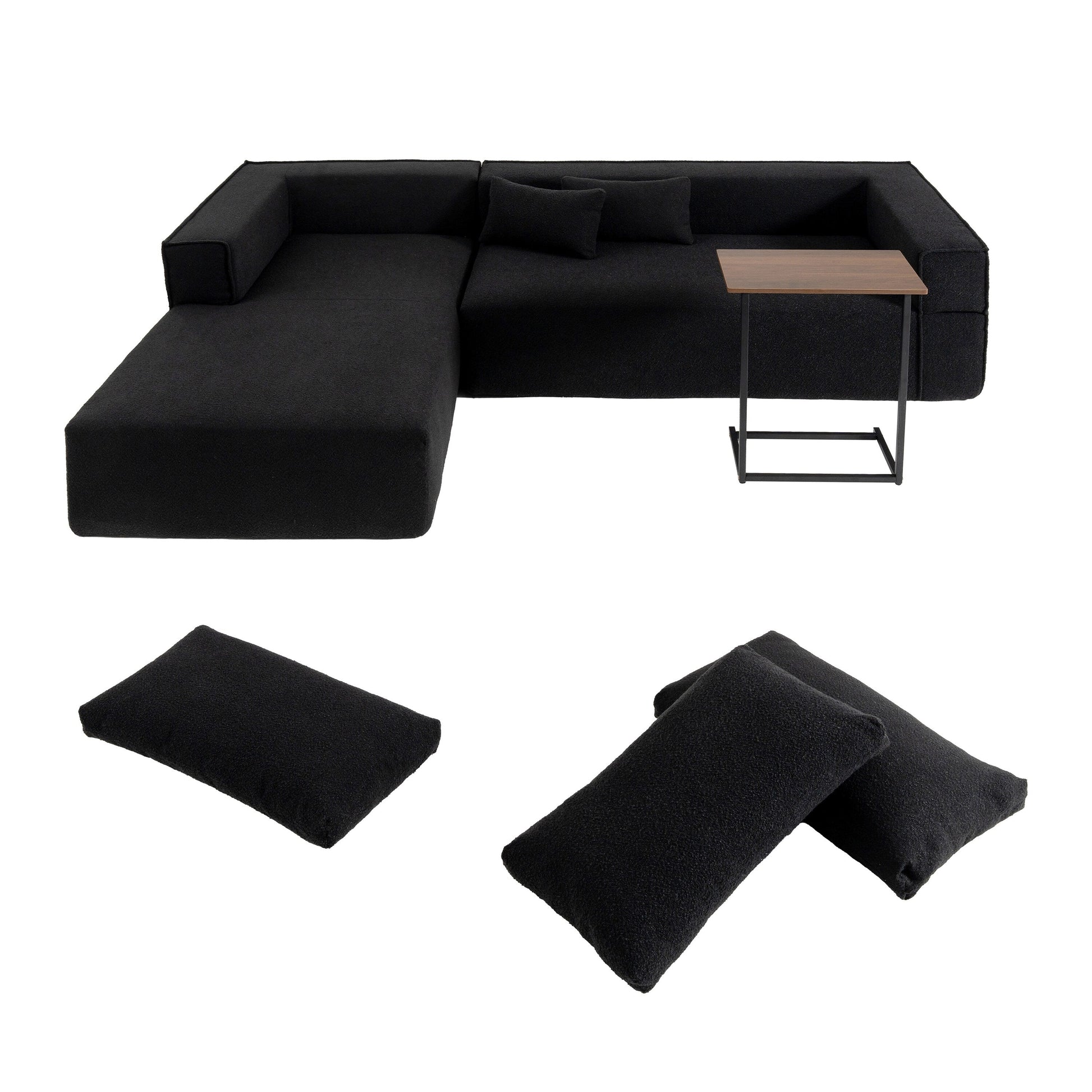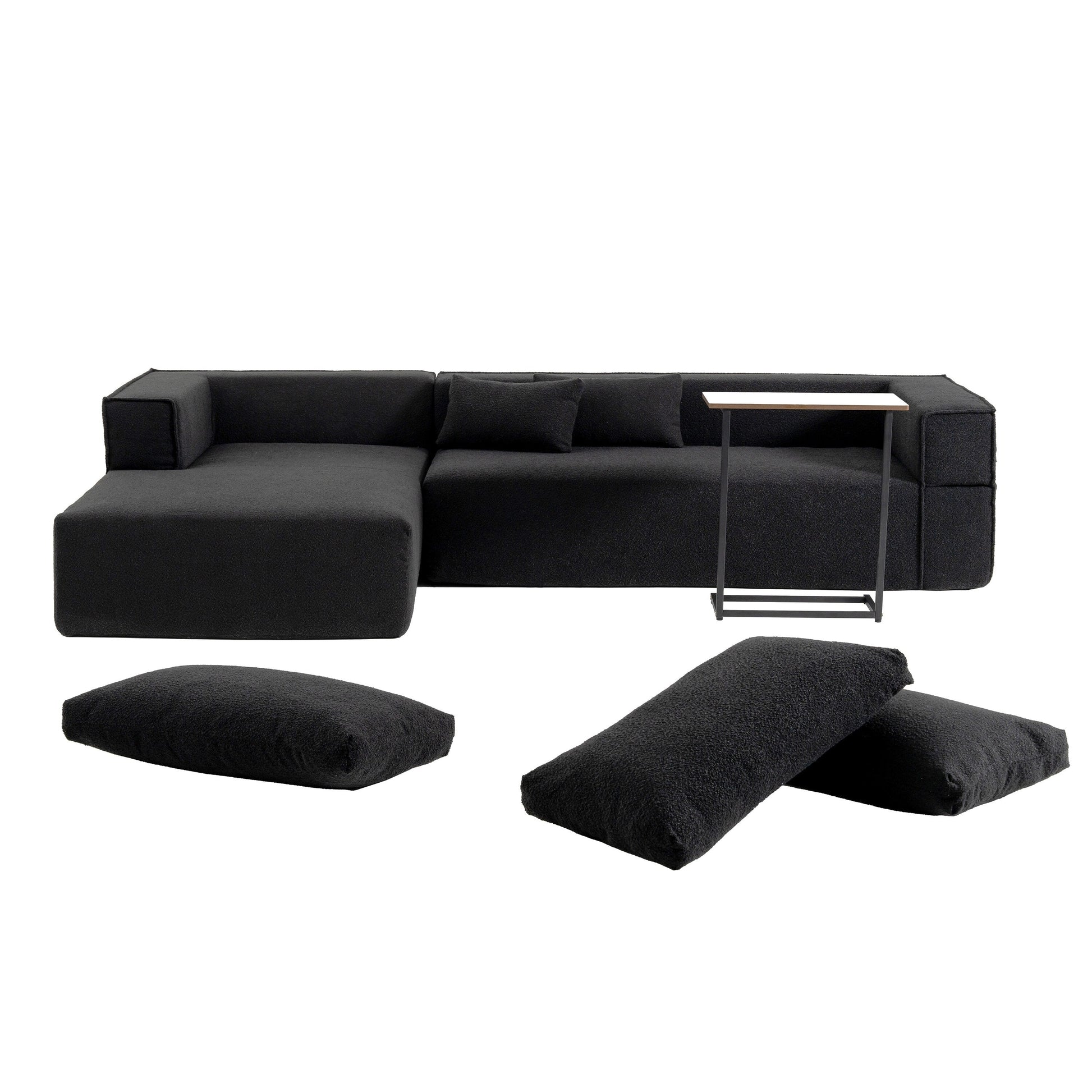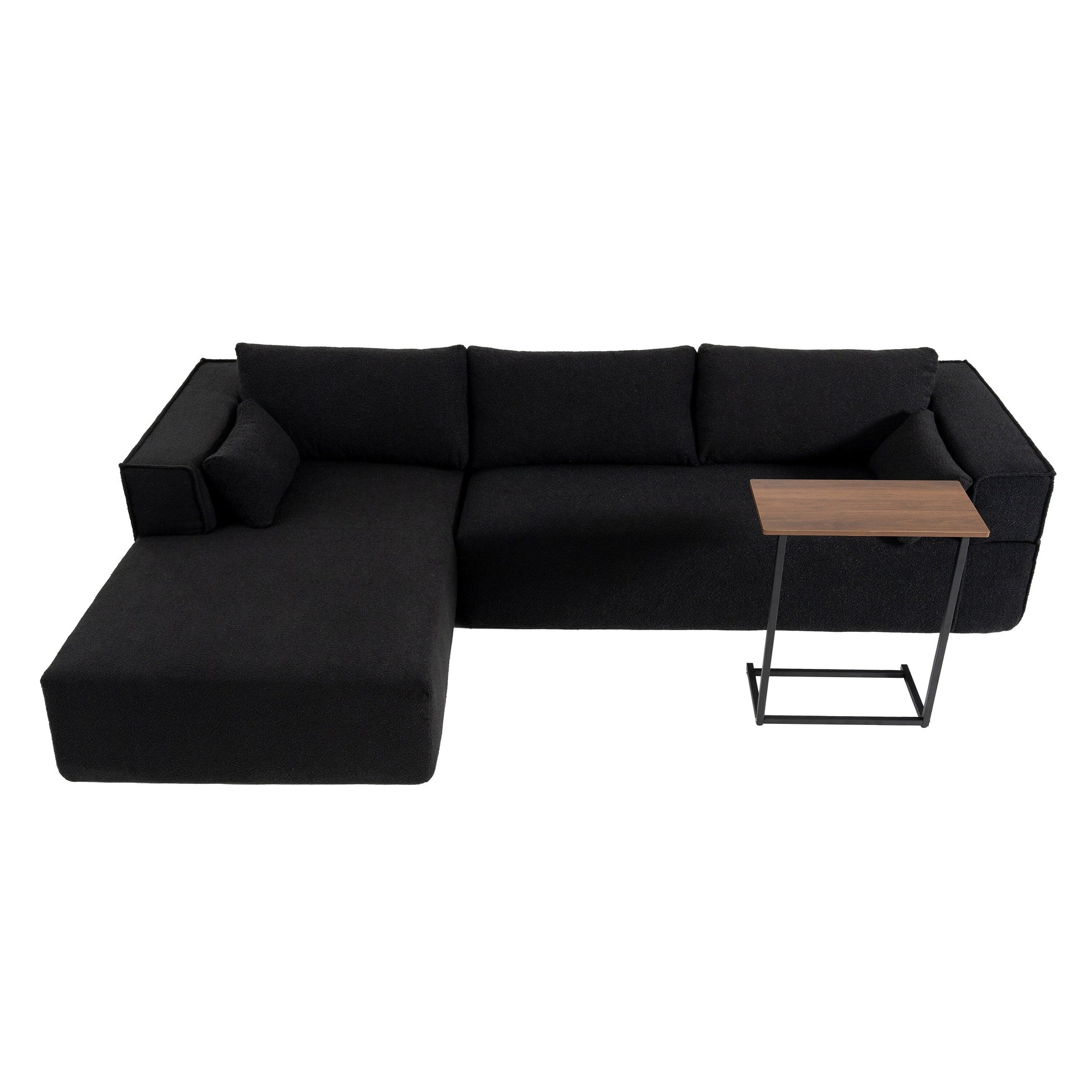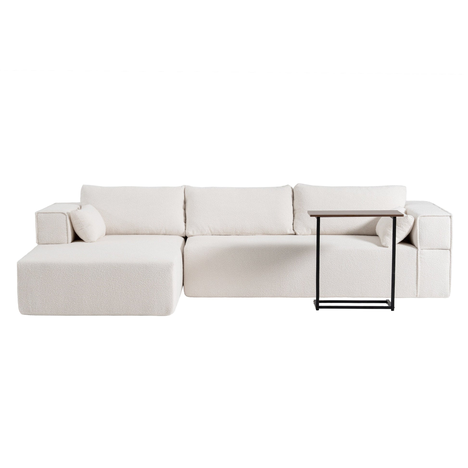 Canapé sectionnel modulaire avec table d'appoint gratuite, assise large, entièrement compressé, tissu bouclé infroissable avec méridienne