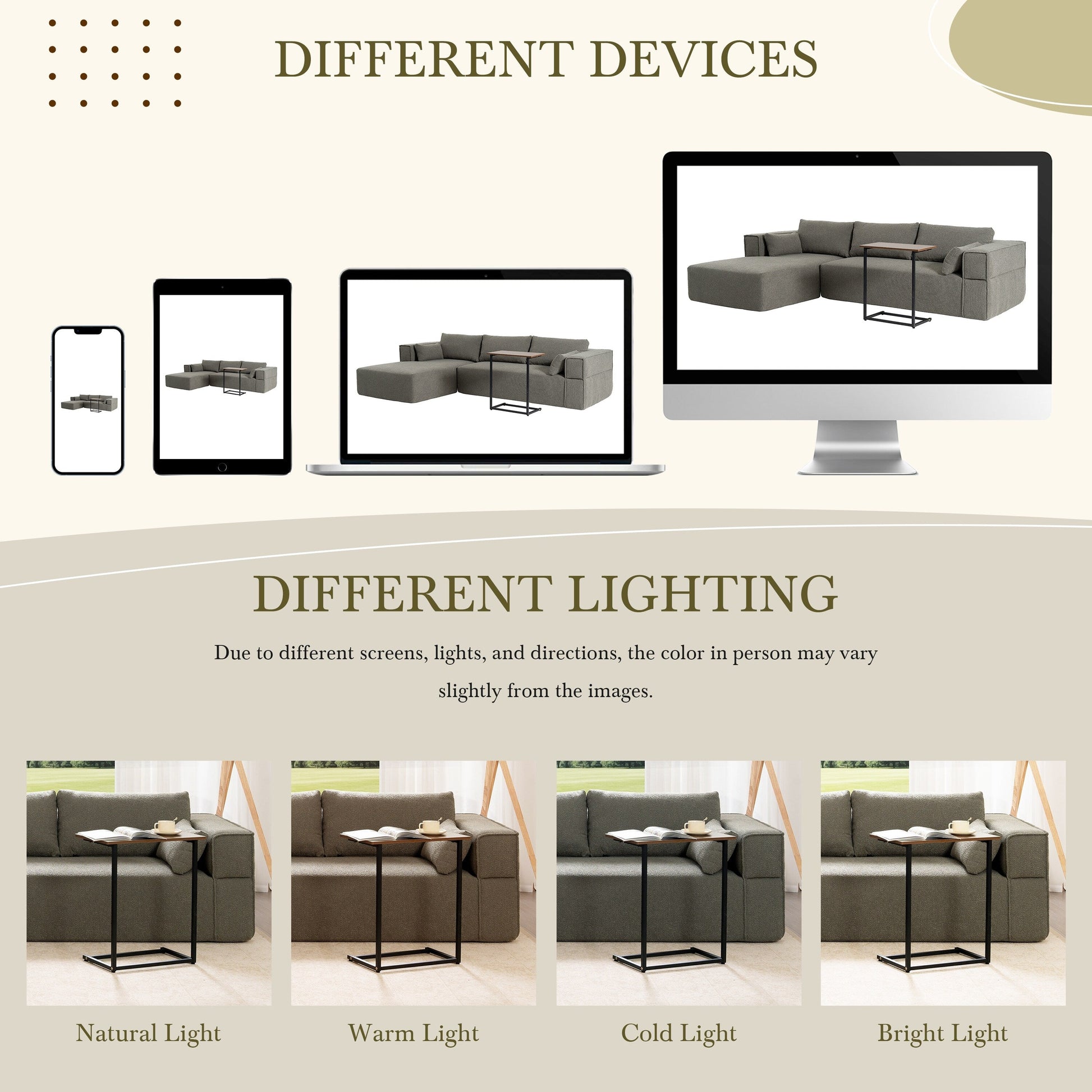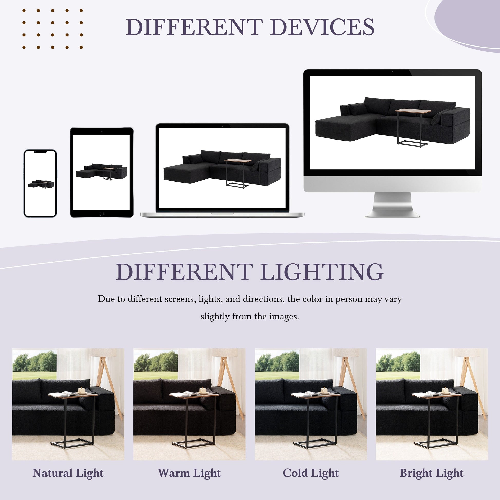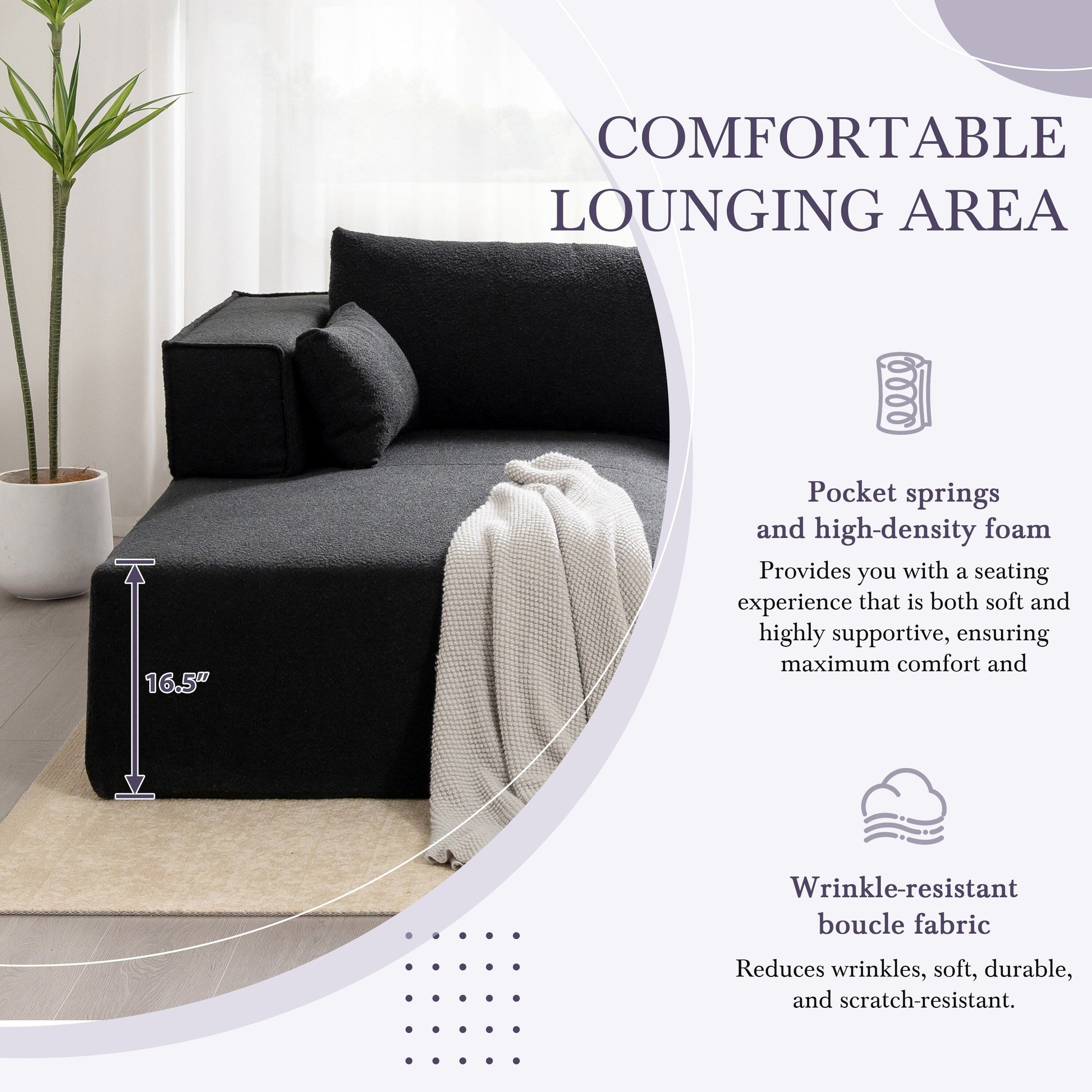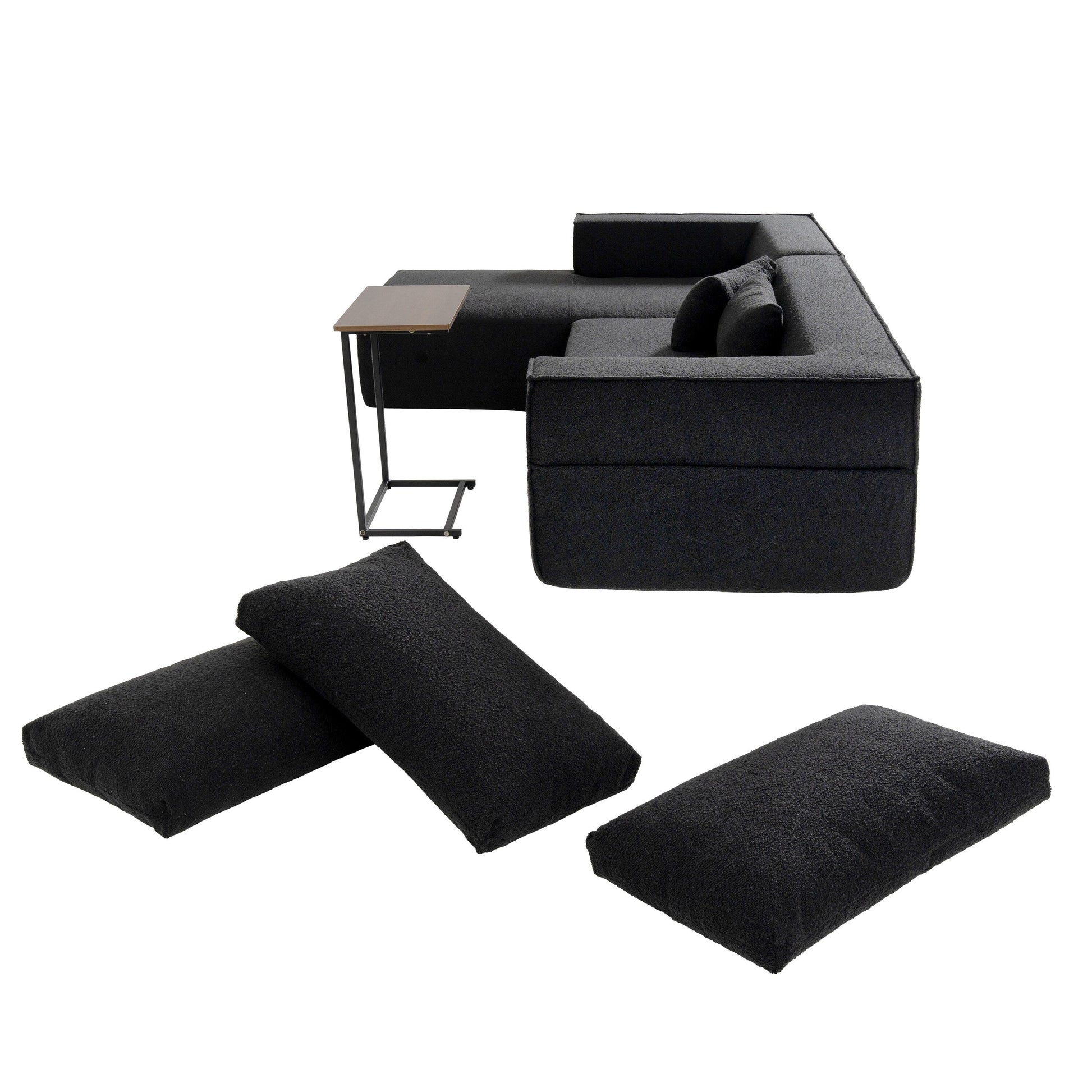 Canapé sectionnel modulaire avec table d'appoint gratuite, assise large, entièrement compressé, tissu bouclé infroissable avec méridienne
