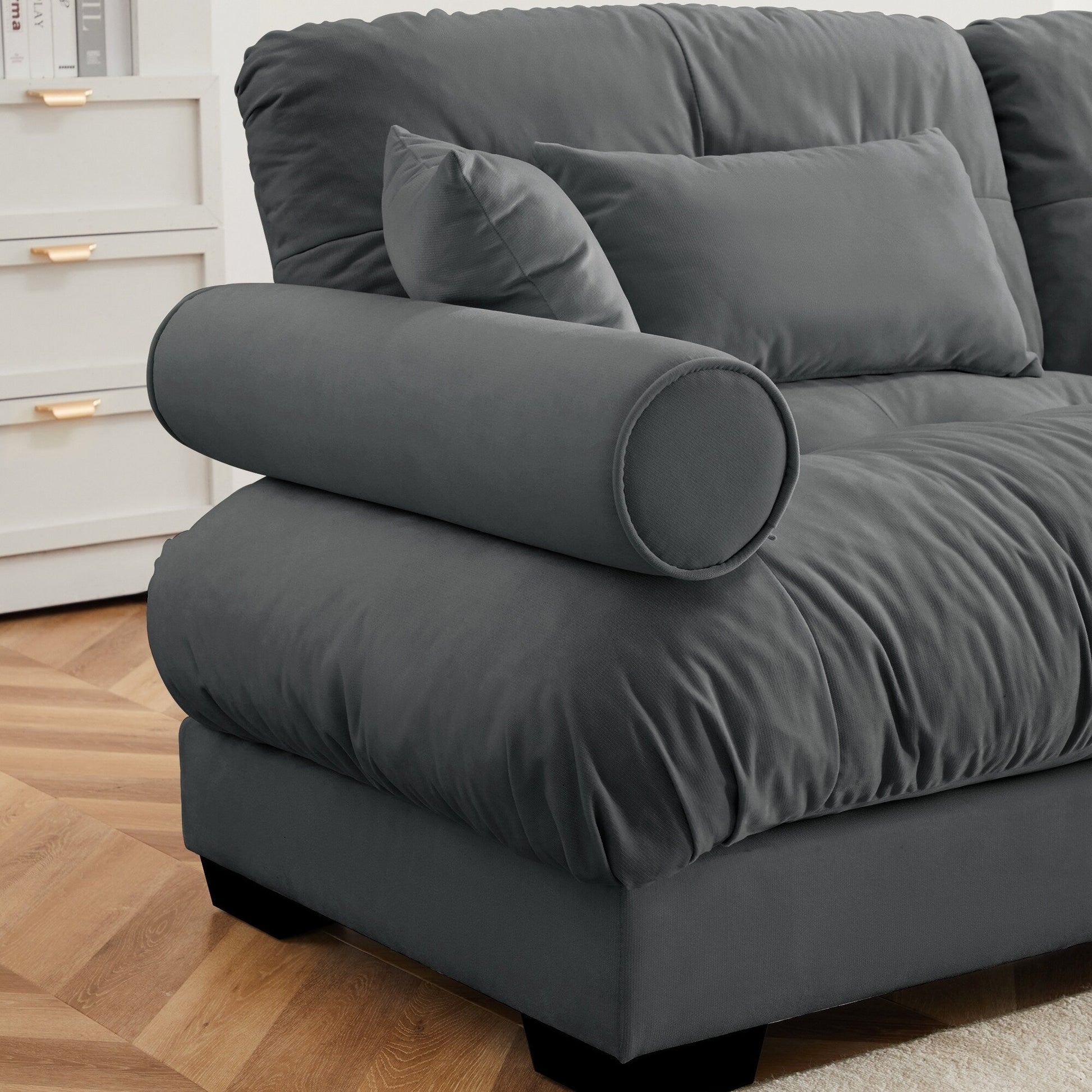 Canapé modulaire sectionnel en velours, siège profond, canapé nuage en forme de L avec pouf et accoudoirs renforcés pour le salon
