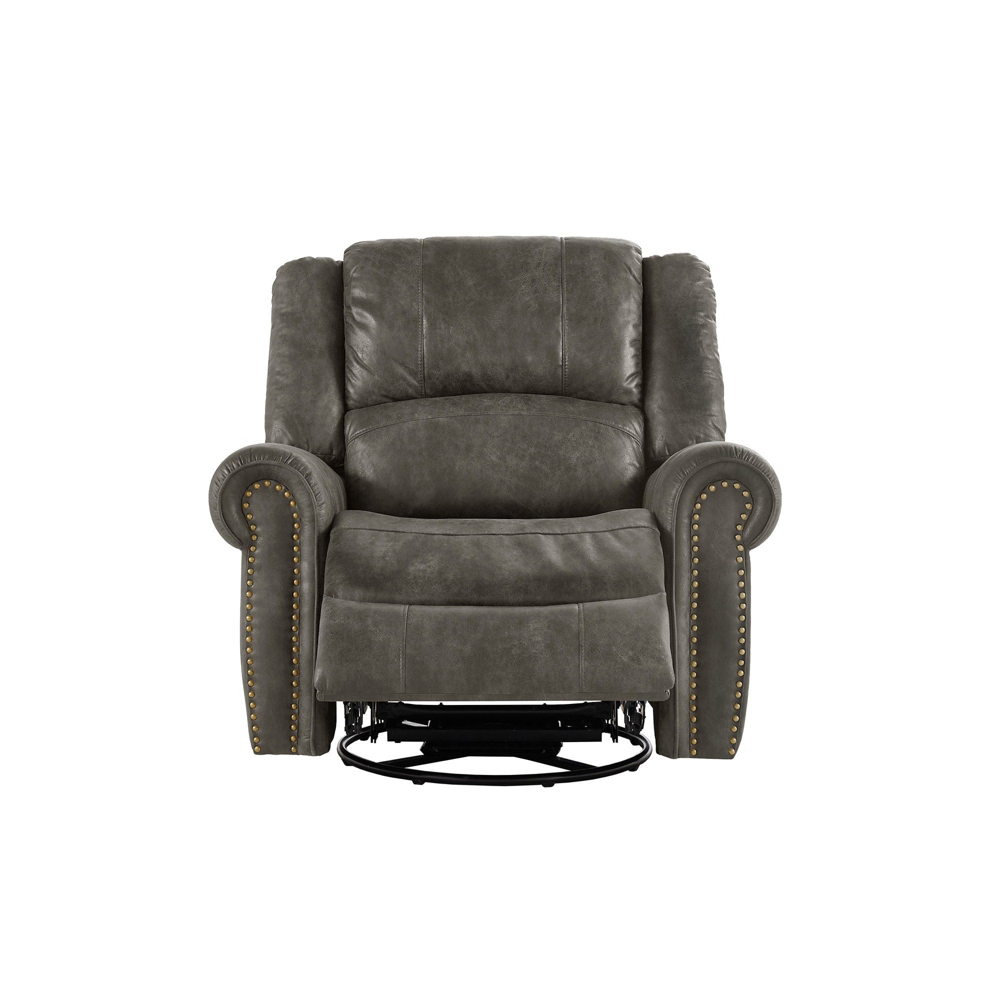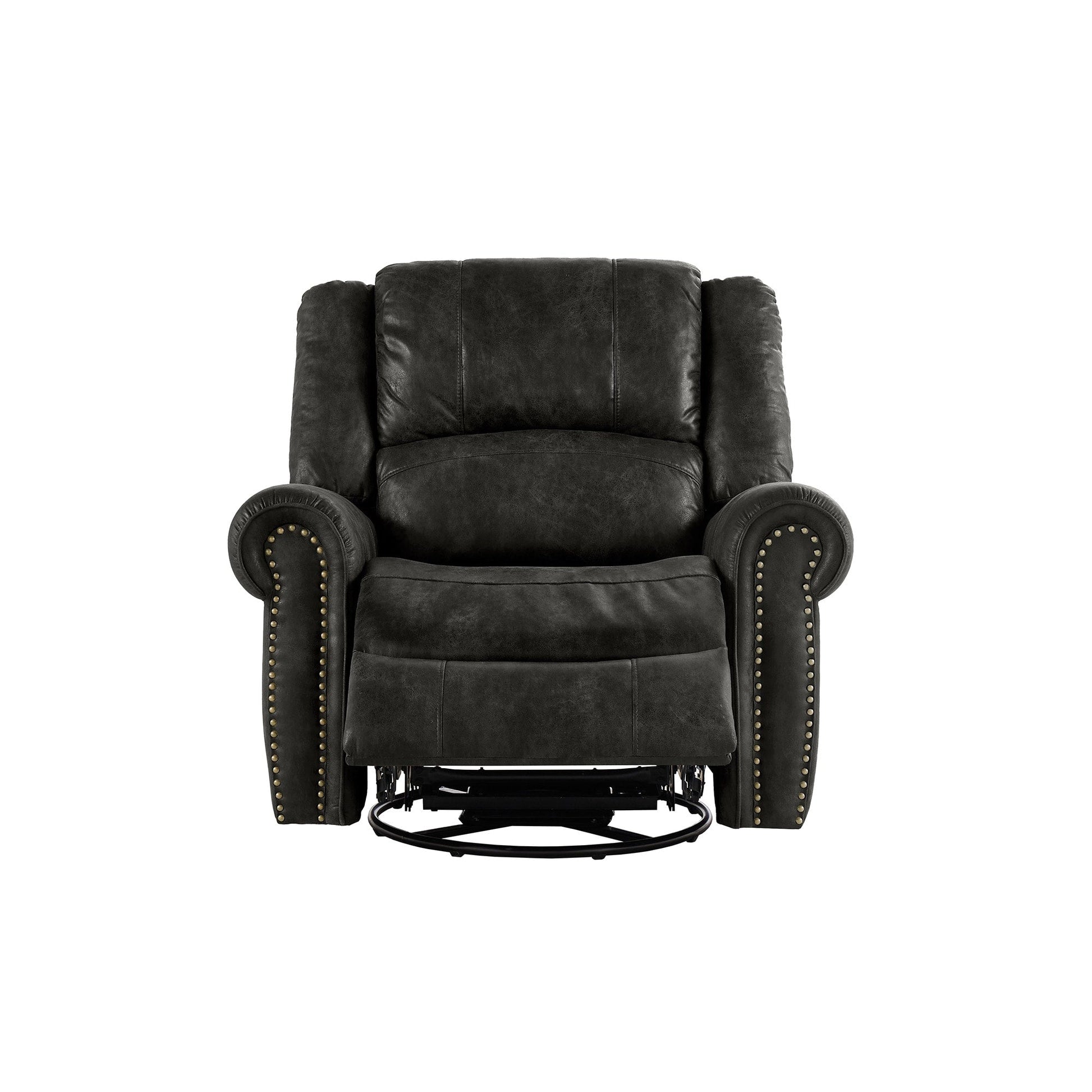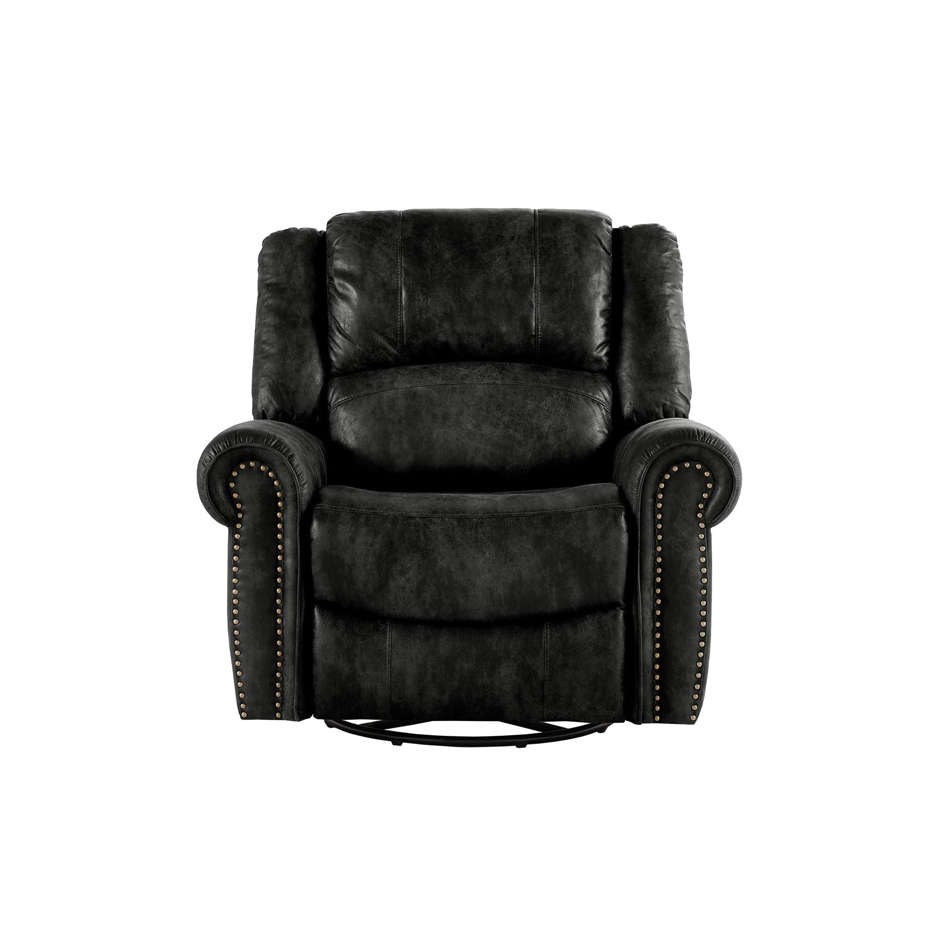 Le fauteuil inclinable pivotant et berçant en microfibre polie allie design intemporel et confort au quotidien. Revêtu de microfibre polie et d'un rembourrage moelleux en mousse polyuréthane, ce fauteuil offre un soutien luxueux et une grande durabilité. Son piètement pivotant robuste en fer noir et son mouvement de glissement fluide garantissent une détente optimale, tandis que son montage facile en deux étapes vous permet de l'utiliser en un clin d'œil. Les finitions cloutées et les accoudoirs classiques à bords roulés ajoutent une touche d'élégance à tout espace.
