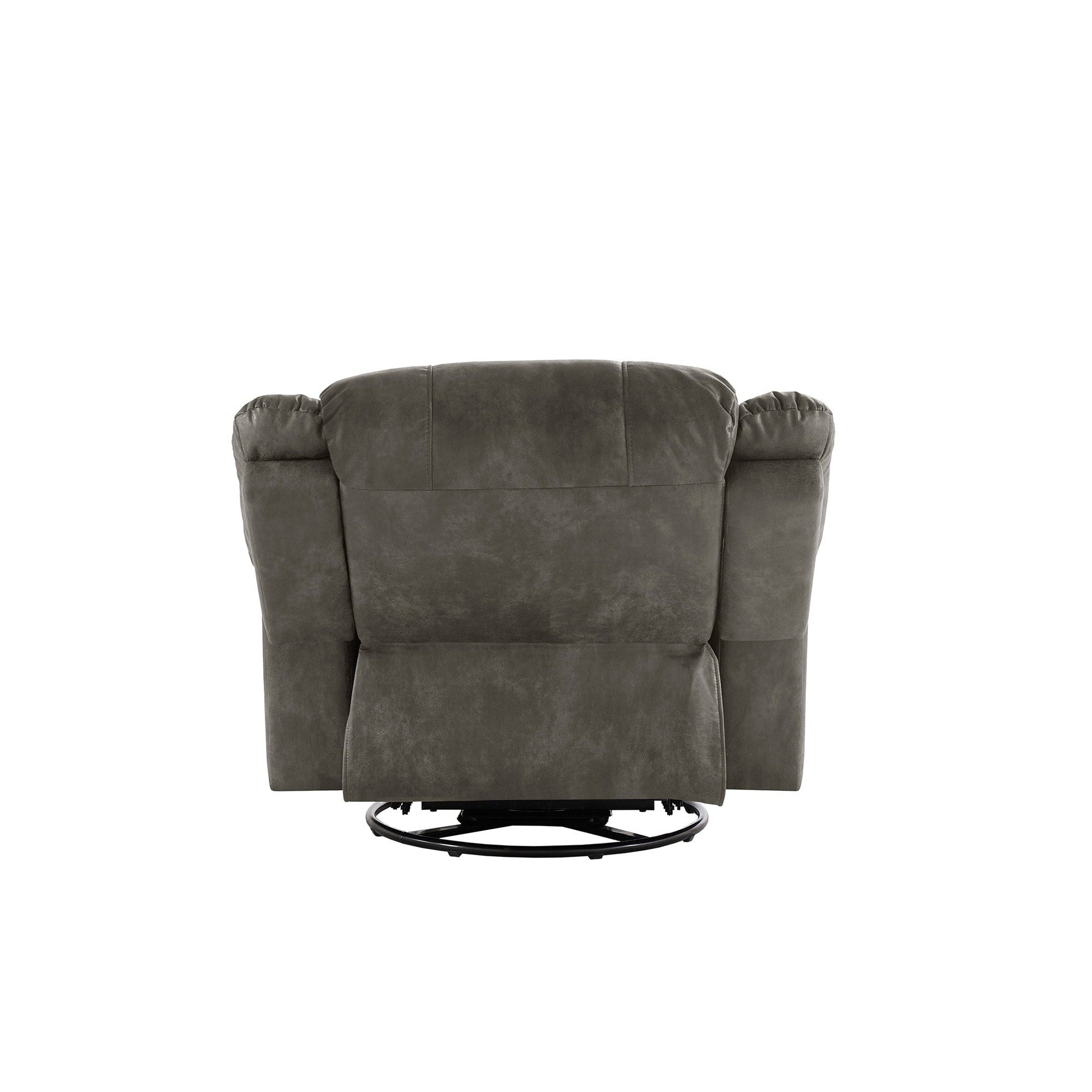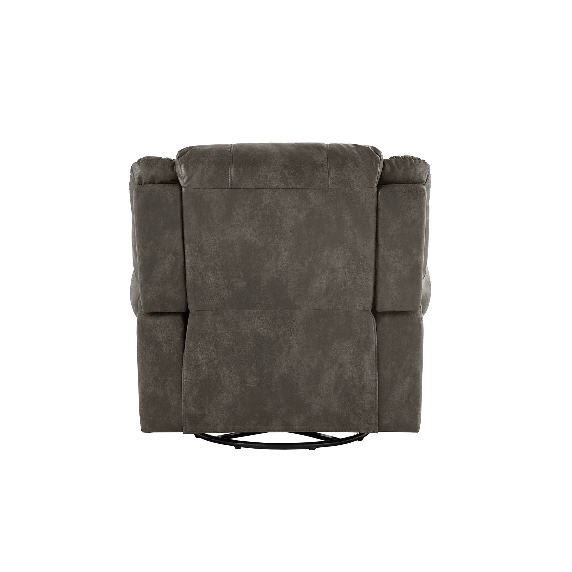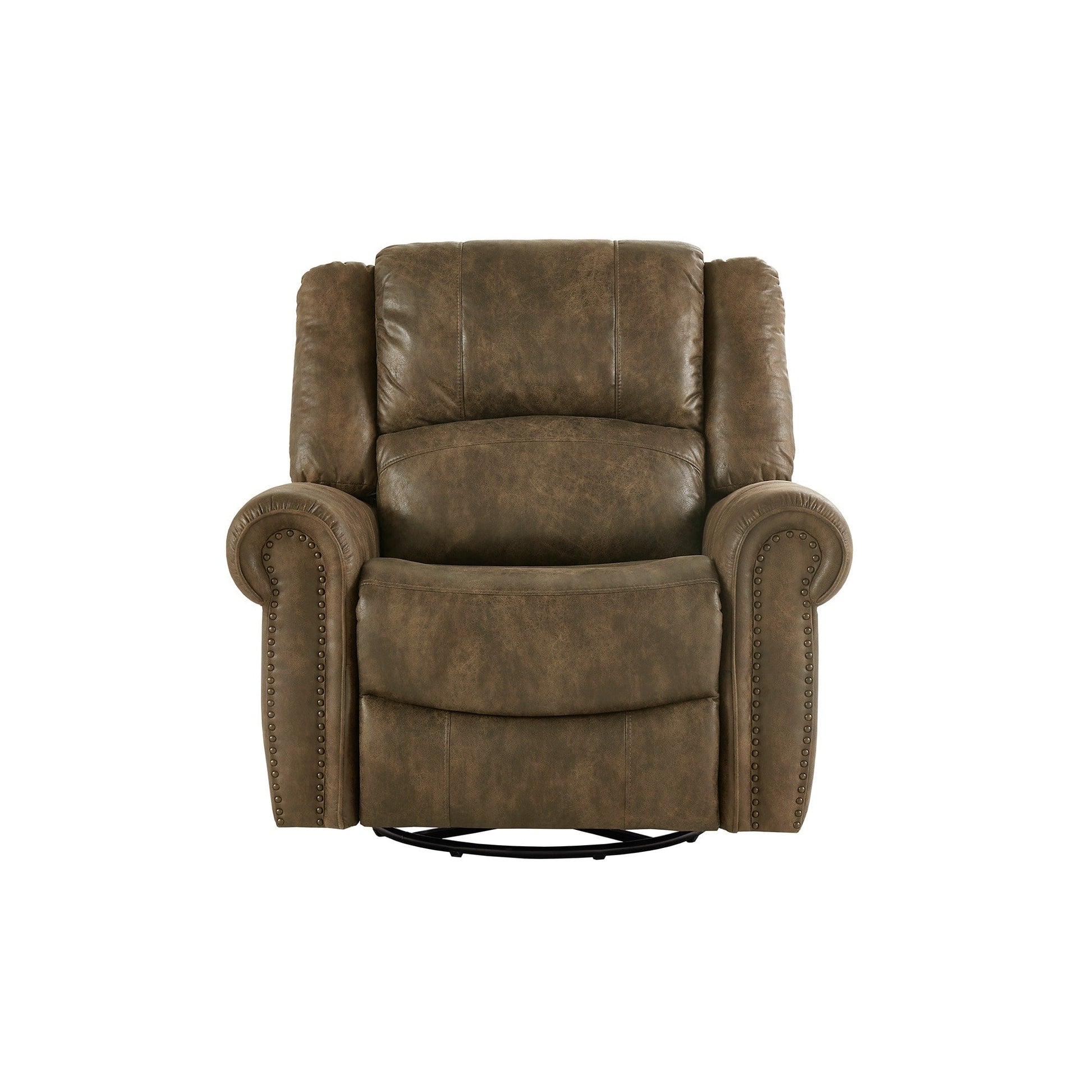 Le fauteuil inclinable pivotant et berçant en microfibre polie allie design intemporel et confort au quotidien. Revêtu de microfibre polie et d'un rembourrage moelleux en mousse polyuréthane, ce fauteuil offre un soutien luxueux et une grande durabilité. Son piètement pivotant robuste en fer noir et son mouvement de glissement fluide garantissent une détente optimale, tandis que son montage facile en deux étapes vous permet de l'utiliser en un clin d'œil. Les finitions cloutées et les accoudoirs classiques à bords roulés ajoutent une touche d'élégance à tout espace.