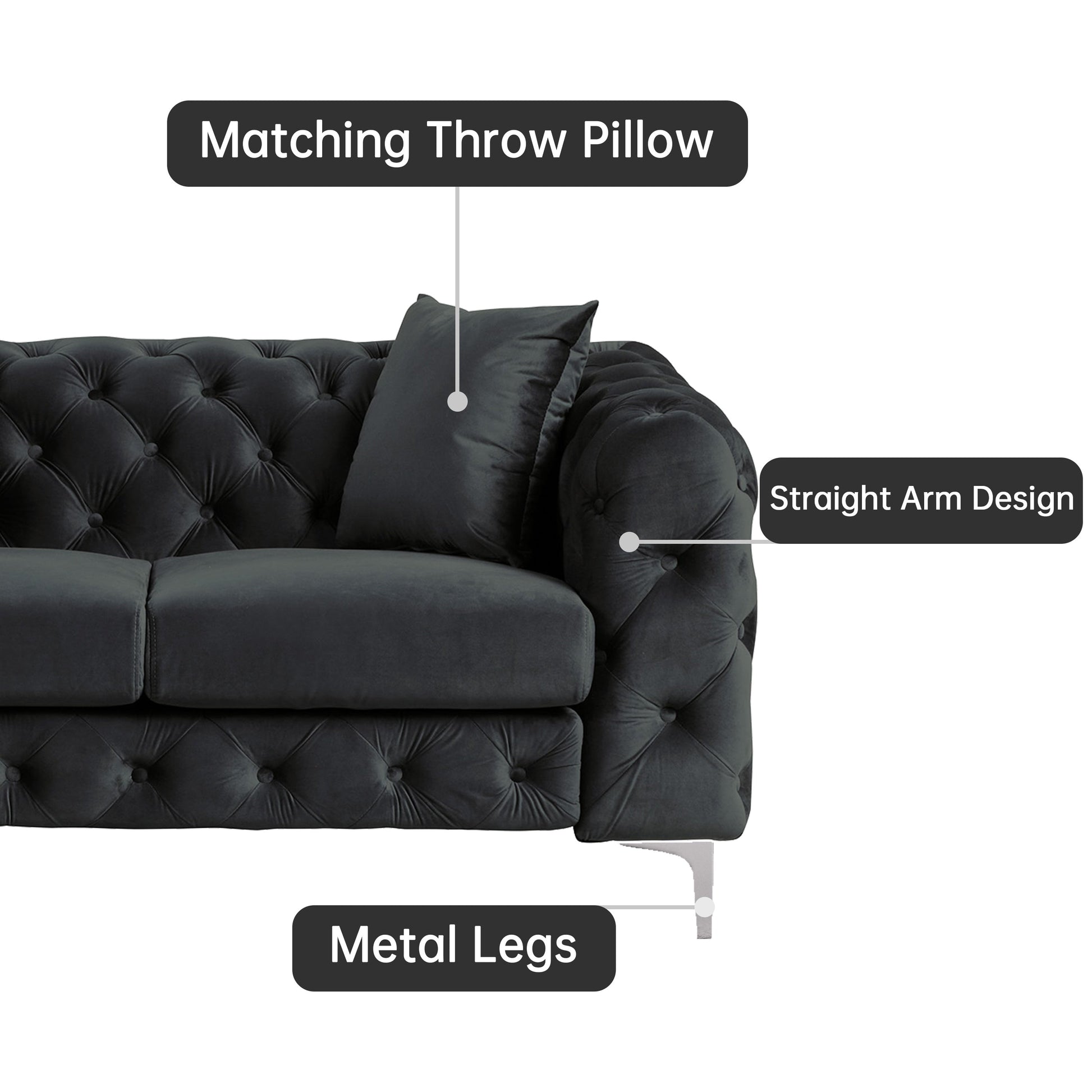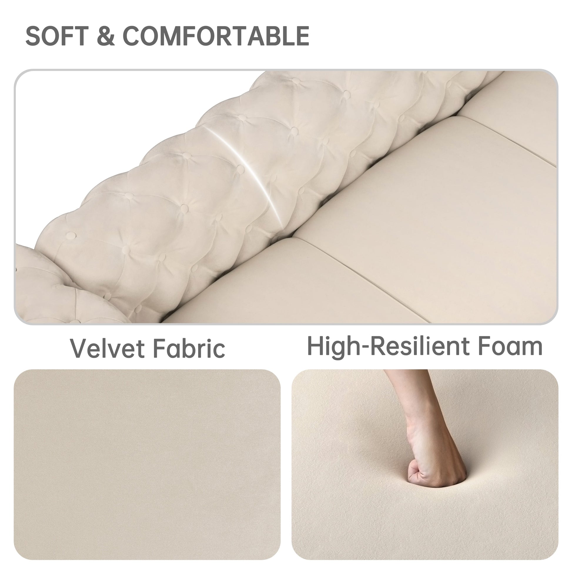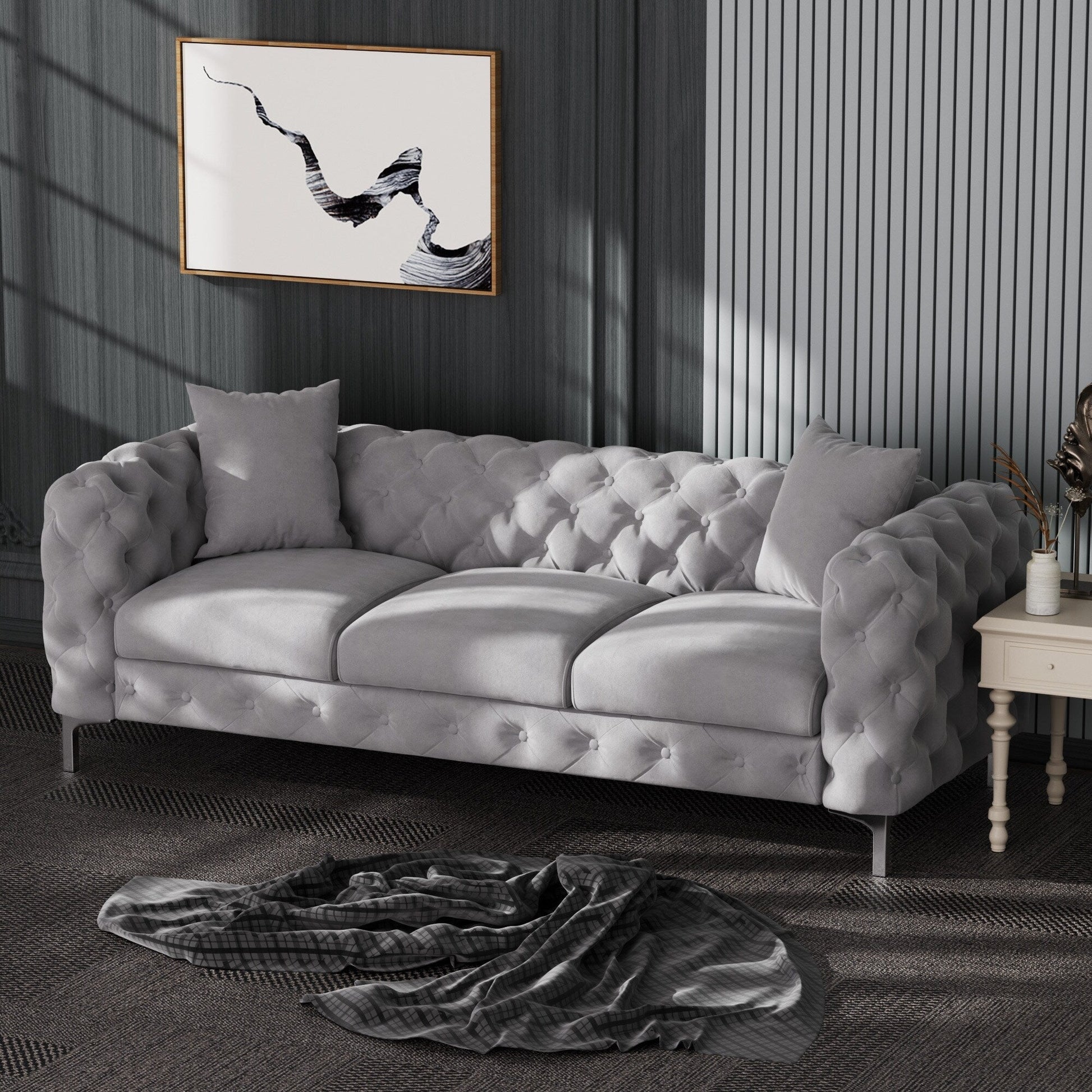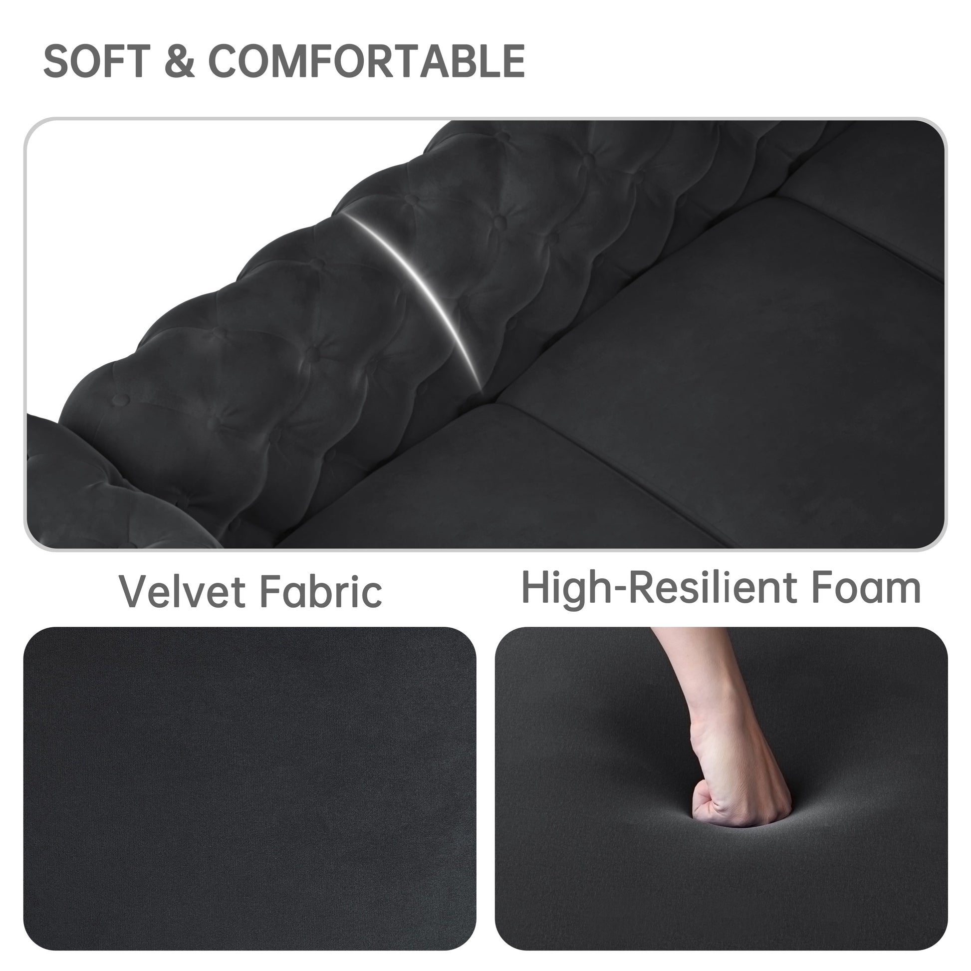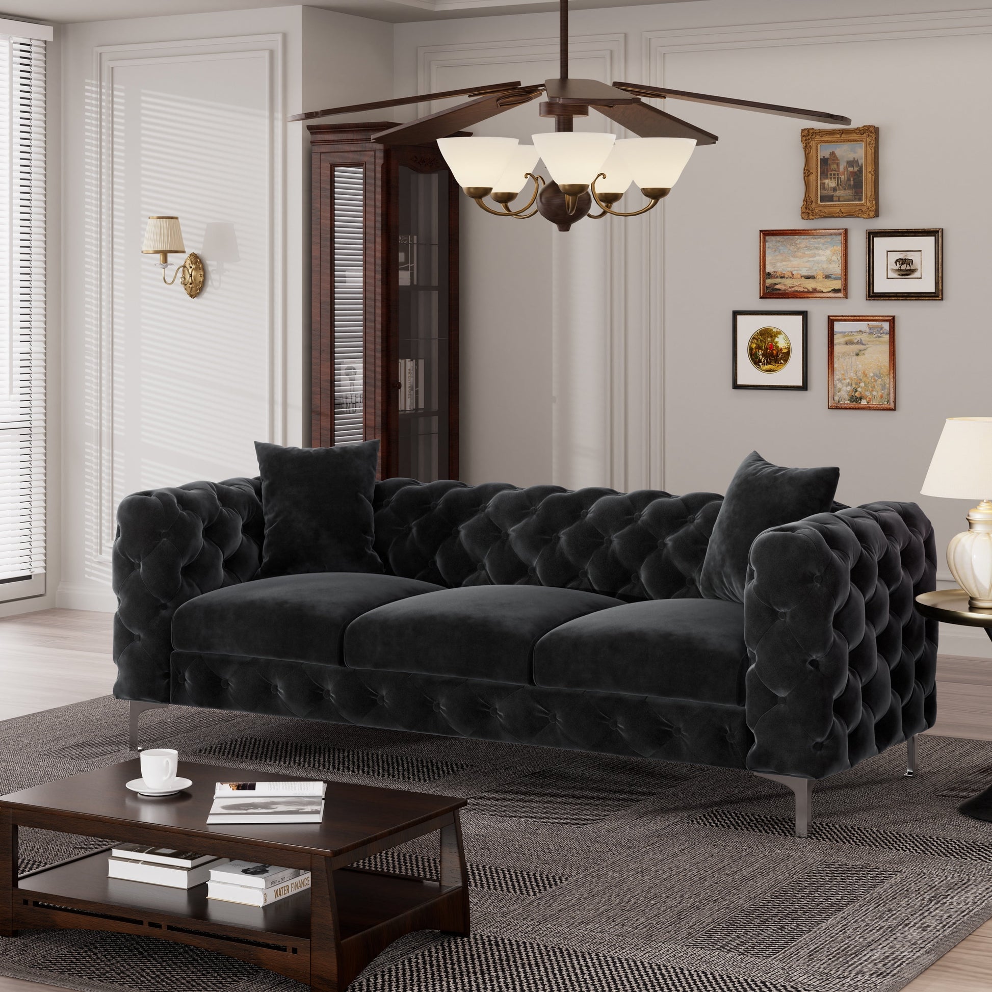 Canapé moderne en velours Morden Fort avec capitonnage à boutons, cadre en bois massif et pieds en fer