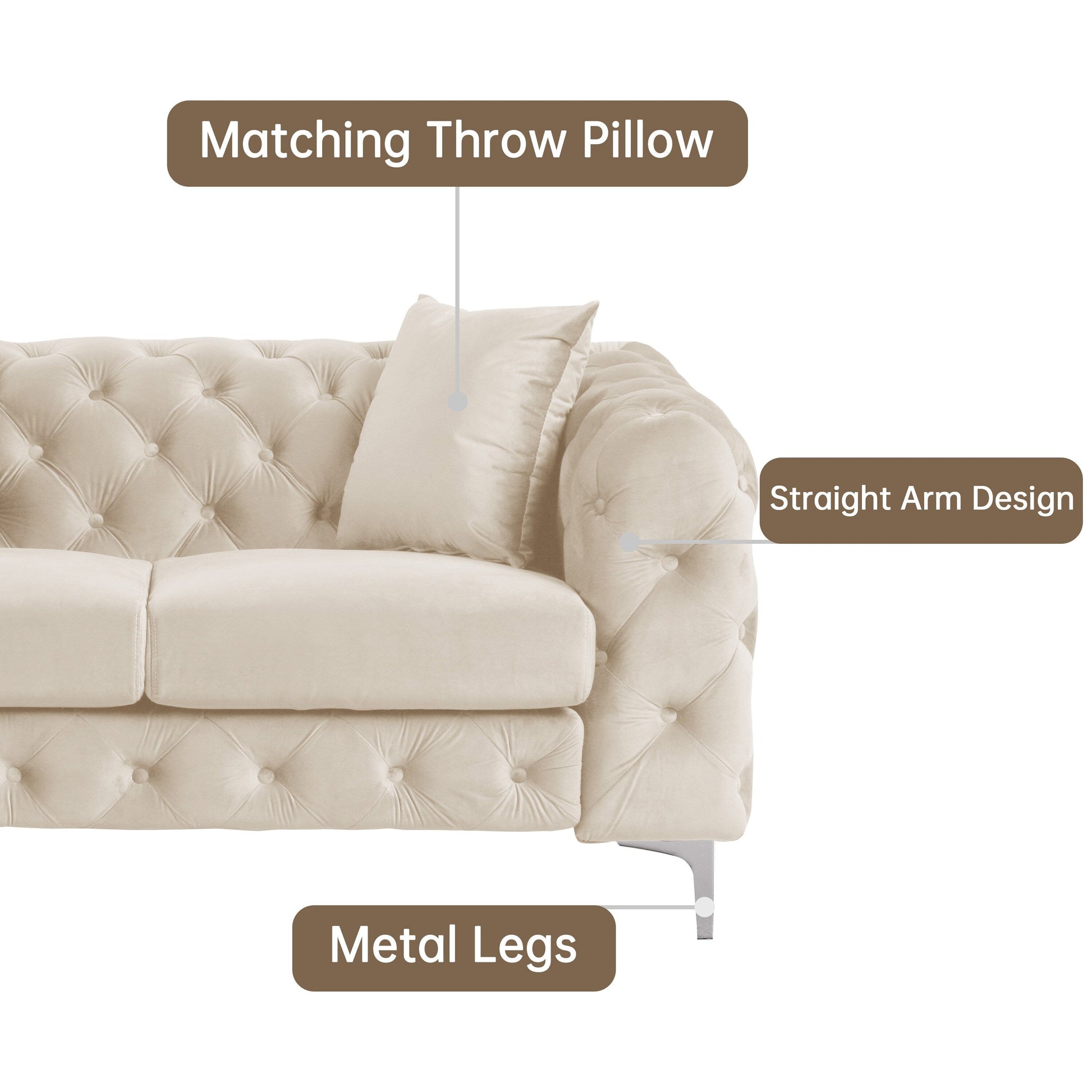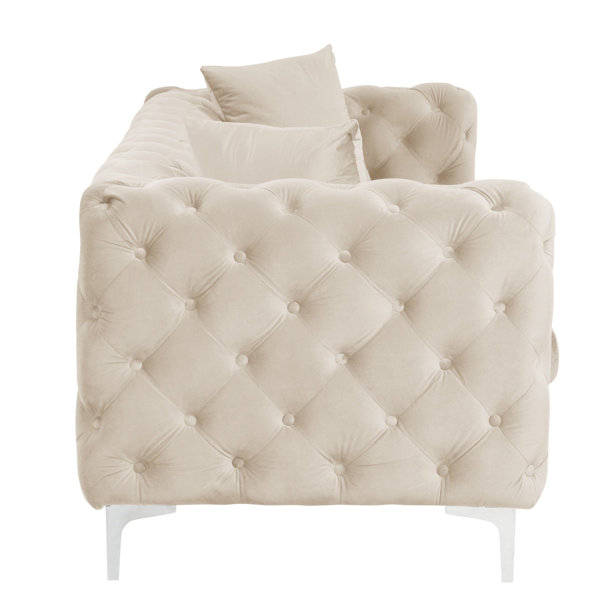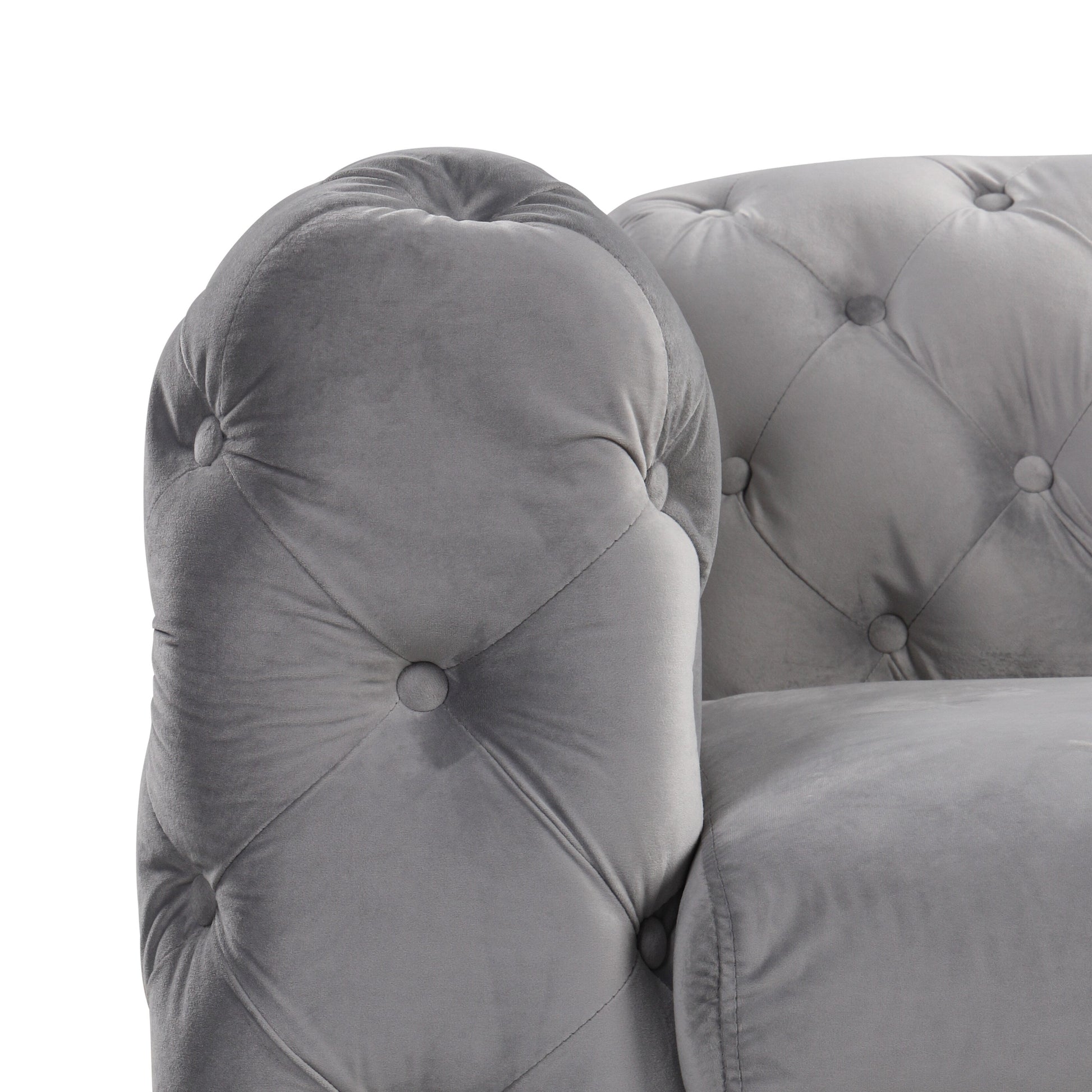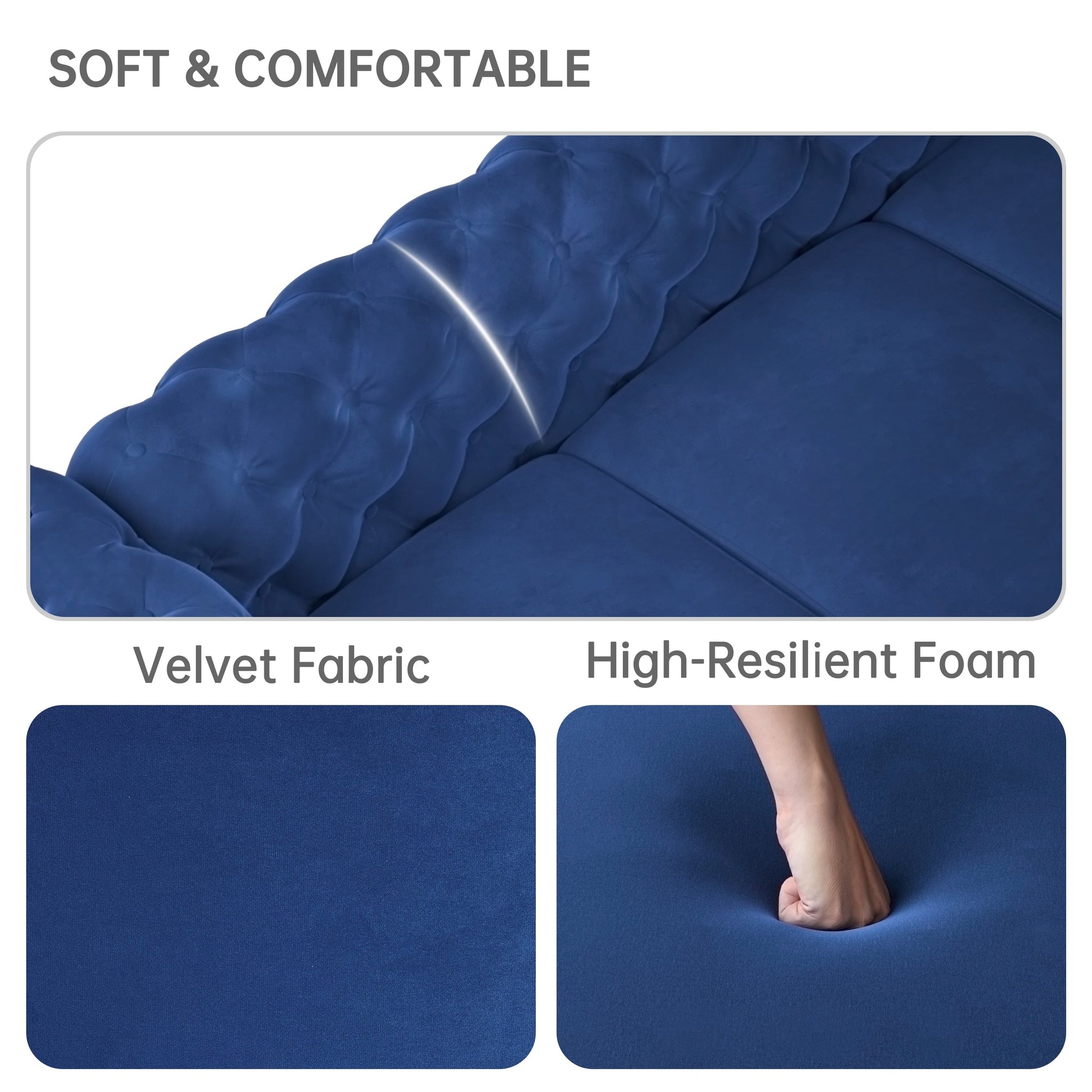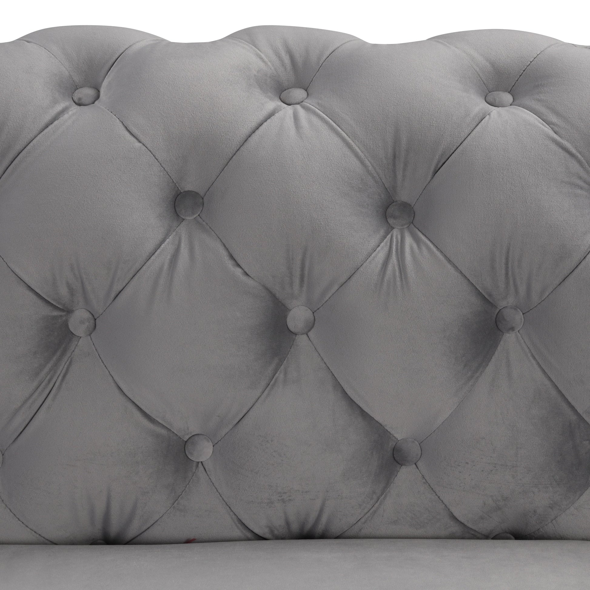Canapé moderne en velours Morden Fort avec capitonnage à boutons, cadre en bois massif et pieds en fer