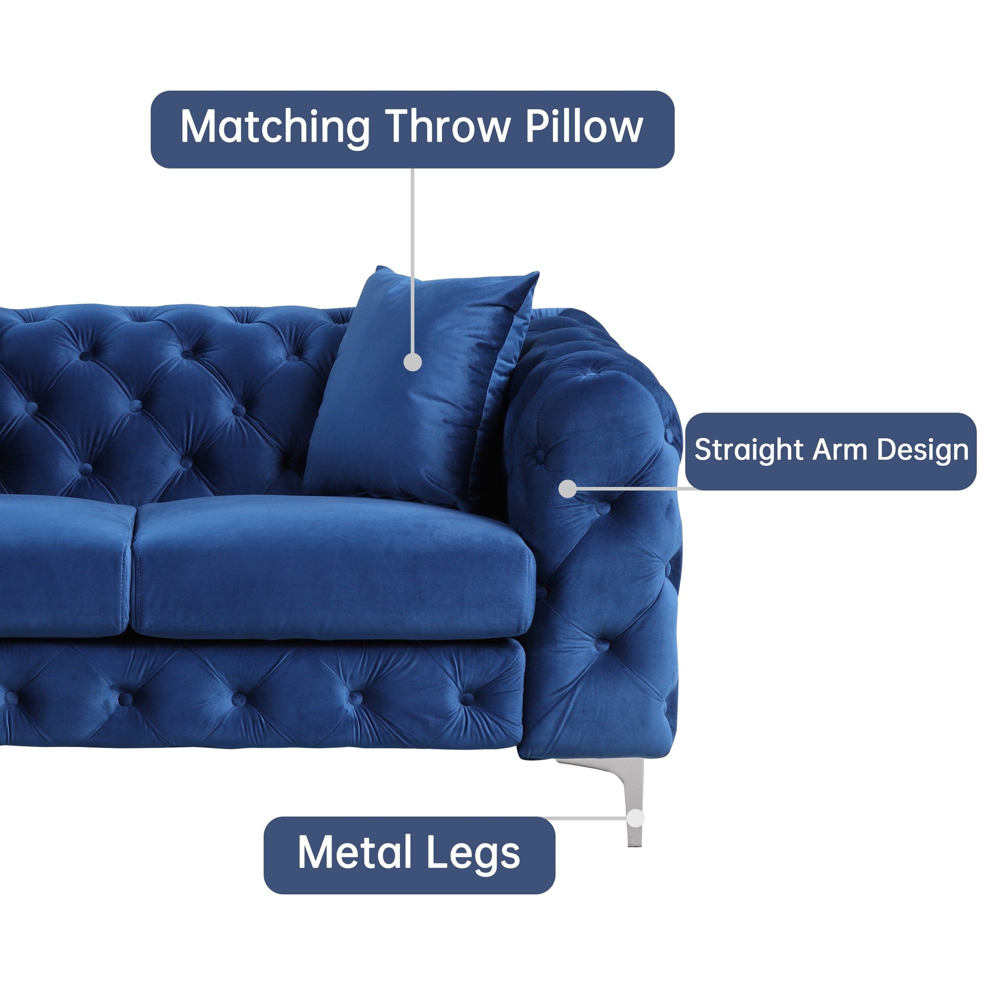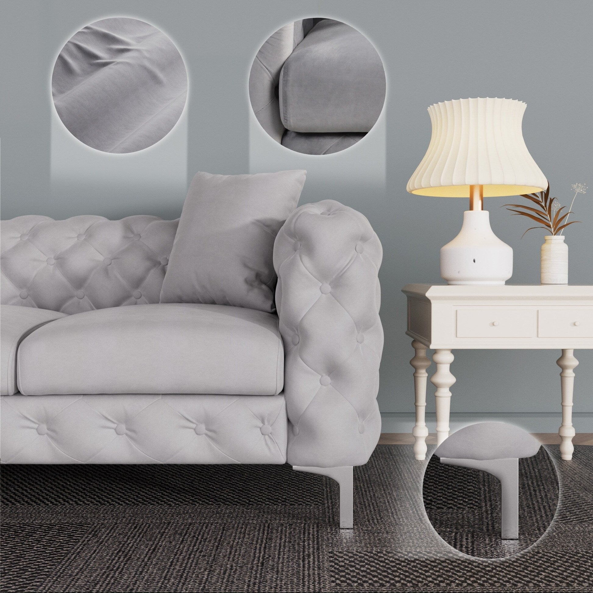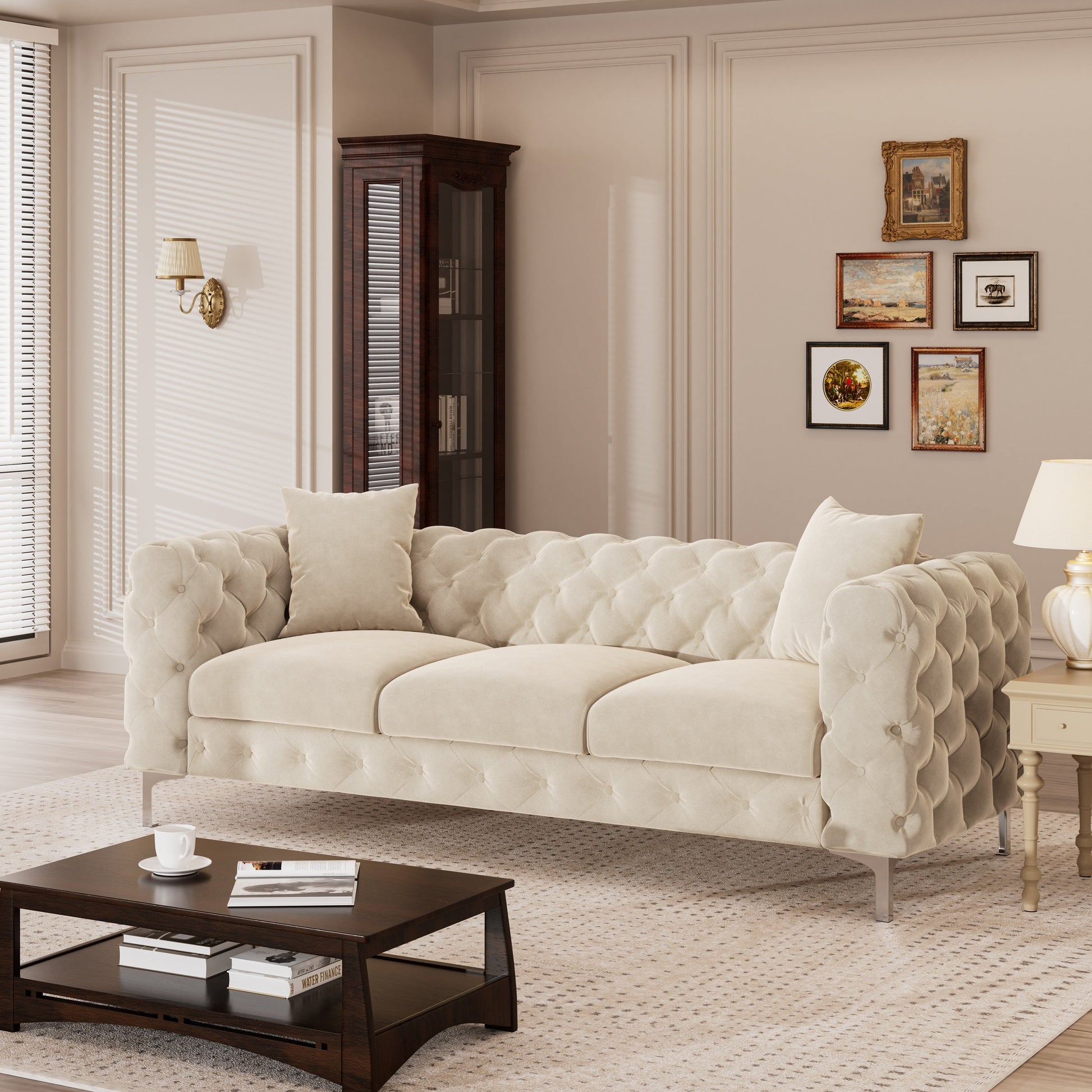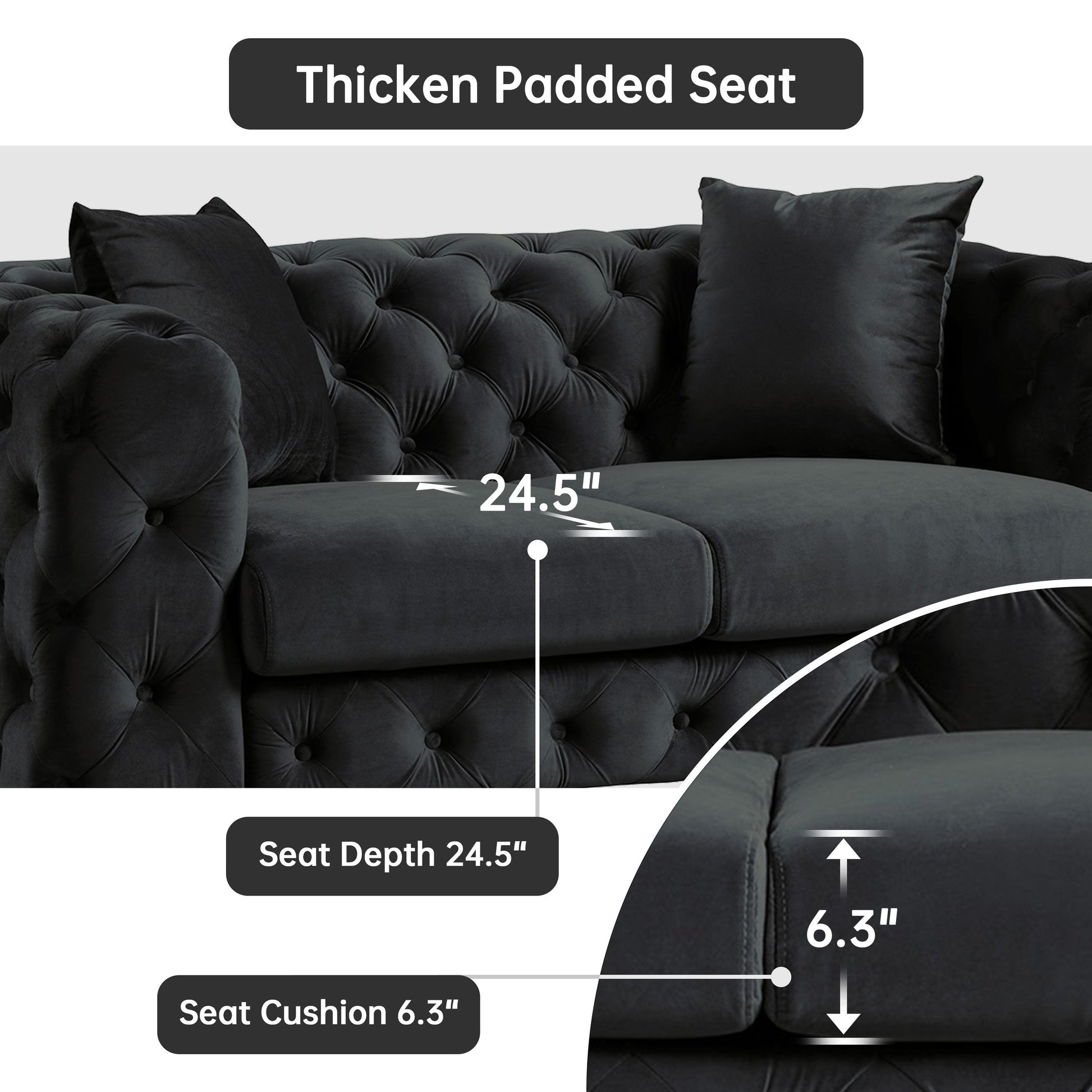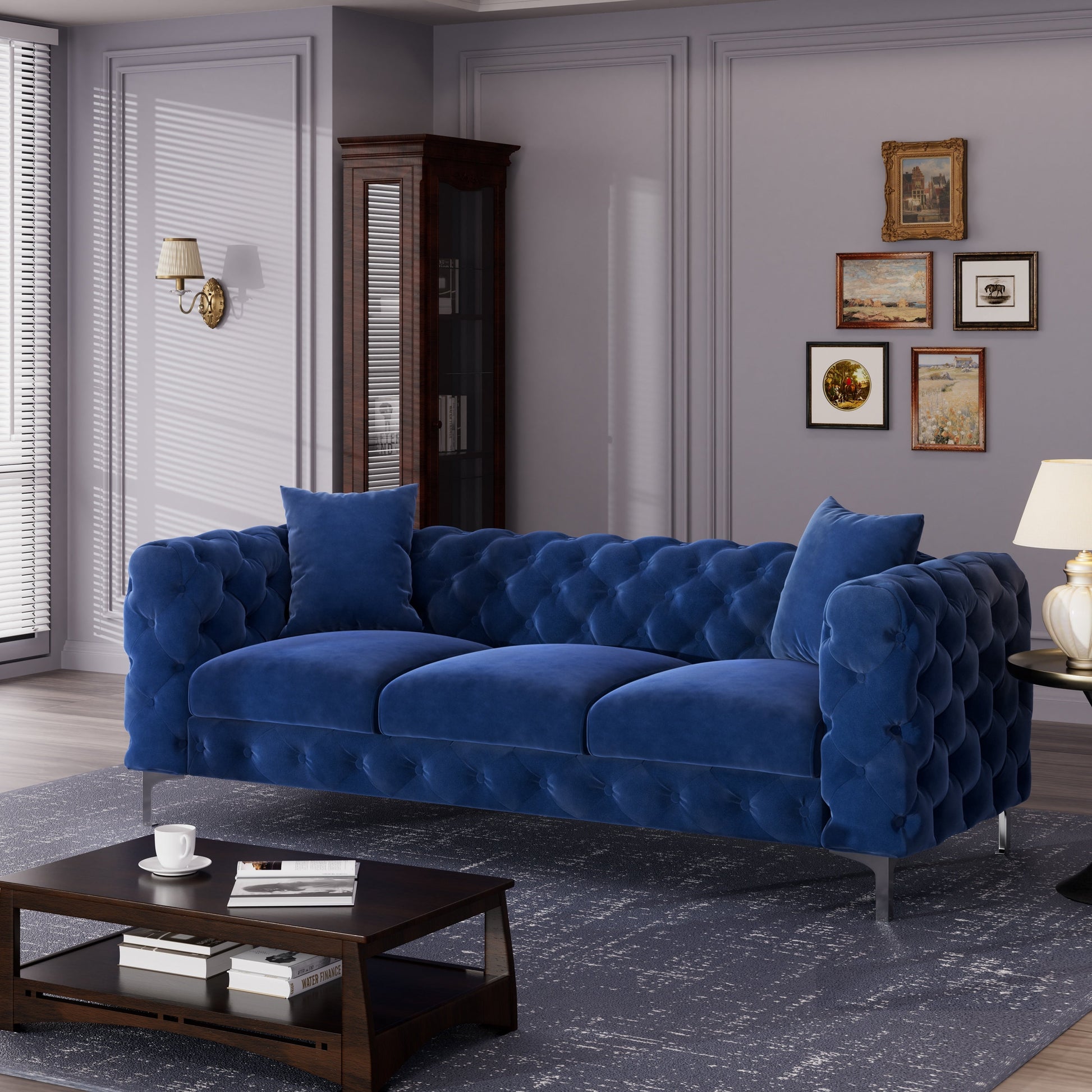 Canapé moderne en velours Morden Fort avec capitonnage à boutons, cadre en bois massif et pieds en fer