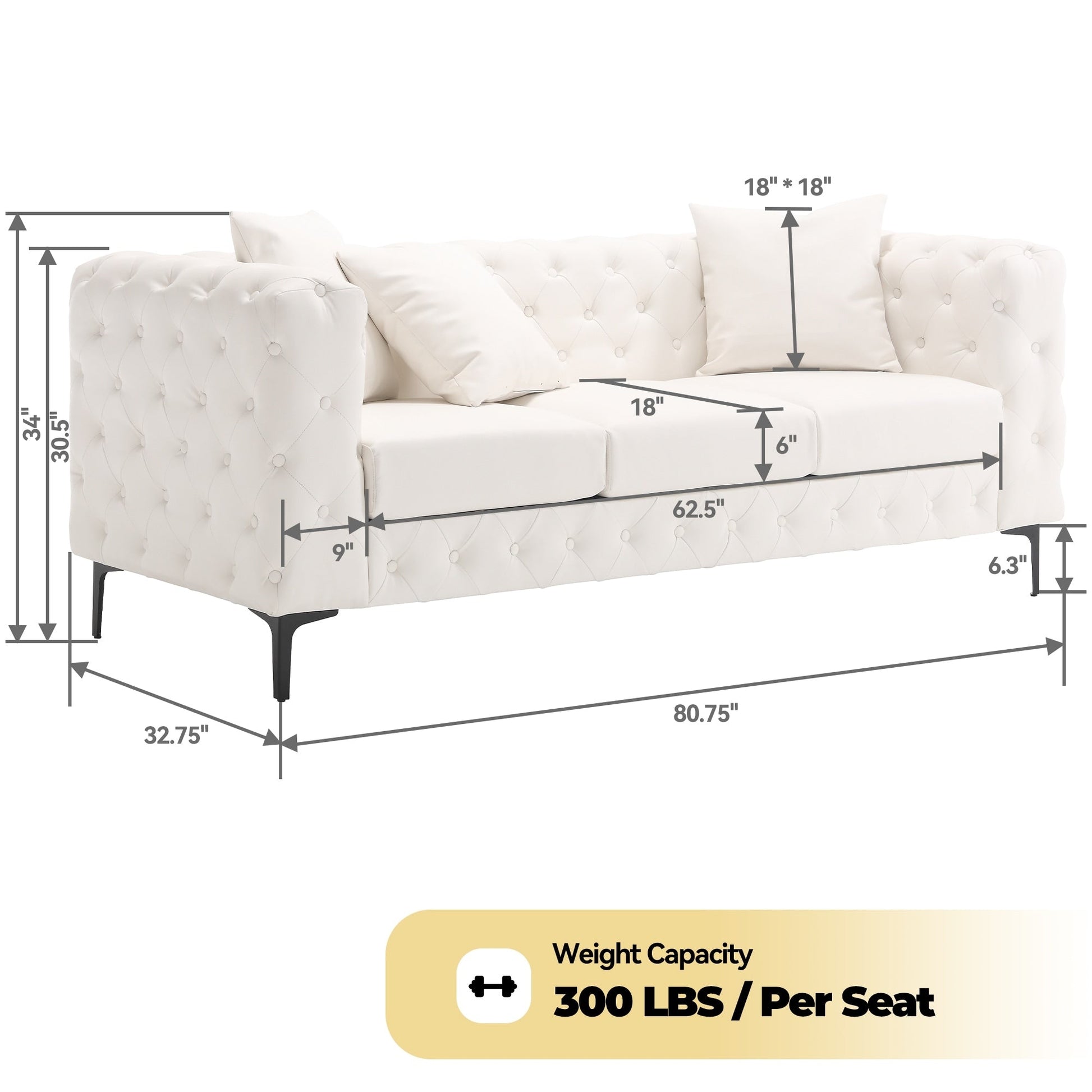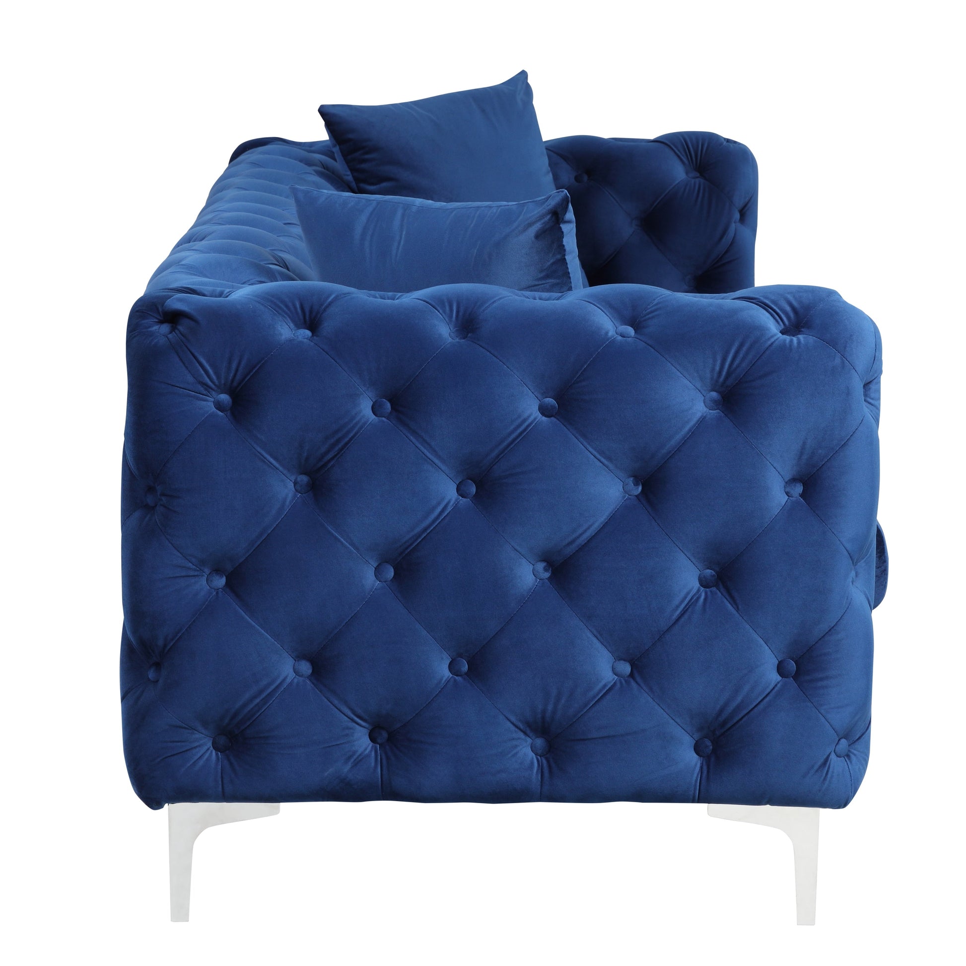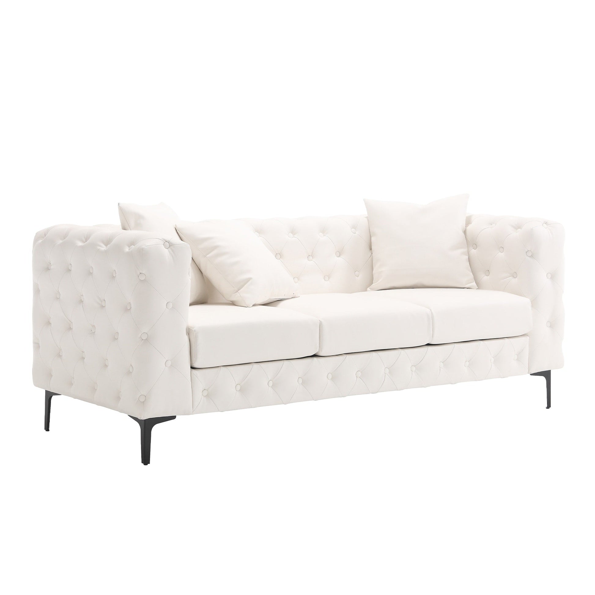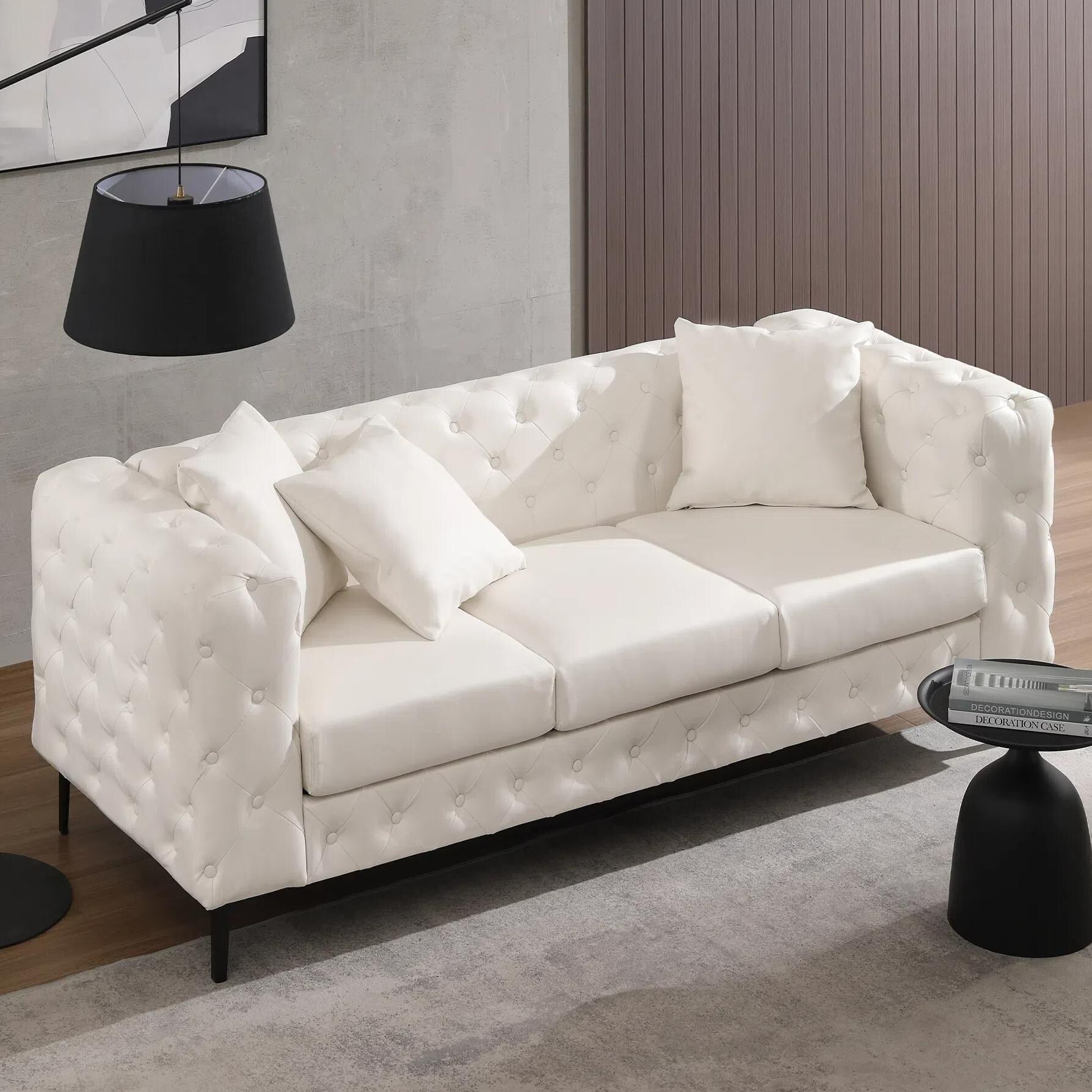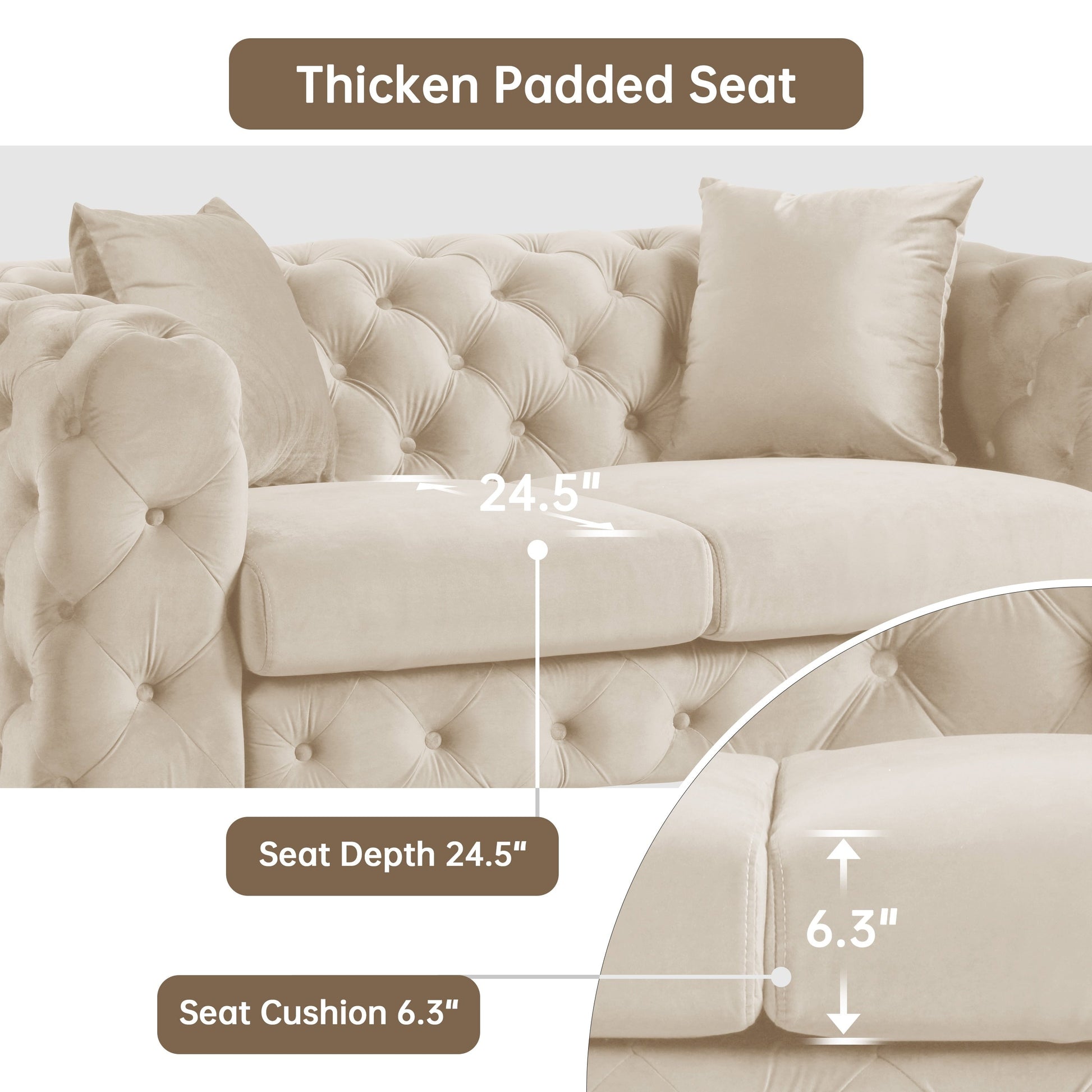 Canapé moderne en velours Morden Fort avec capitonnage à boutons, cadre en bois massif et pieds en fer