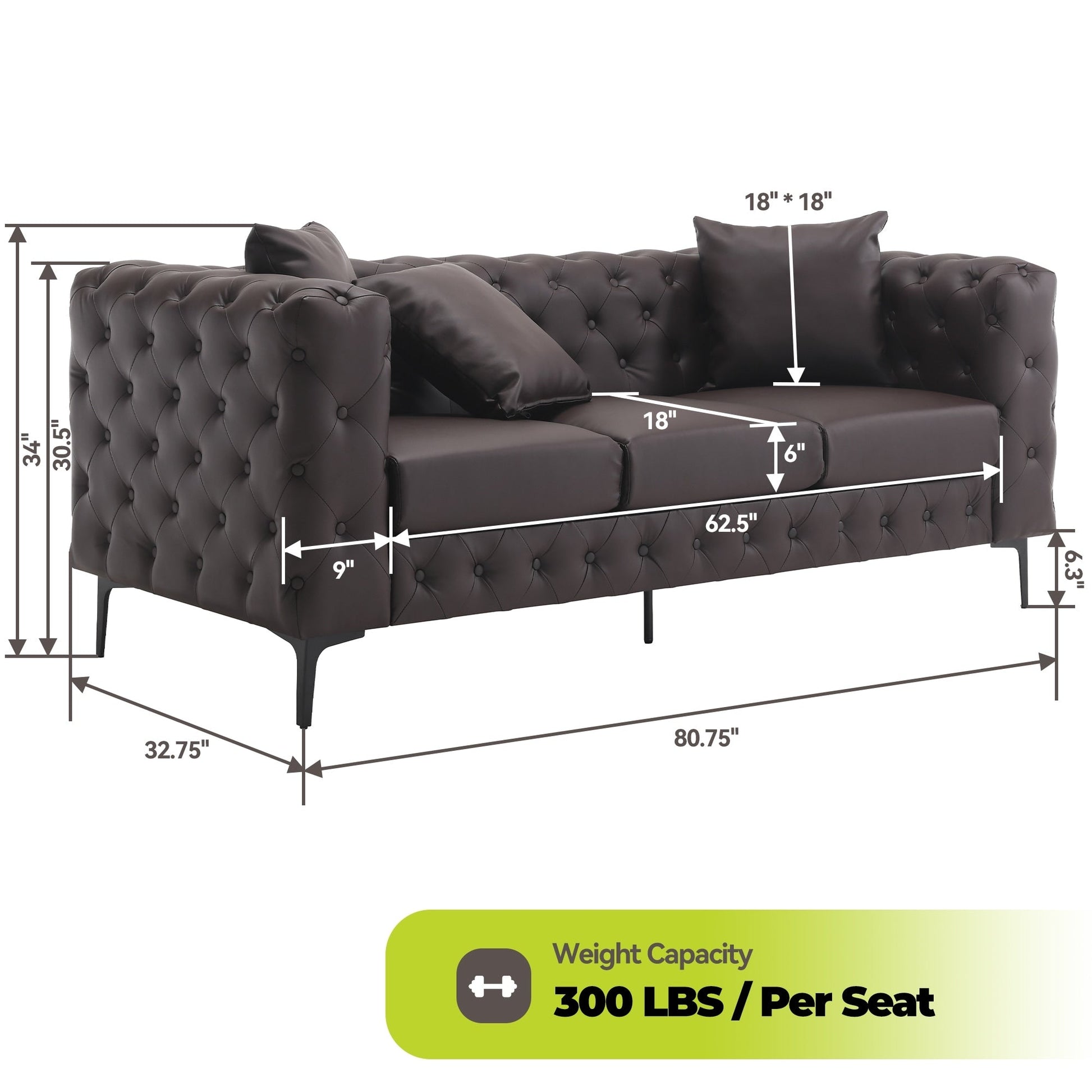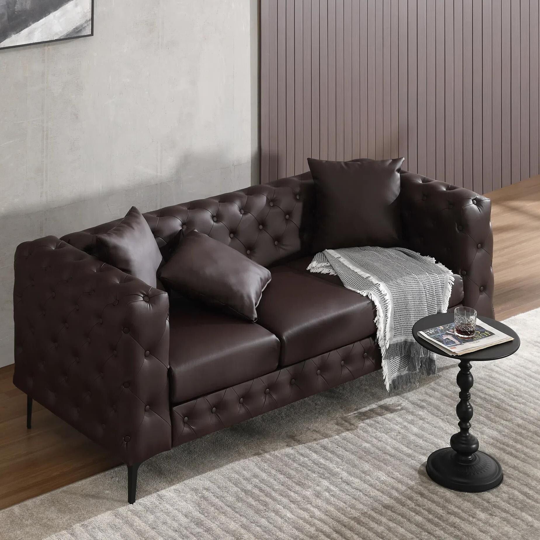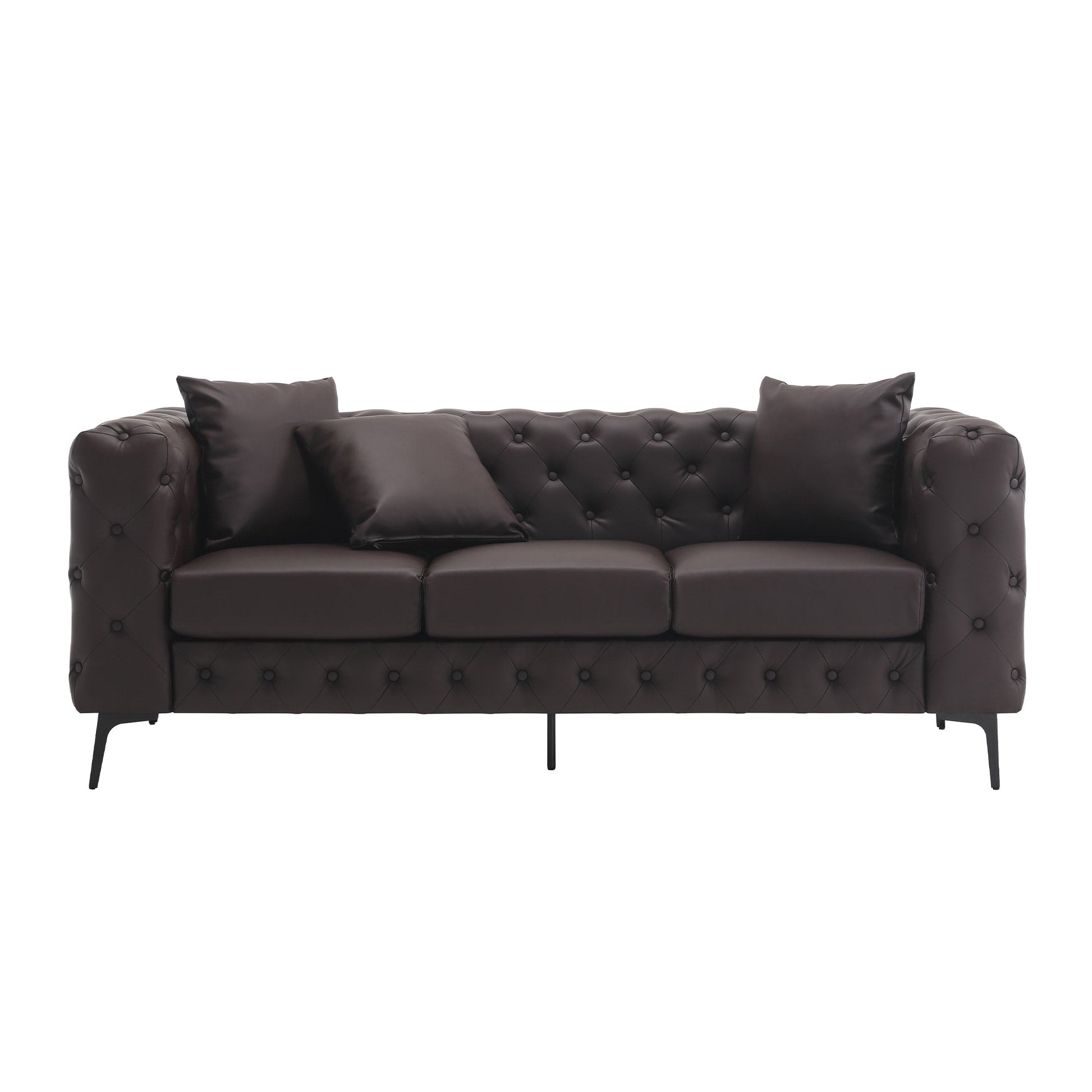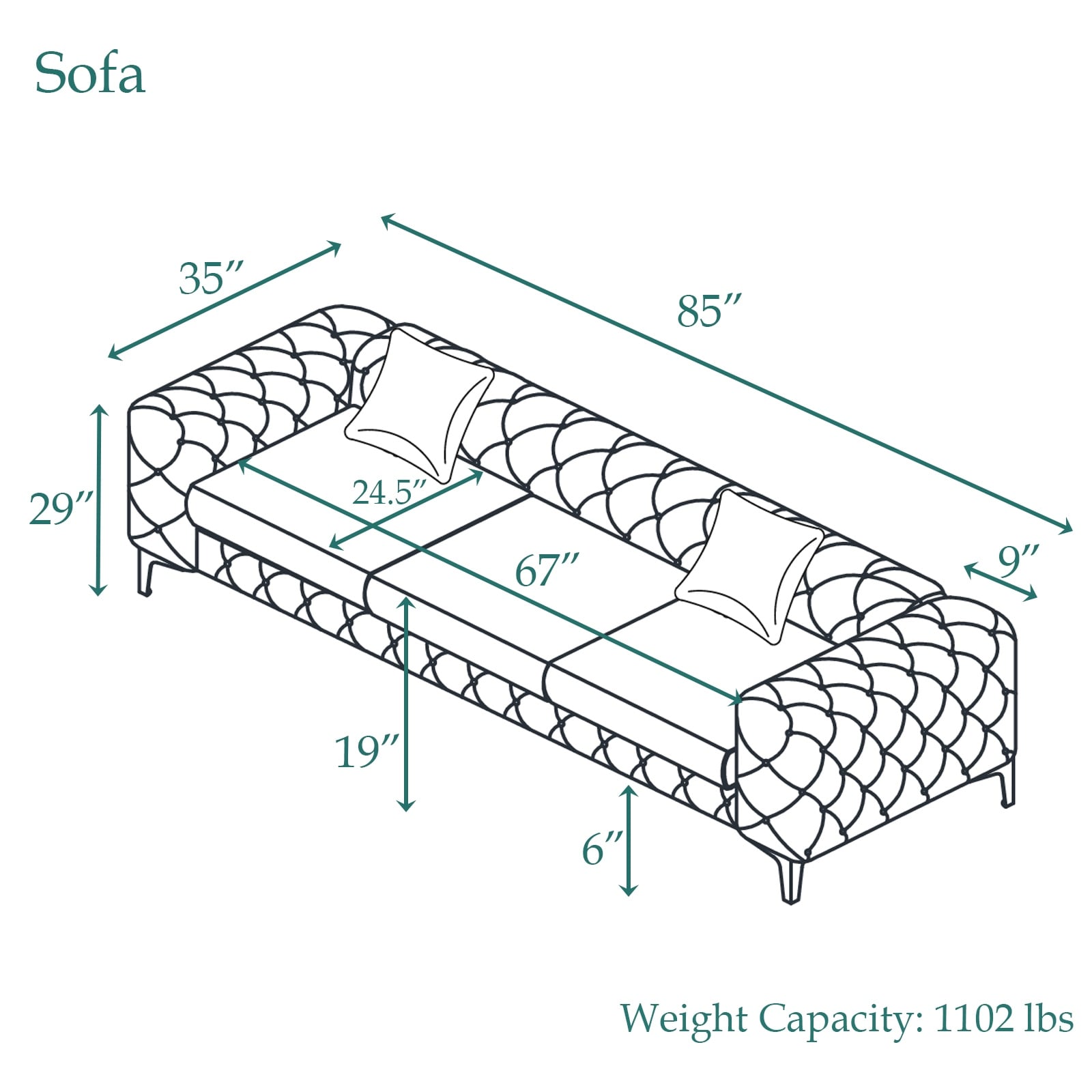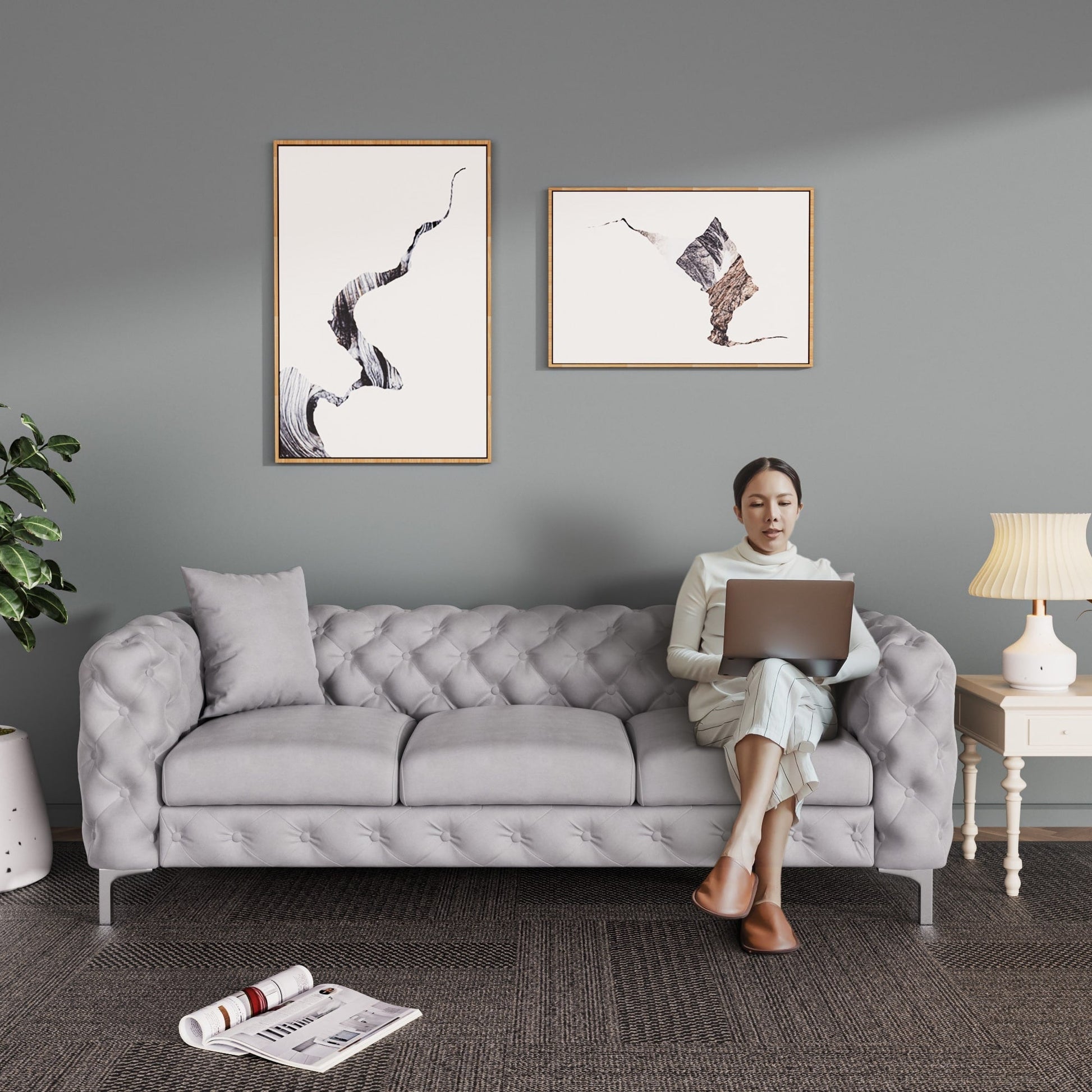 Canapé moderne en velours Morden Fort avec capitonnage à boutons, cadre en bois massif et pieds en fer