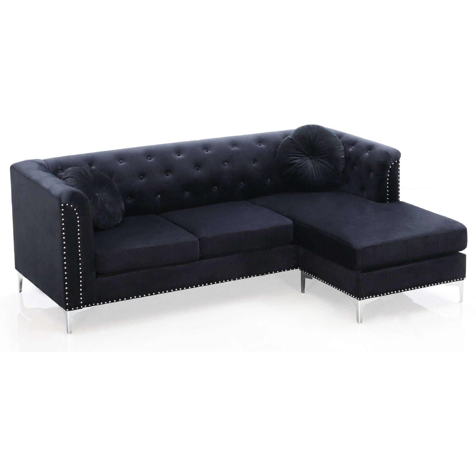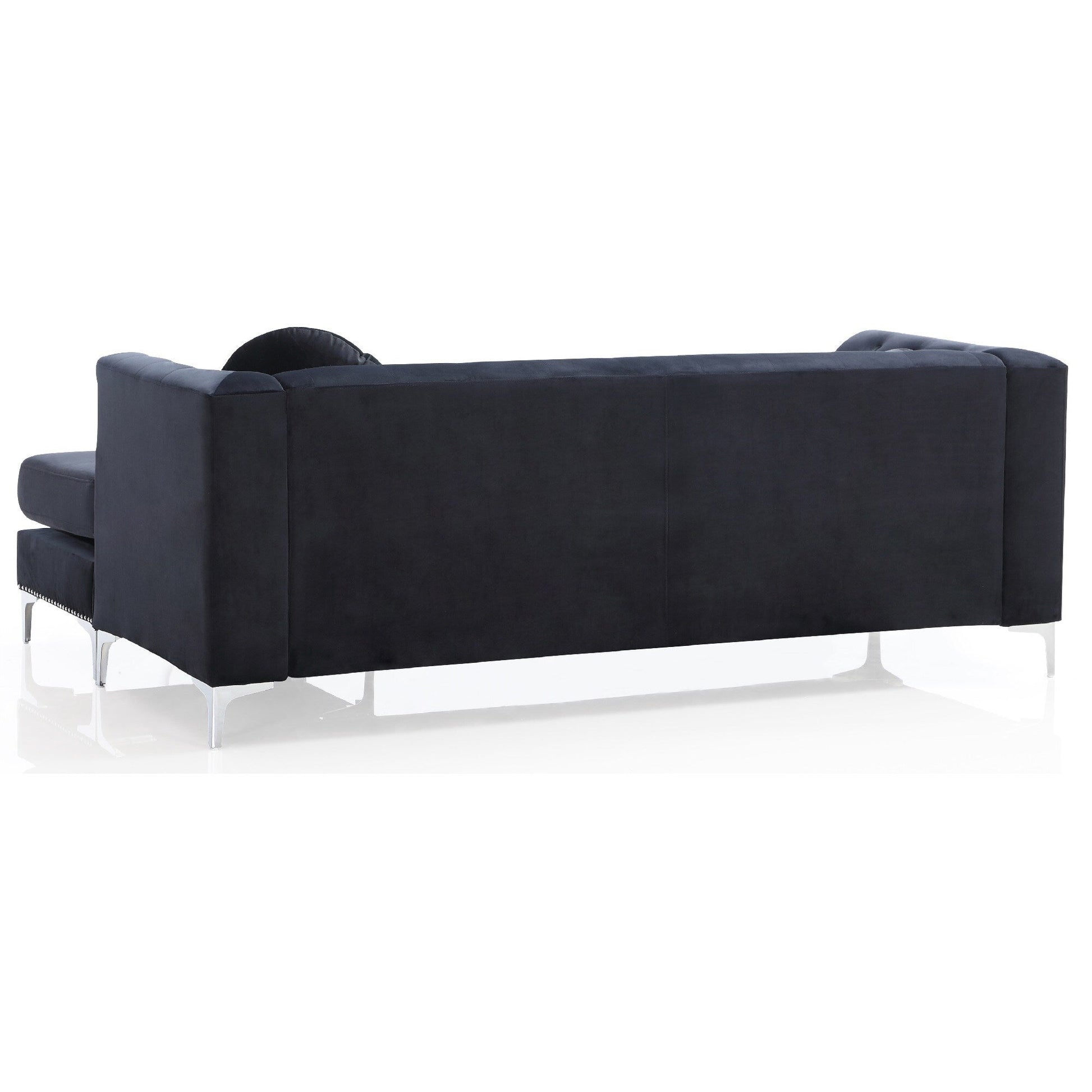 Canapé sectionnel capitonné en velours avec garniture cloutée et coussins décoratifs - 83 - Noir