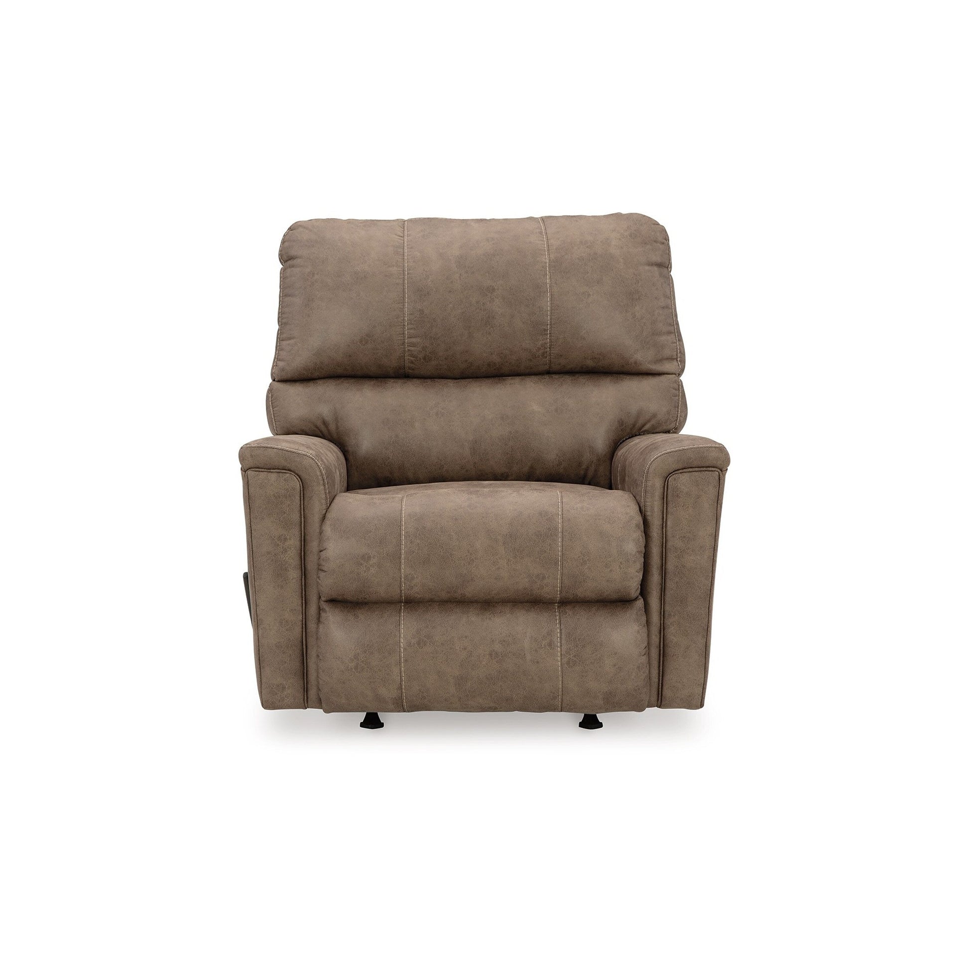 Détendez-vous avec style grâce à ce fauteuil inclinable à bascule manuel, doté d'une structure en bois robuste et de renforts métalliques pour une longue durée de vie. Son mouvement d'inclinaison fluide et son balancement doux favorisent la détente, tandis que son revêtement en similicuir marron fossile apporte une touche d'élégance. De plus, ses coussins en mousse haute résilience offrent un soutien ferme et confortable. Découvrez notre collection Nav pour en savoir plus.