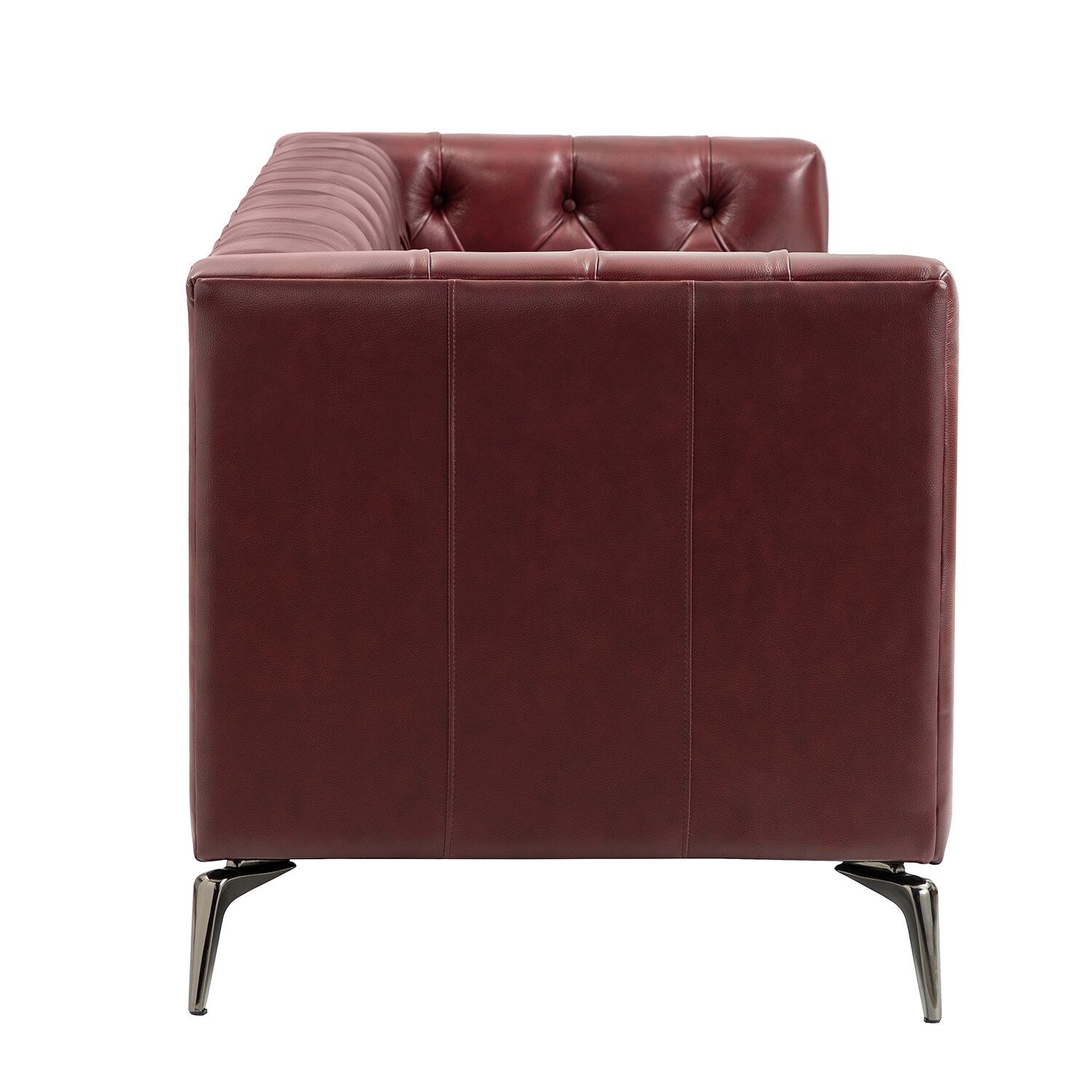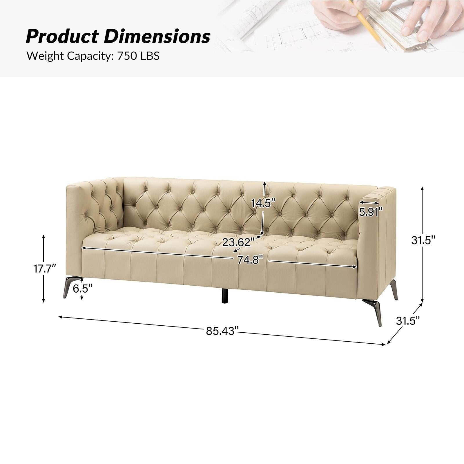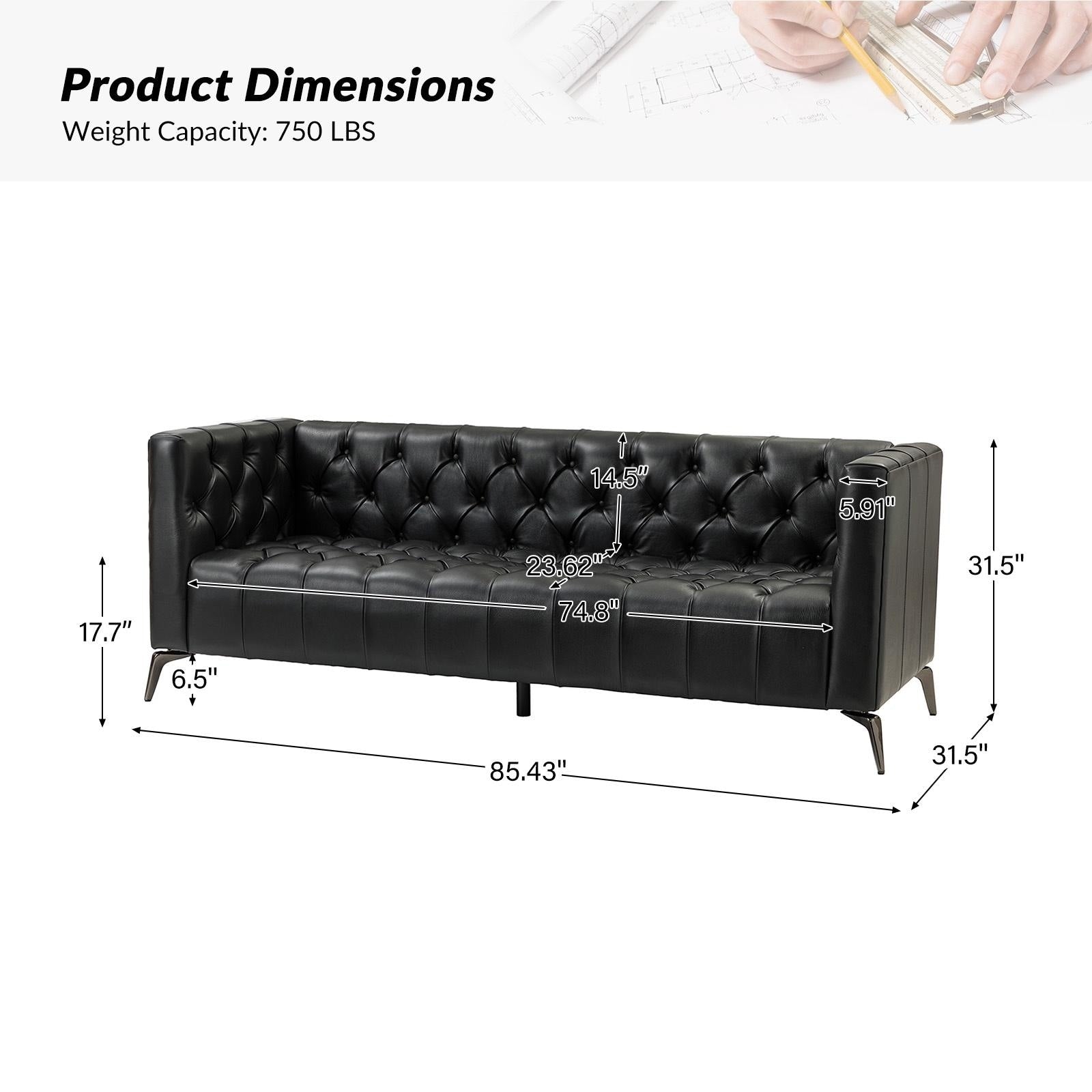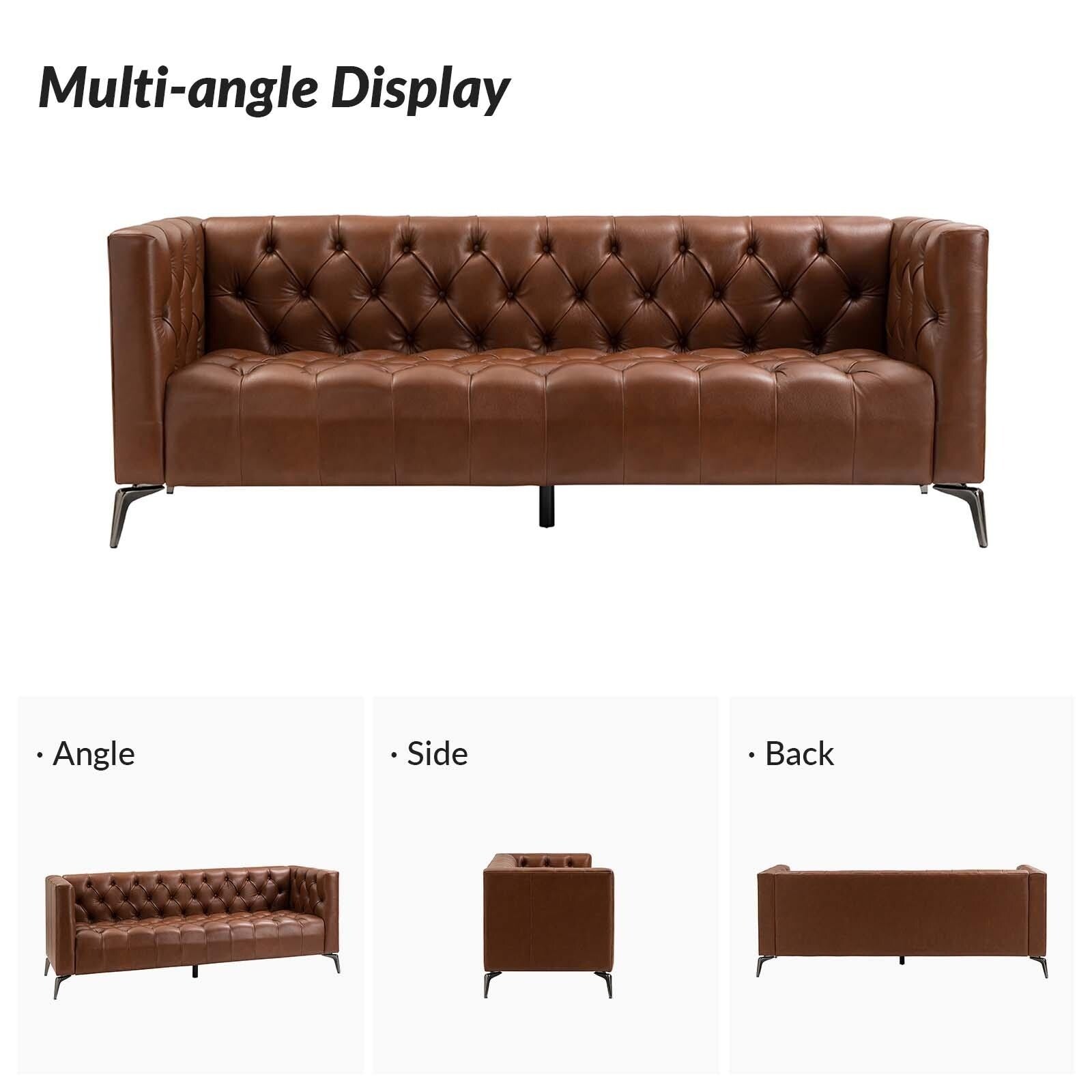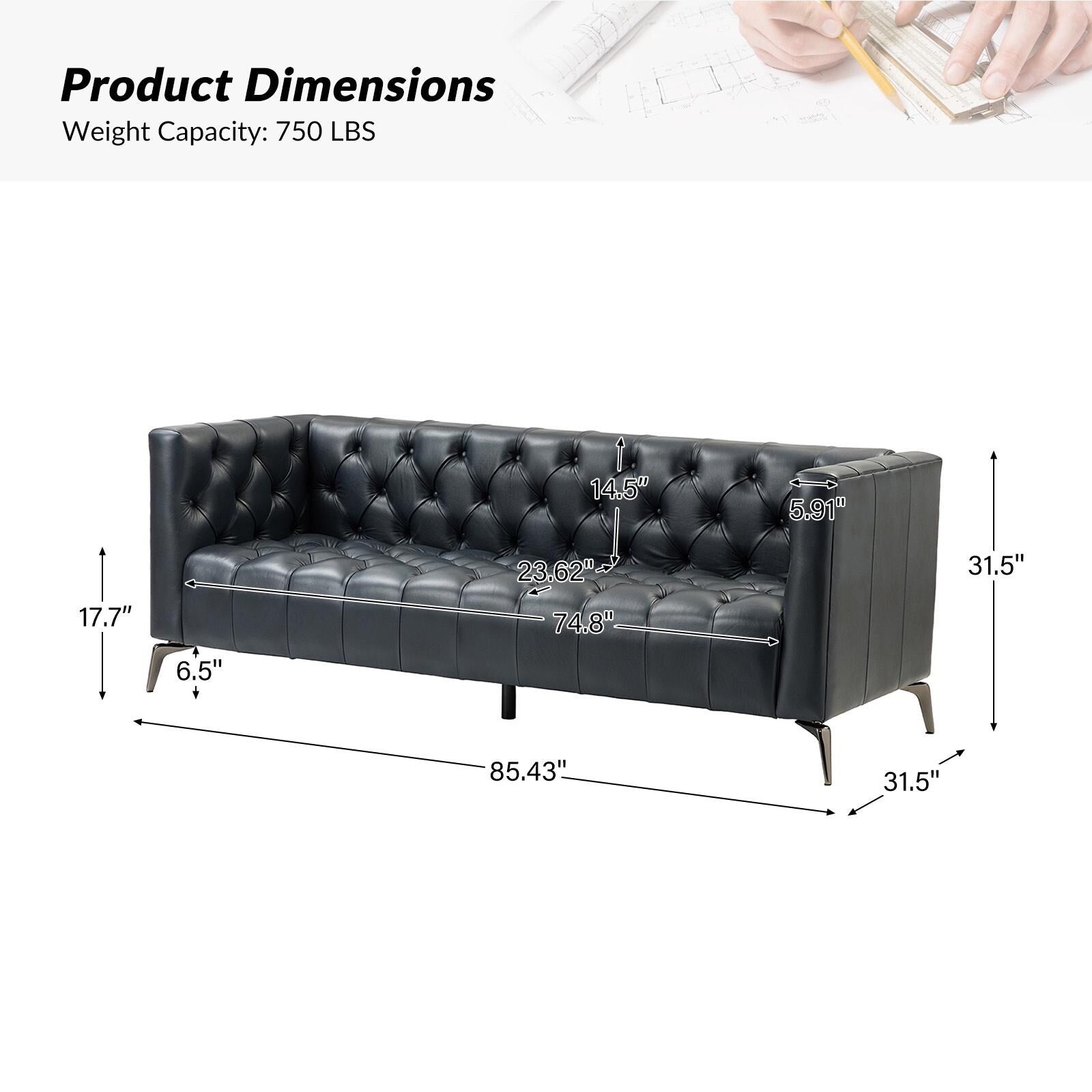 Canapé transitionnel Nestor en cuir véritable avec pieds en métal et dossier capitonné