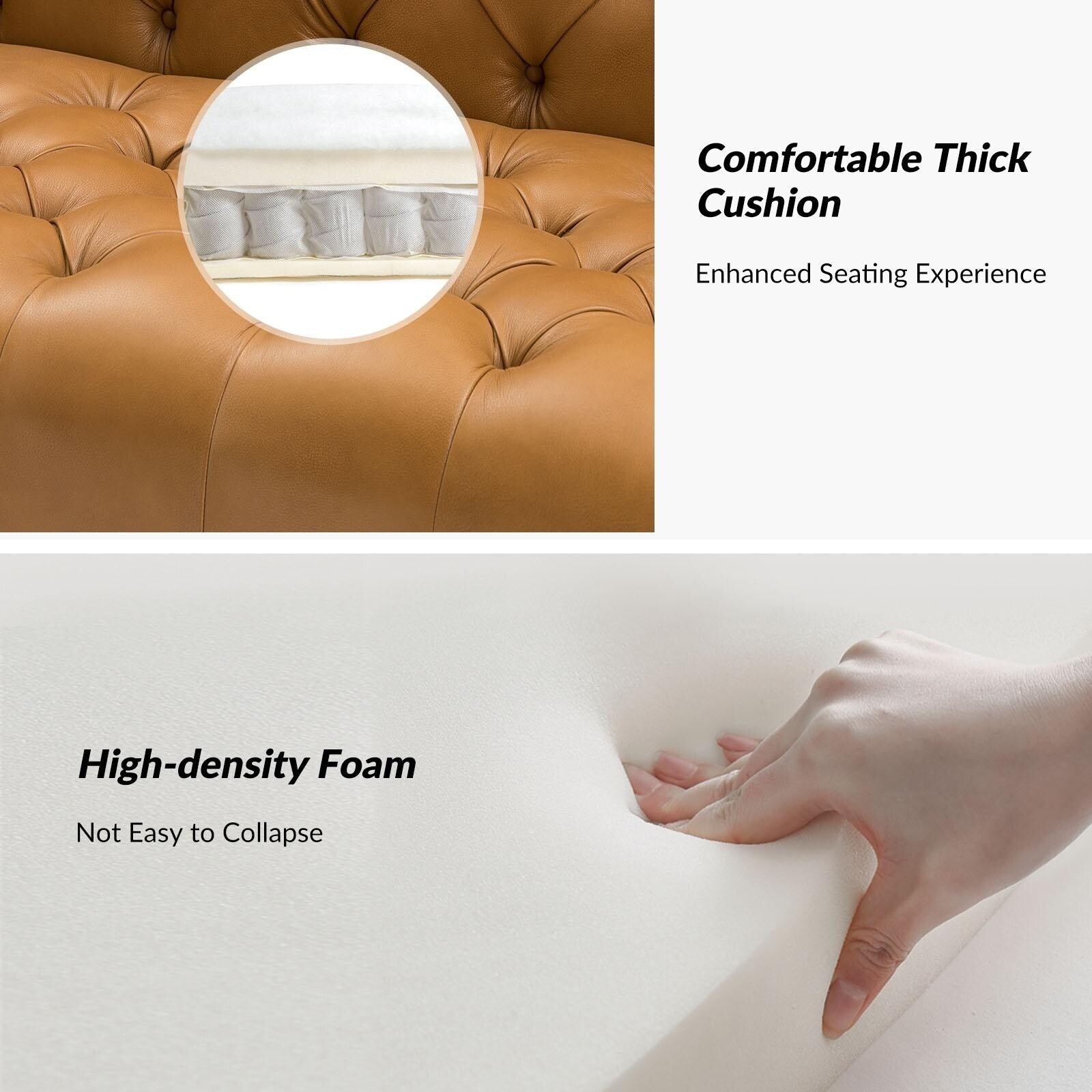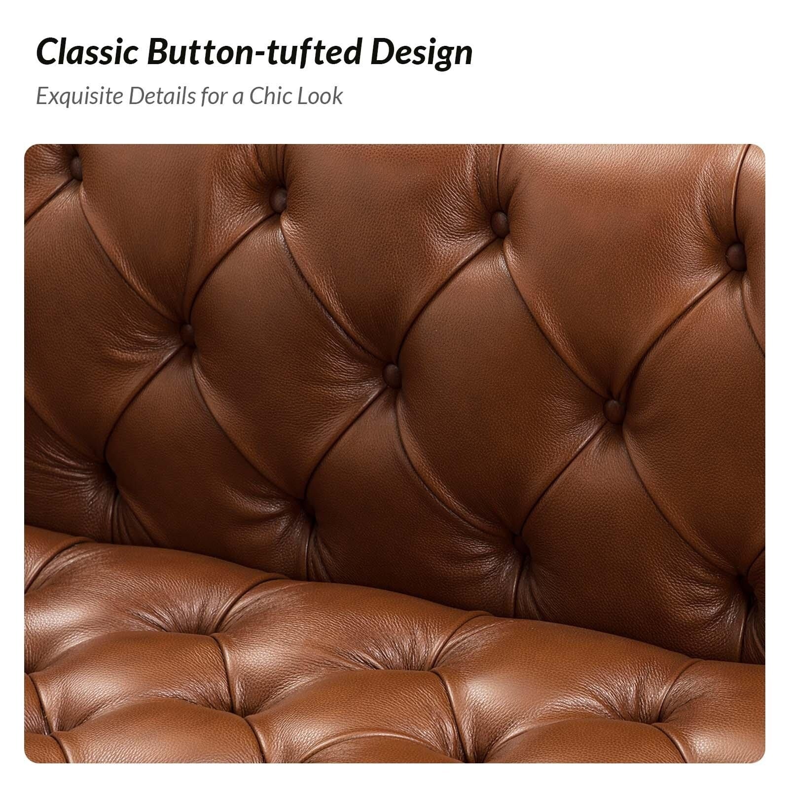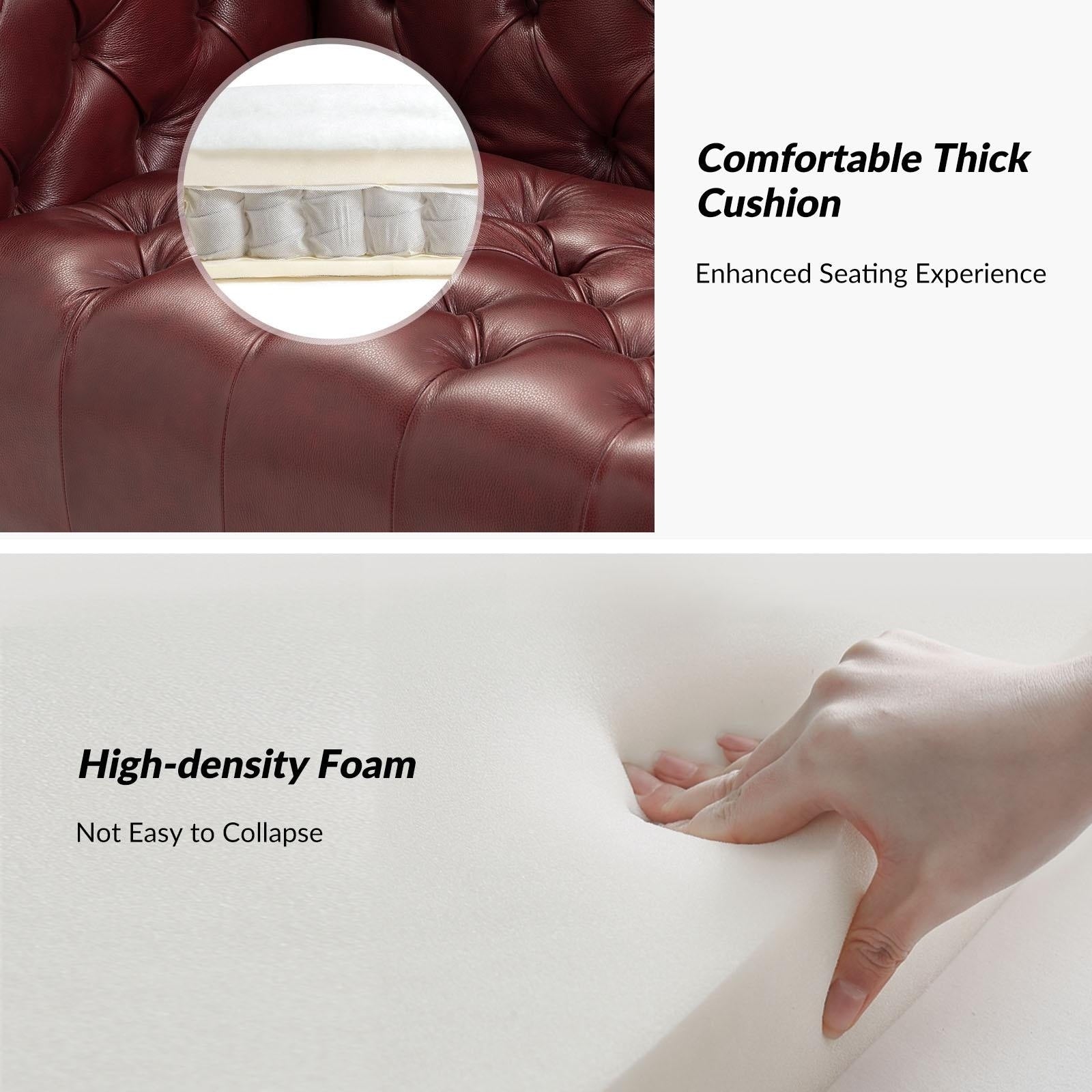 - Soutien supérieur : les coussins d'assise bien rembourrés, les ressorts en S intégrés et le cuir doux pour la peau de ce canapé garantissent un haut niveau de confort d'assise et de plaisir visuel.