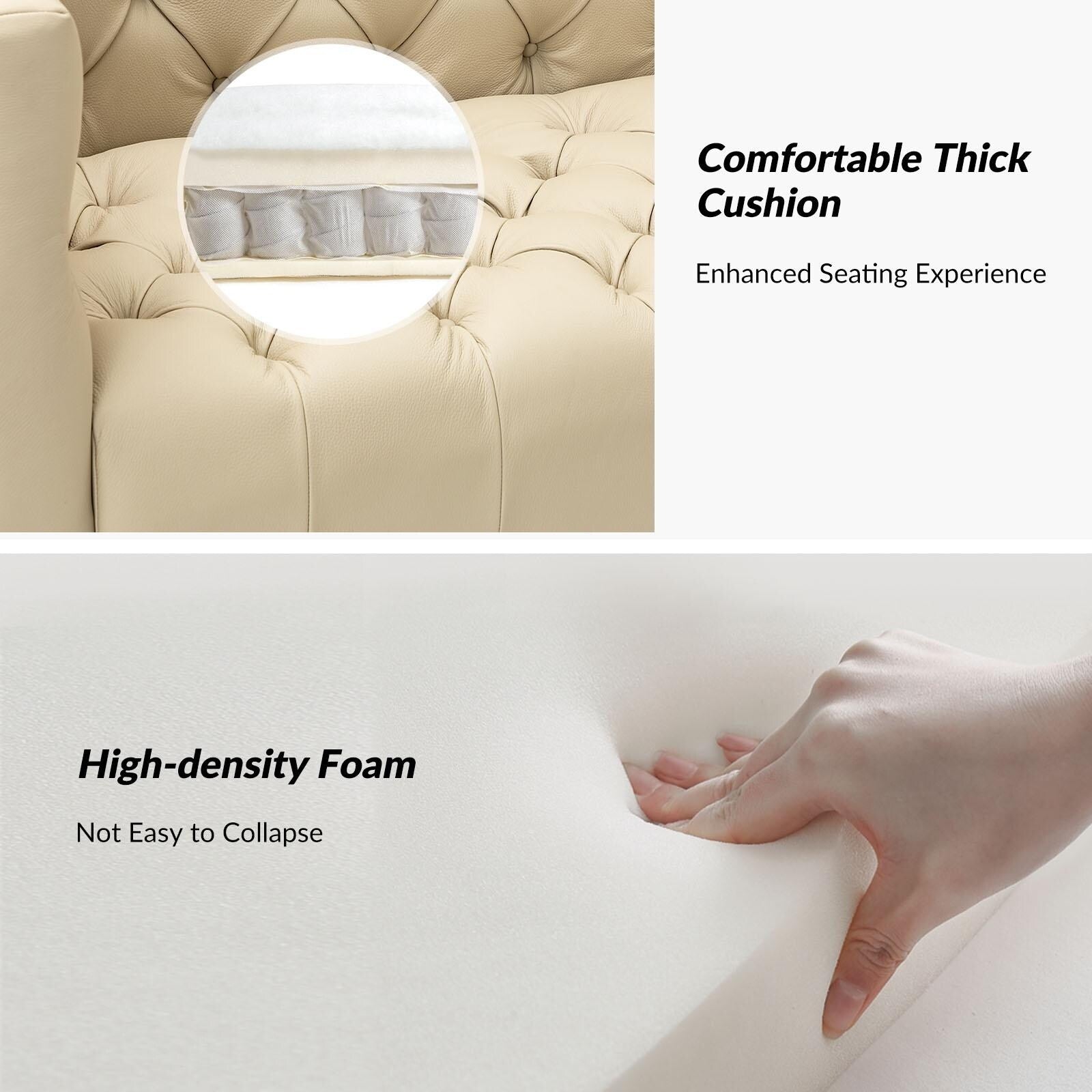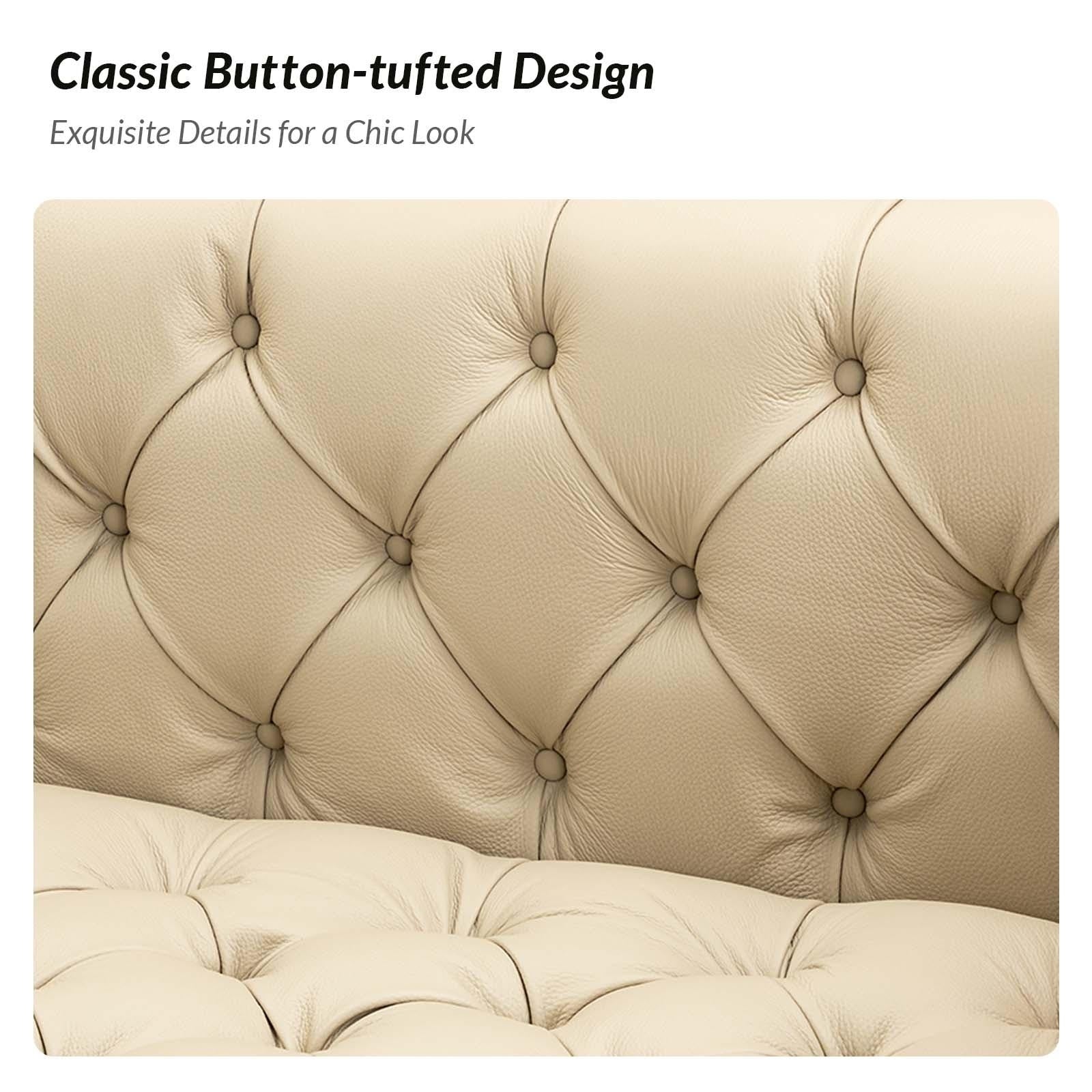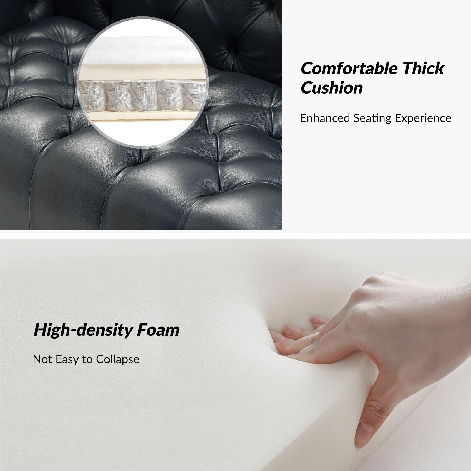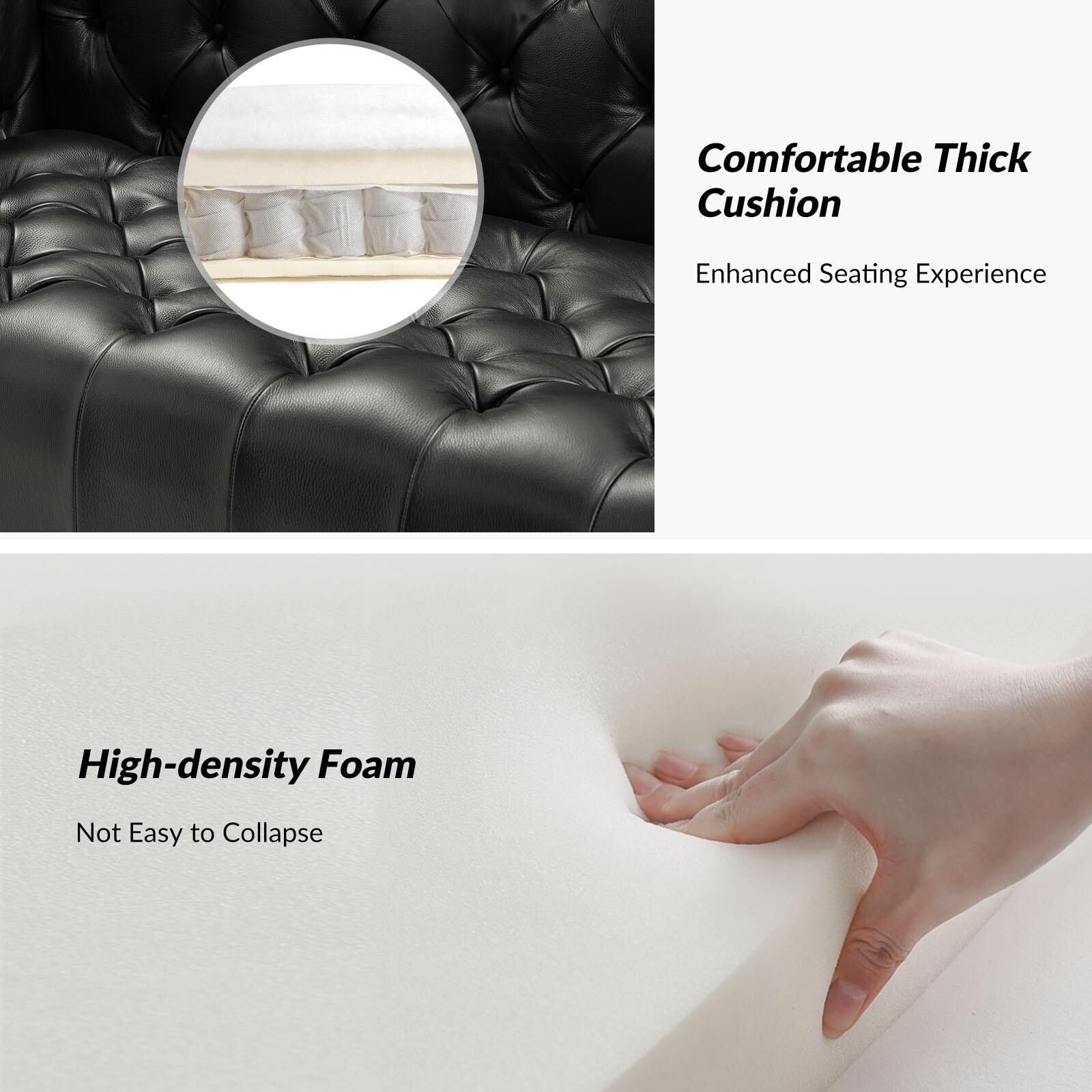 - Soutien supérieur : les coussins d'assise bien rembourrés, les ressorts en S intégrés et le cuir doux pour la peau de ce canapé garantissent un haut niveau de confort d'assise et de plaisir visuel.